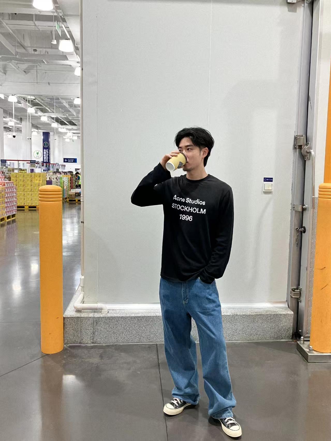 AcneStudios1996系列字母印花图案宽松圆领长袖卫衣男女同款黑色(DY*TJ)