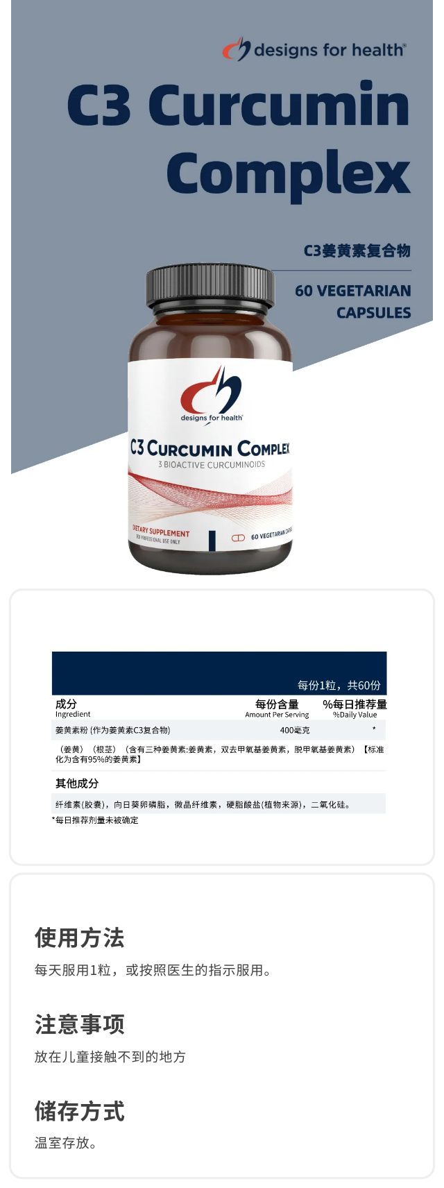 海淘 健康设计 C3姜黄素复合物 C3 Curcumin Complex 60粒/瓶 10/25