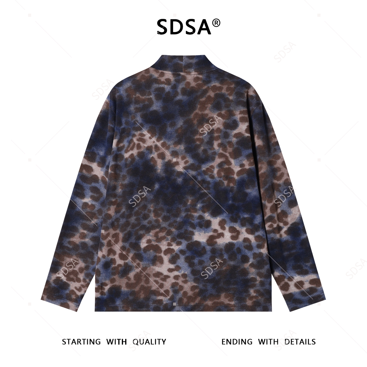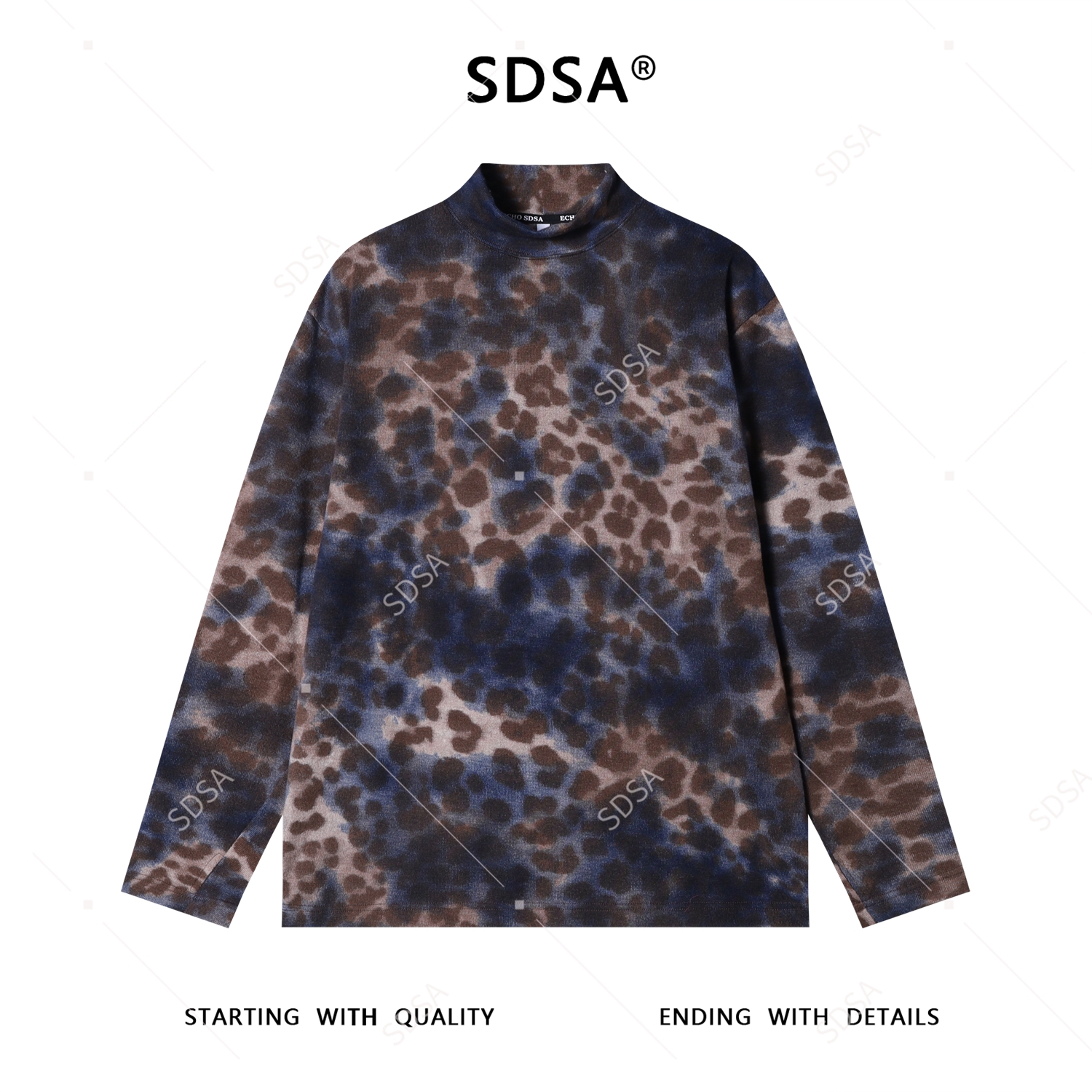 T4851SDSA男士秋冬新款痞帅男装潮牌扎染豹纹半高领长袖T恤百搭打底衫
