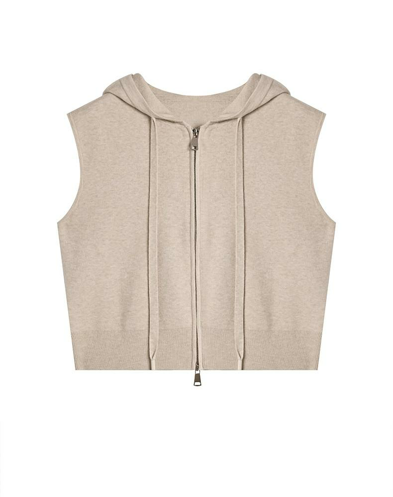 【破价】【2.0大衣伴侣】百搭舒适针织衫早秋新款时尚马甲无袖连帽外套9A31M236
