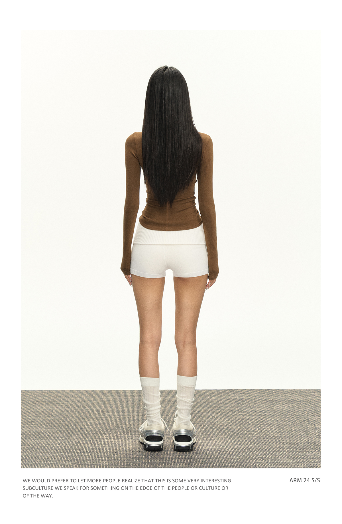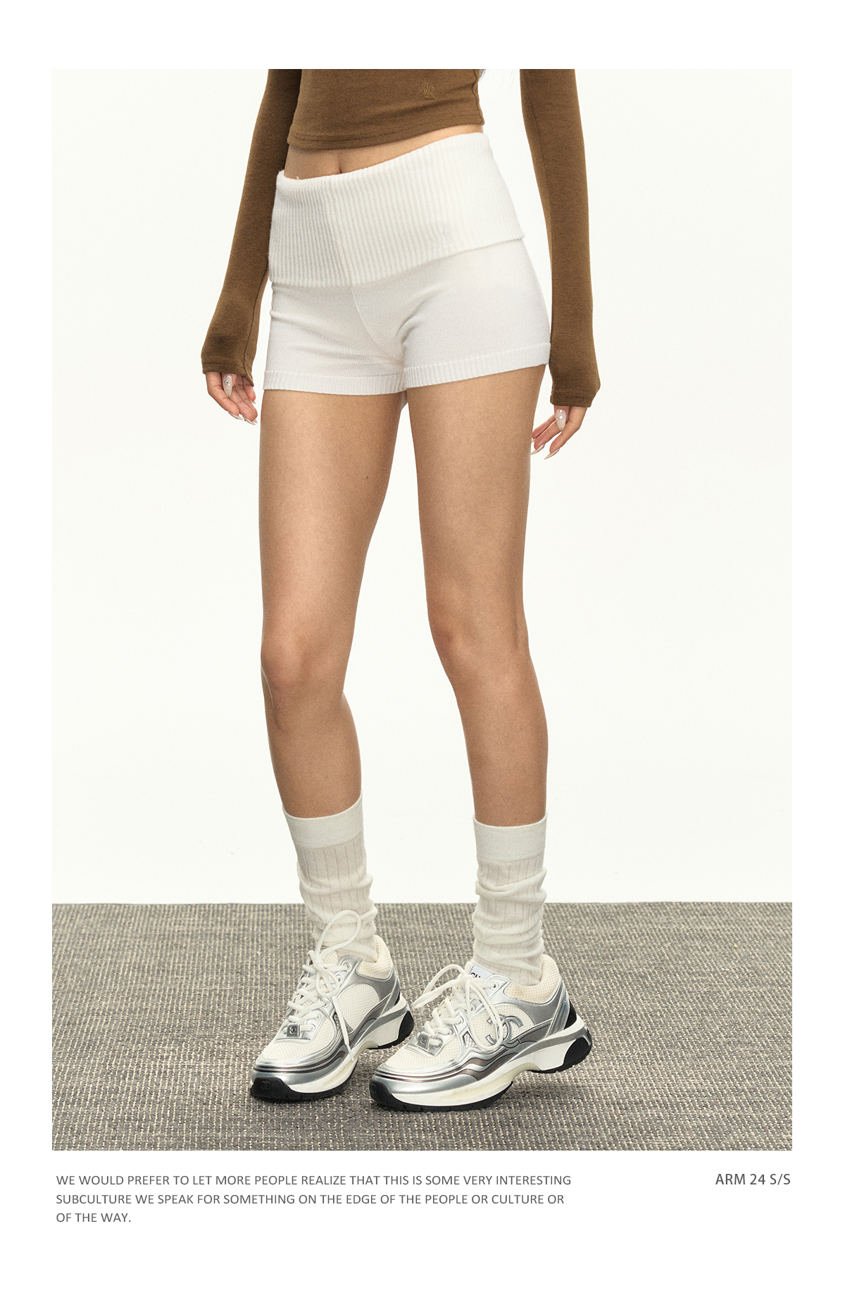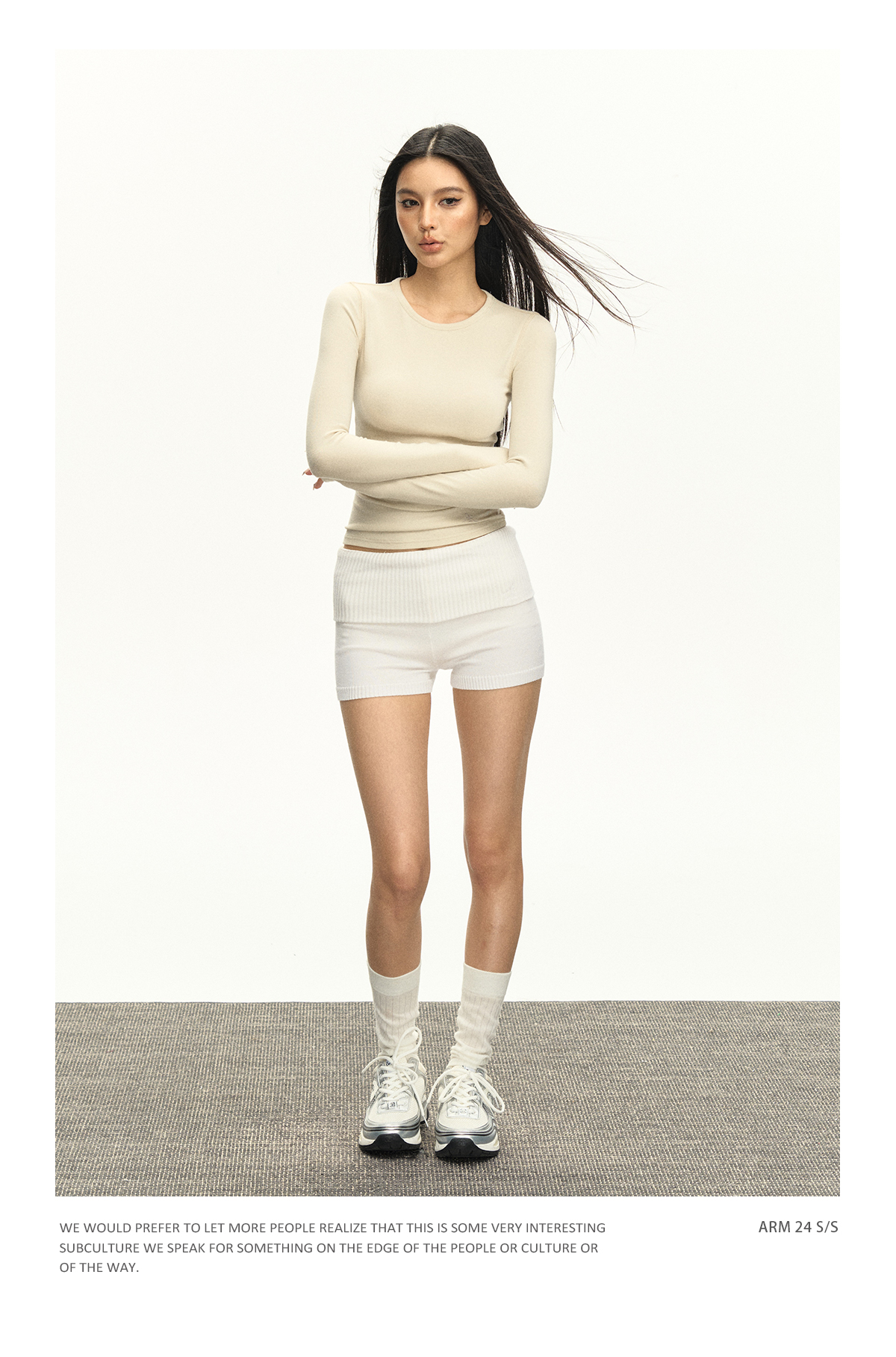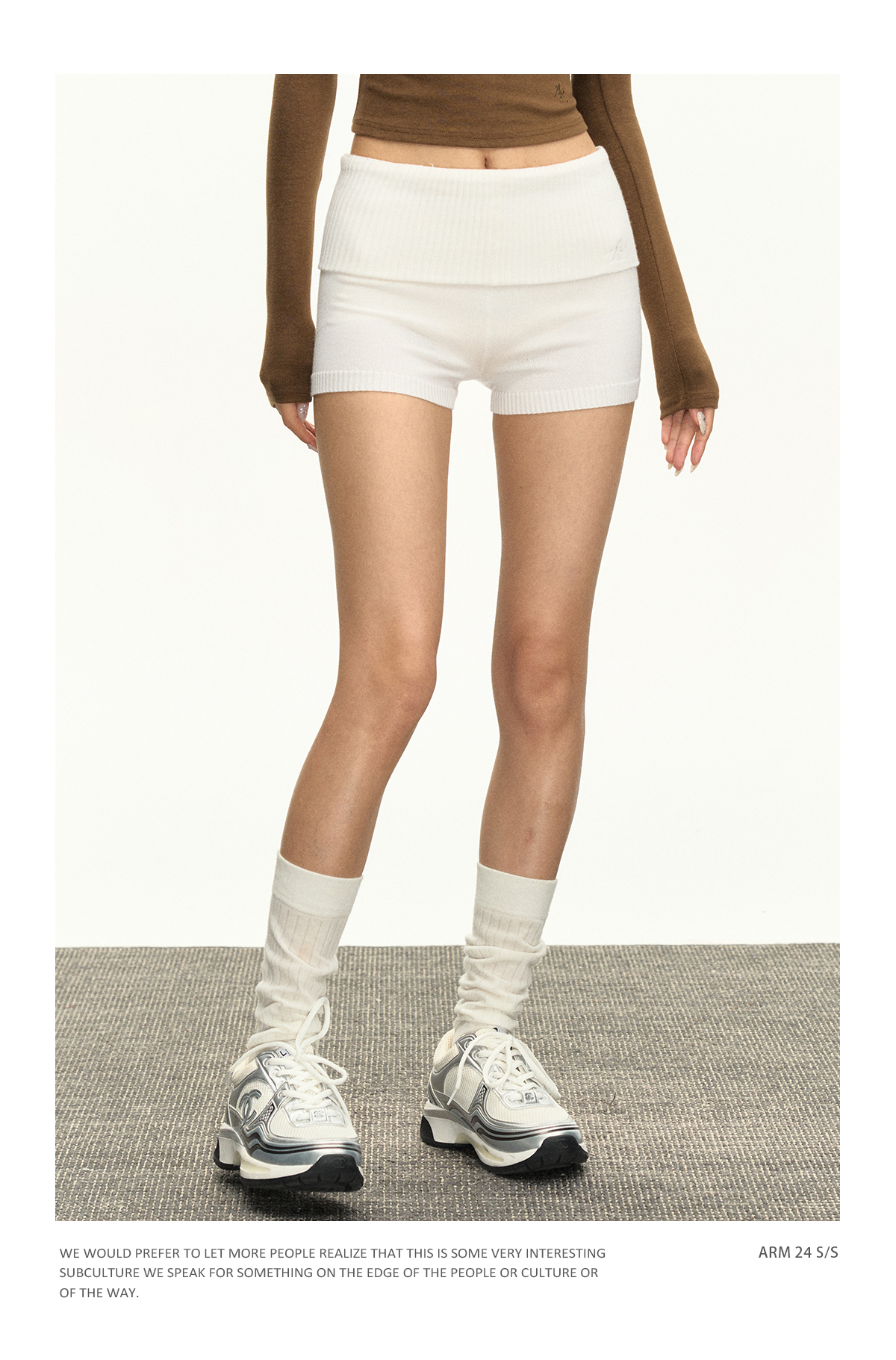 Ariseism 美式复古白色低腰针织包臀短裤女春夏新款显瘦紧身热裤
