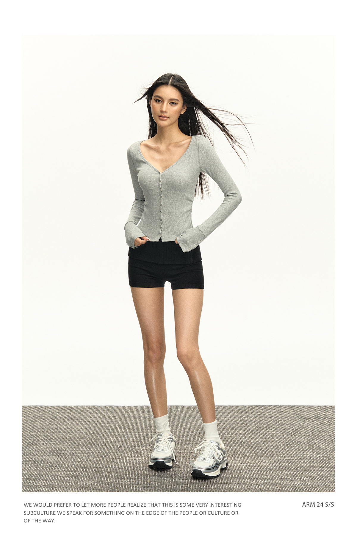Ariseism美式复古辣妹球衣撞色V领长袖t恤女2025春秋新款修身上衣