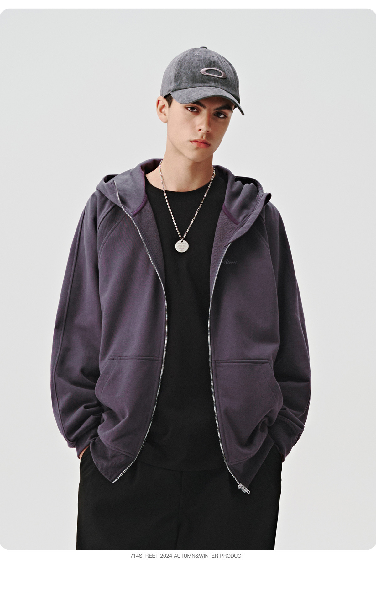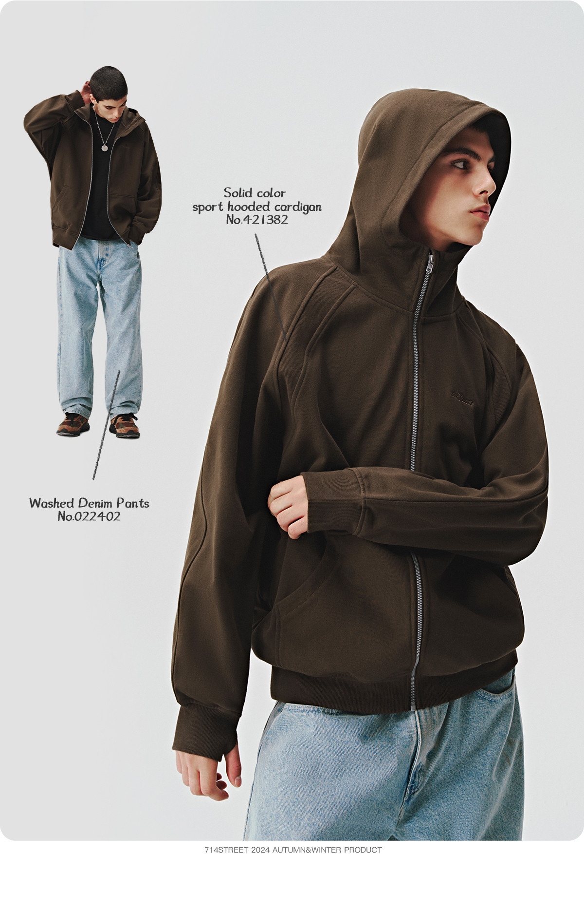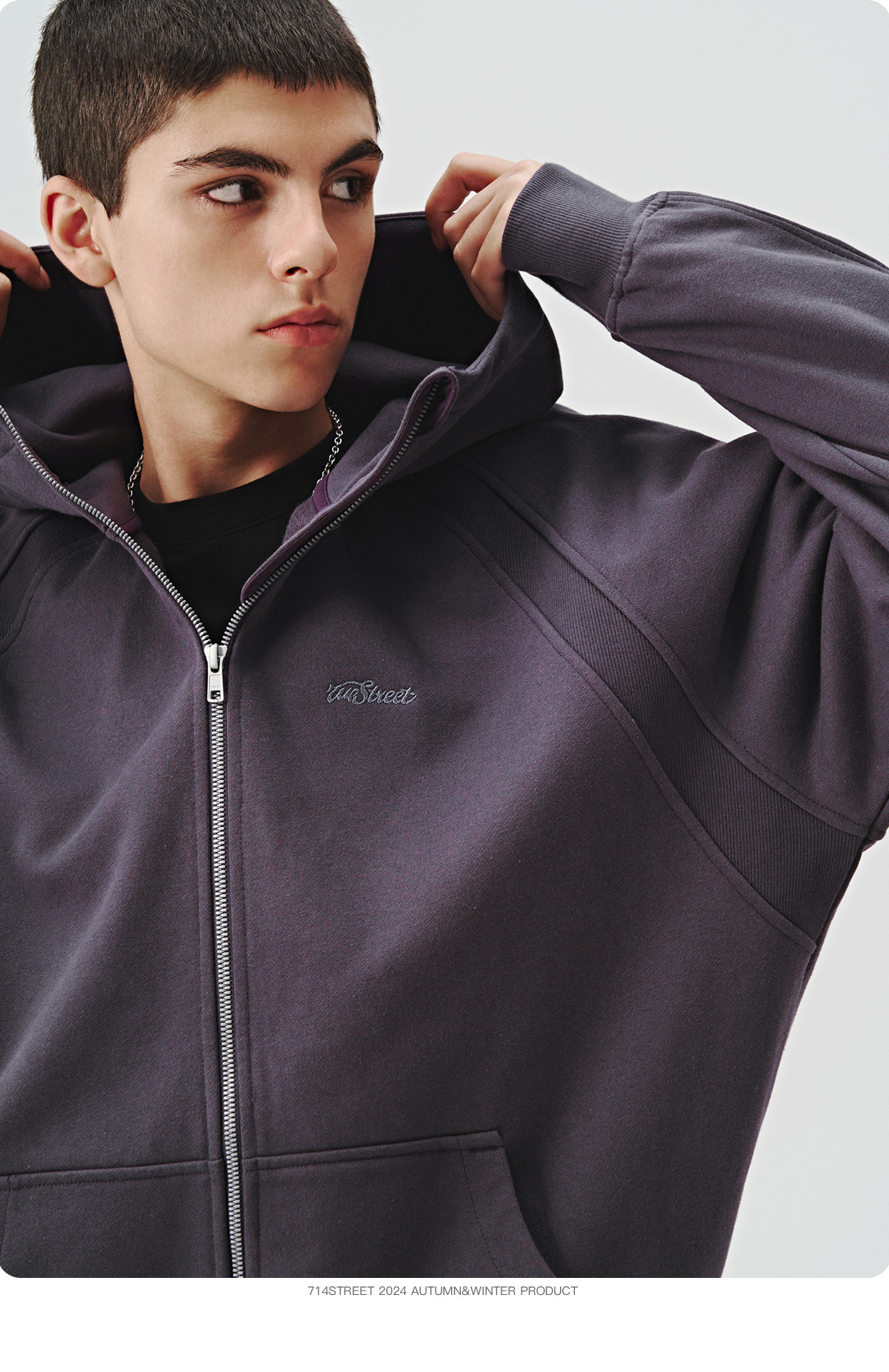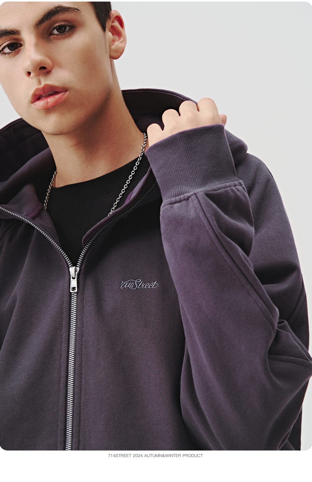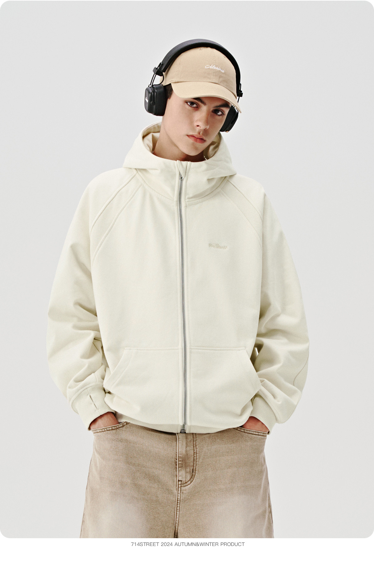 714street美式复古重磅连帽卫衣开衫男2024秋季新款宽松休闲外套