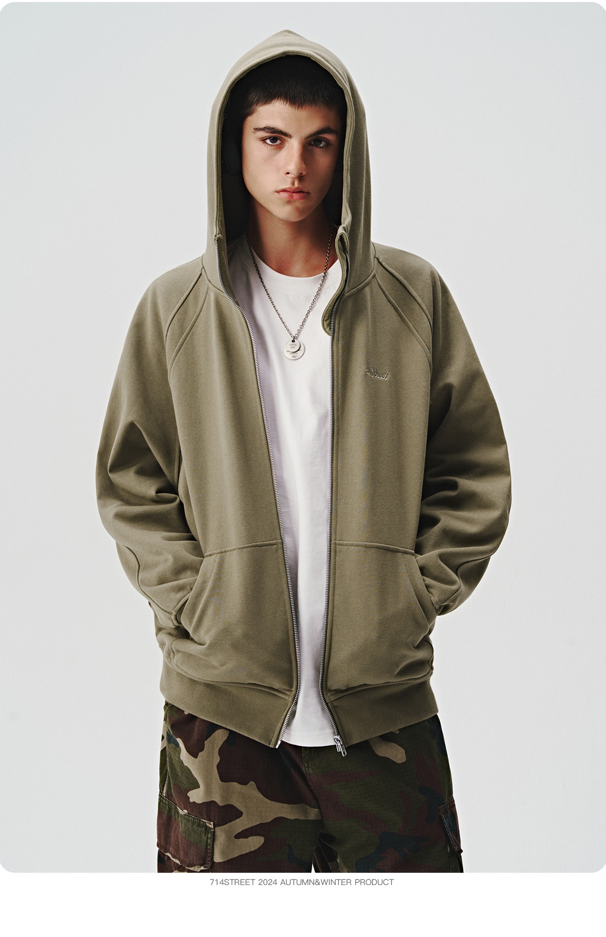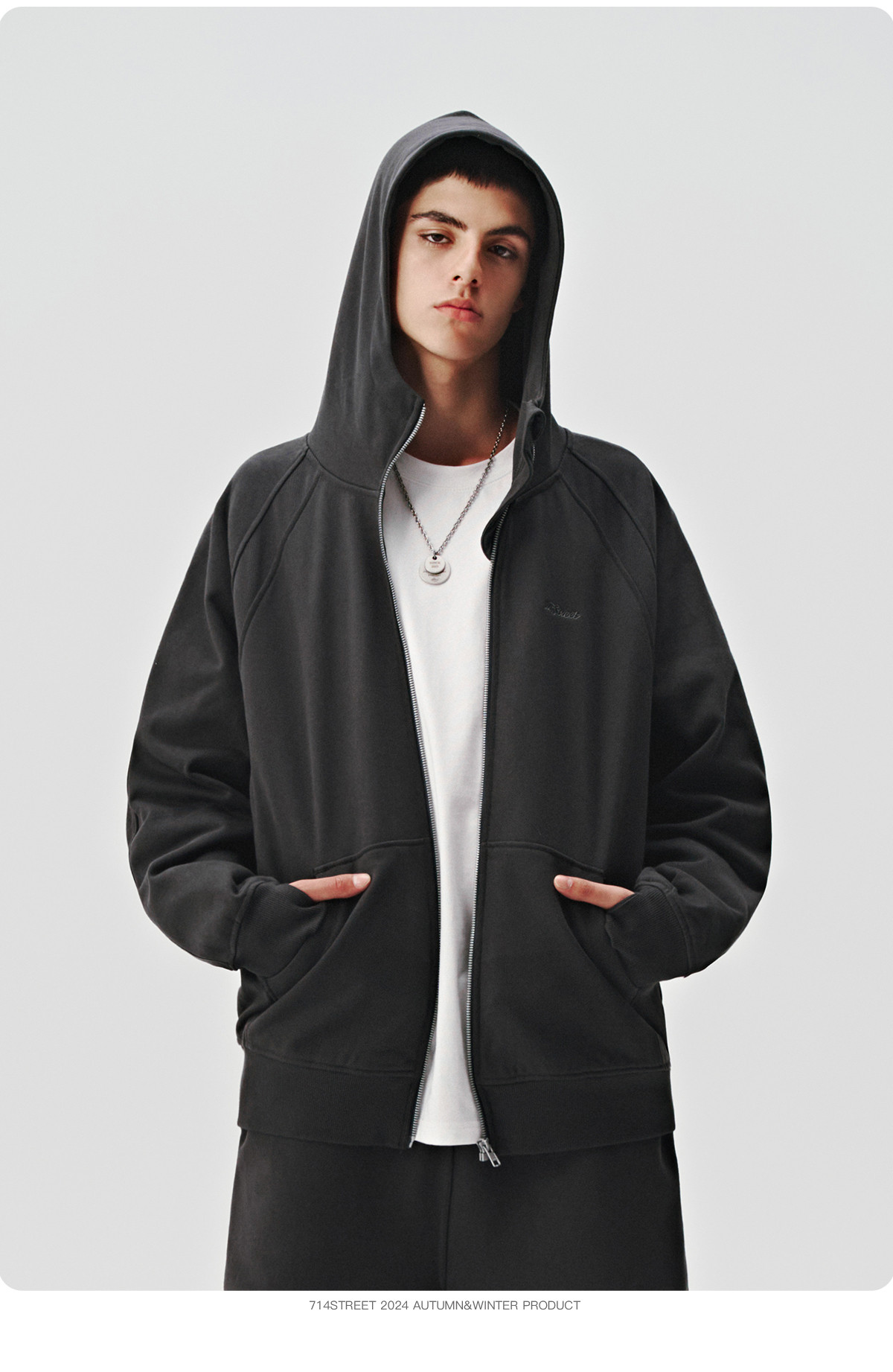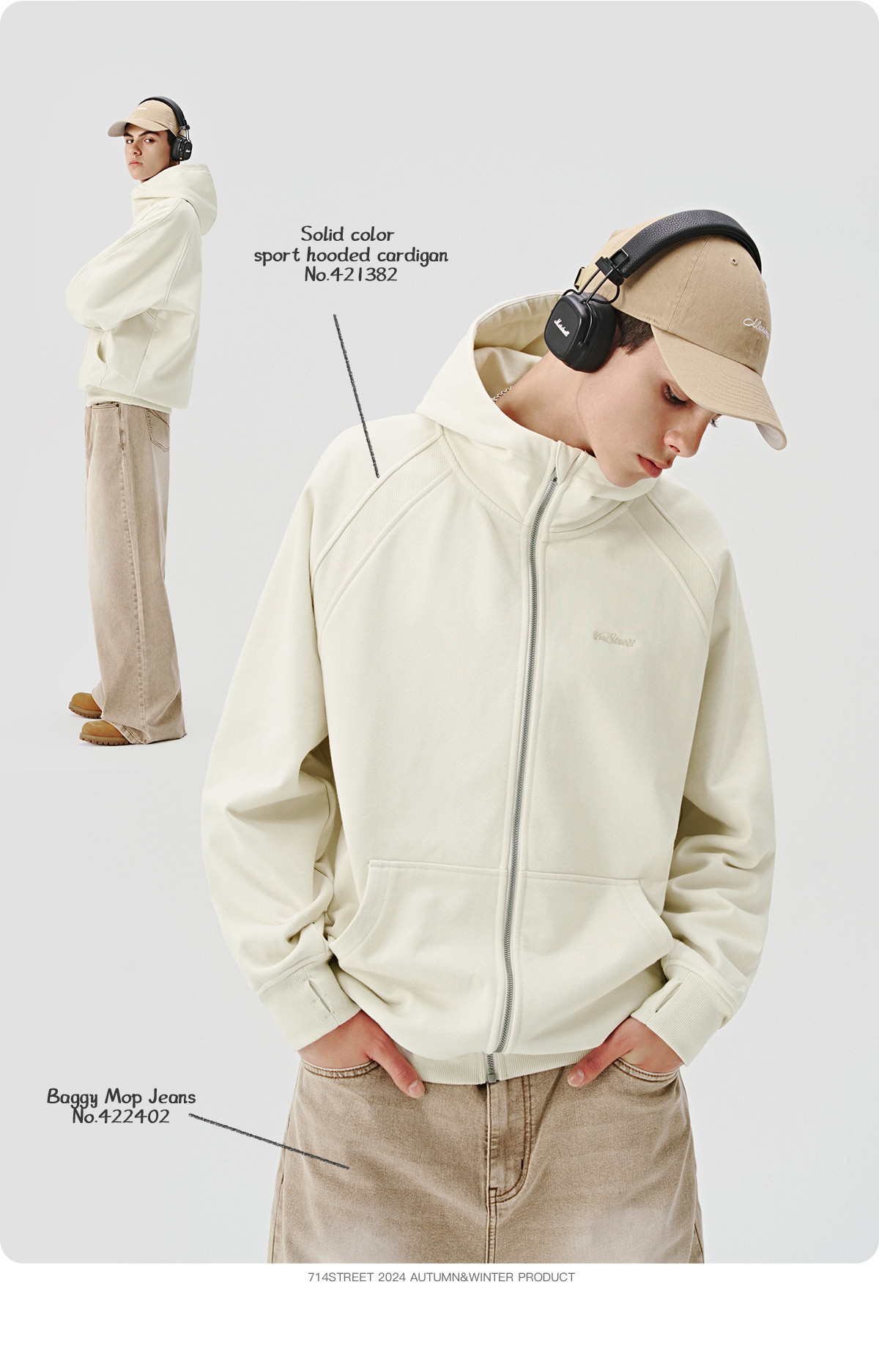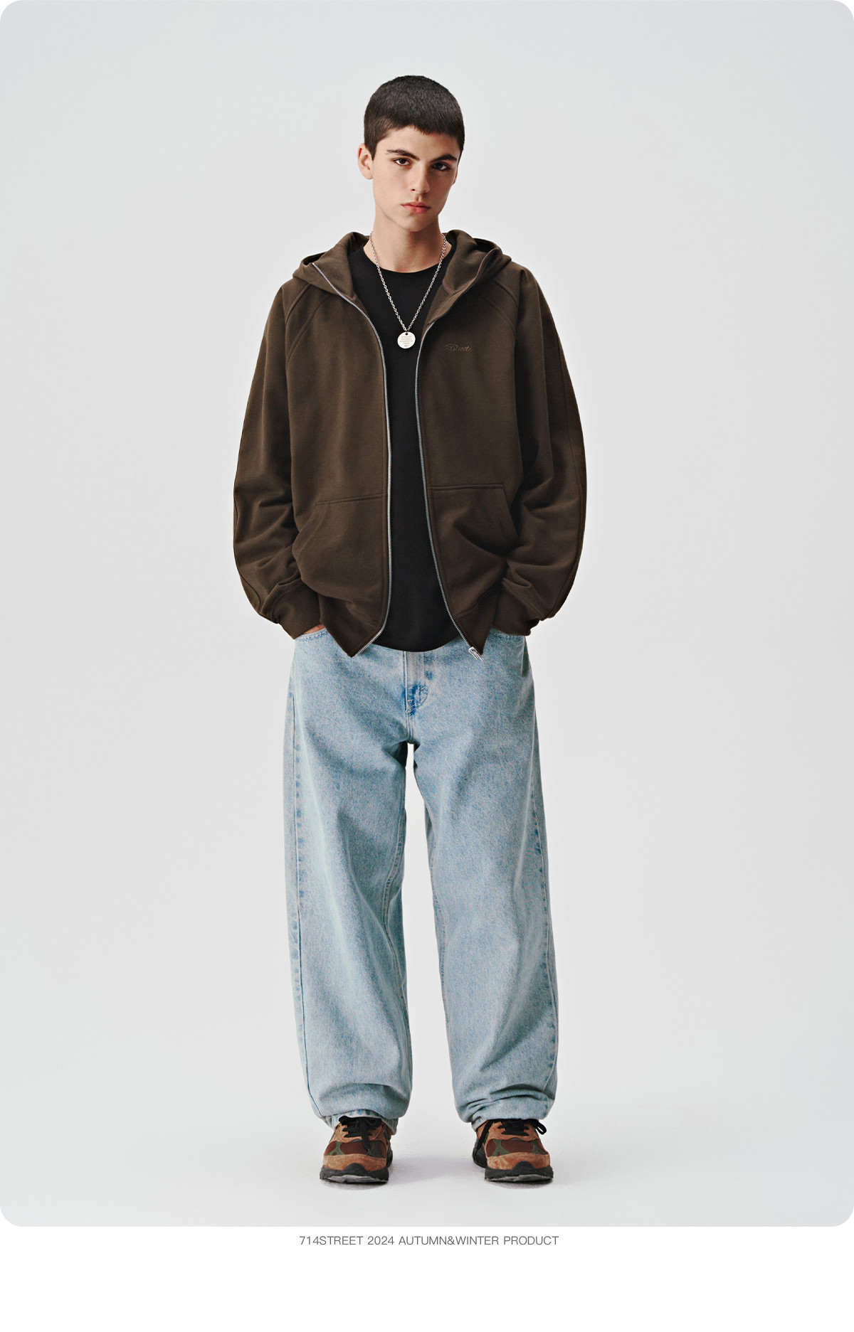714street美式复古重磅连帽卫衣开衫男2024秋季新款宽松休闲外套