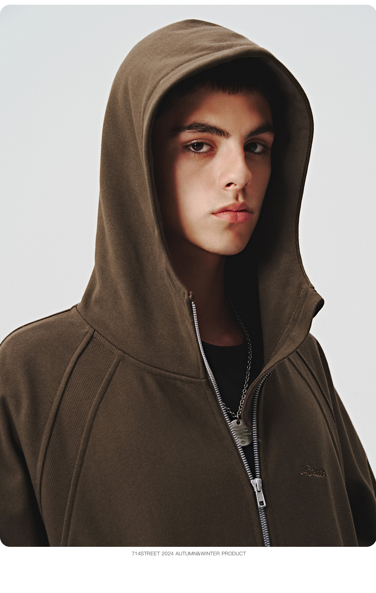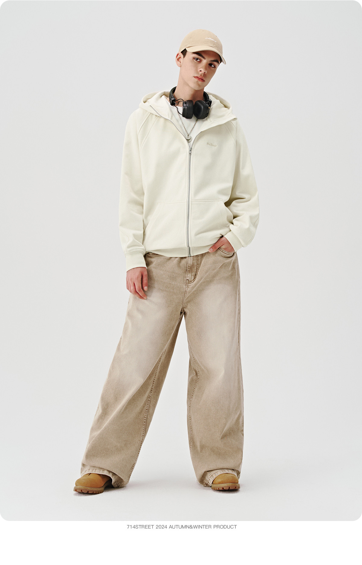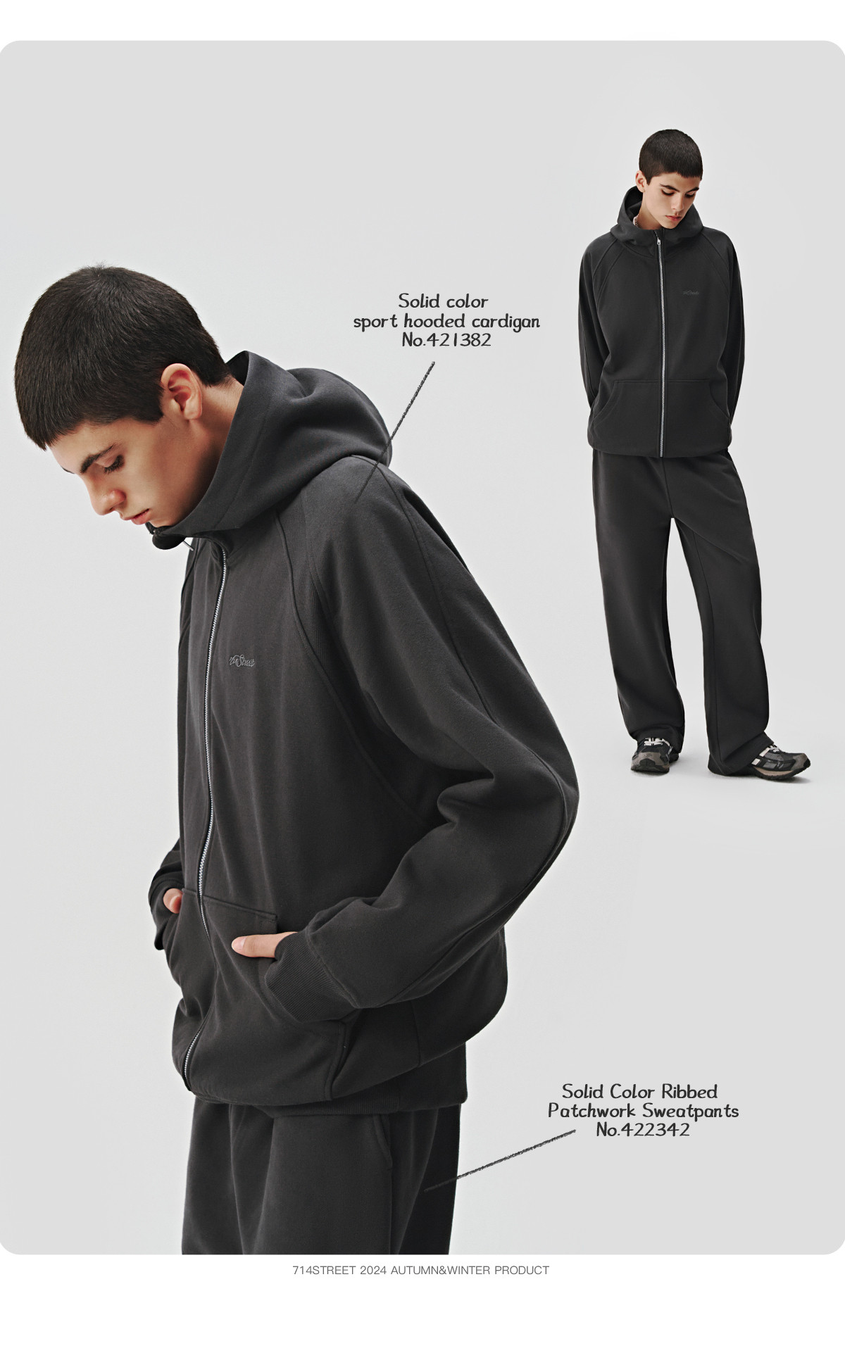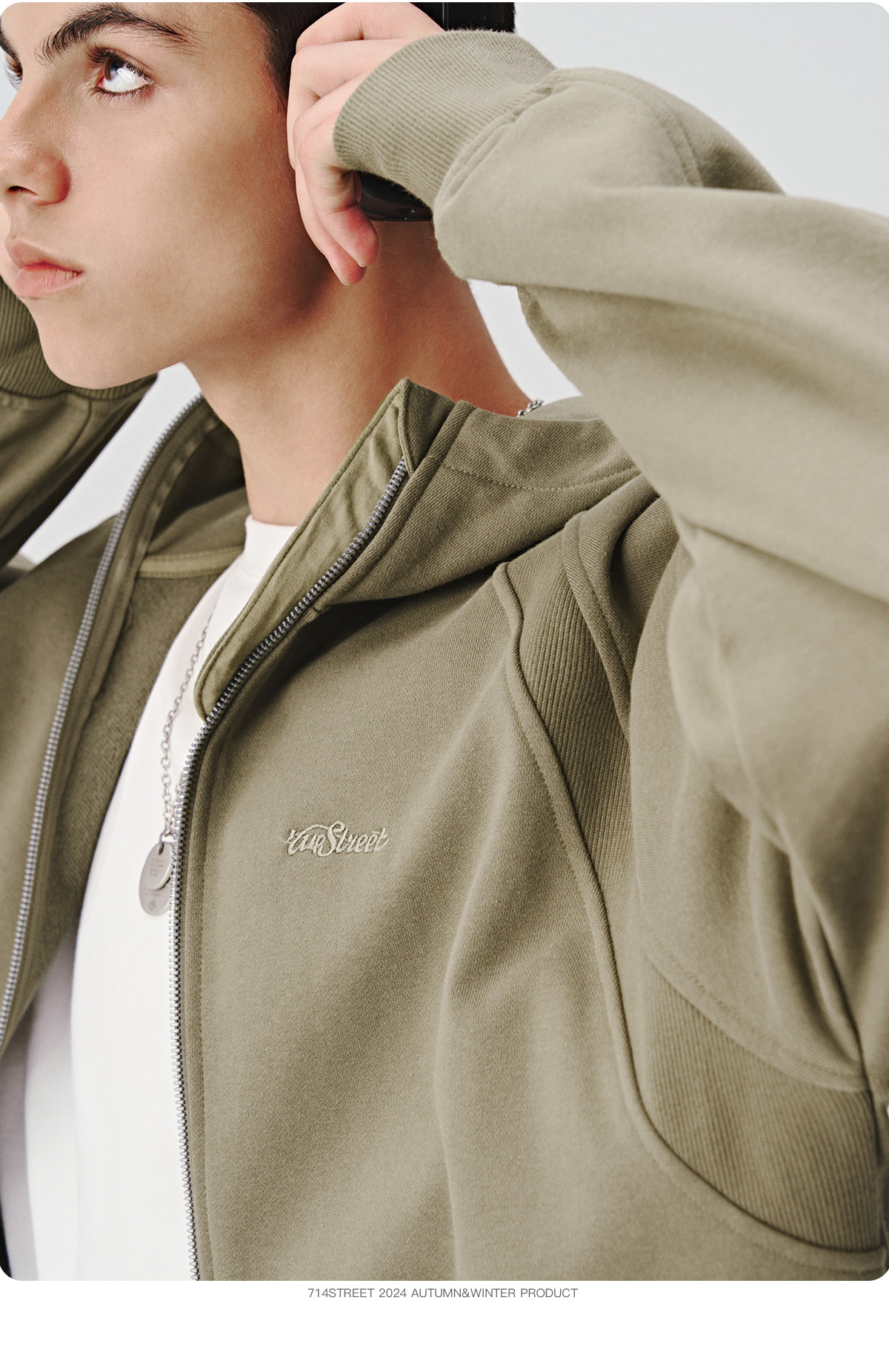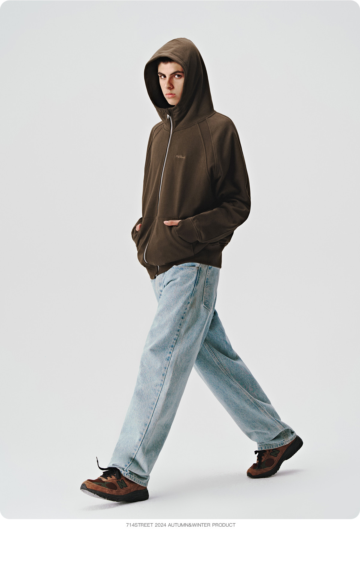 714street美式复古重磅连帽卫衣开衫男2024秋季新款宽松休闲外套