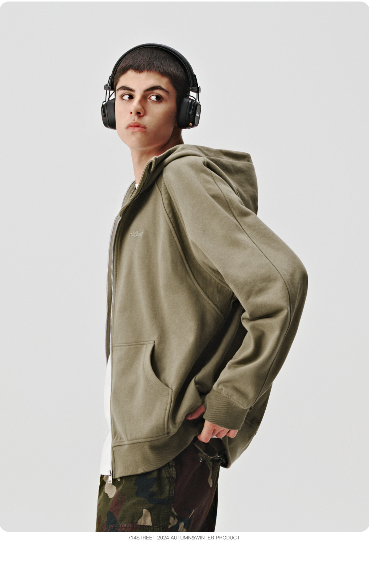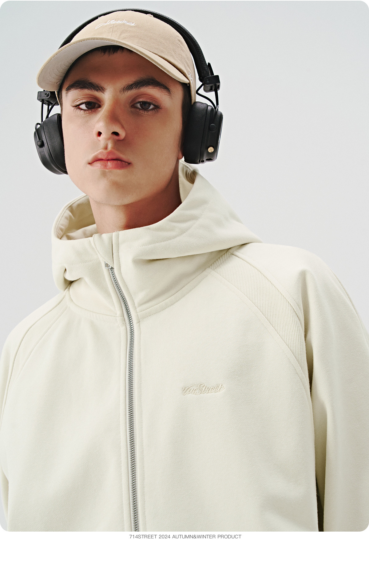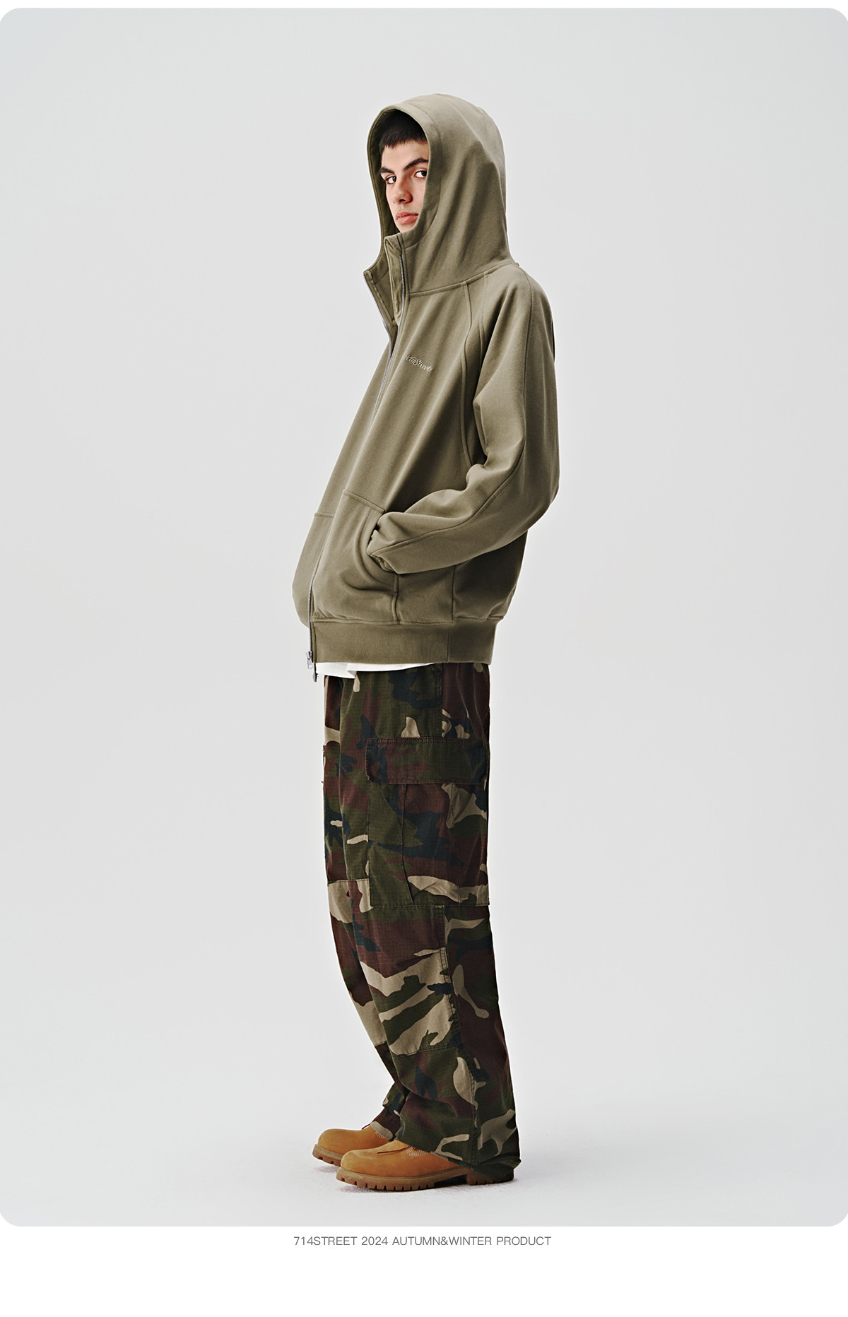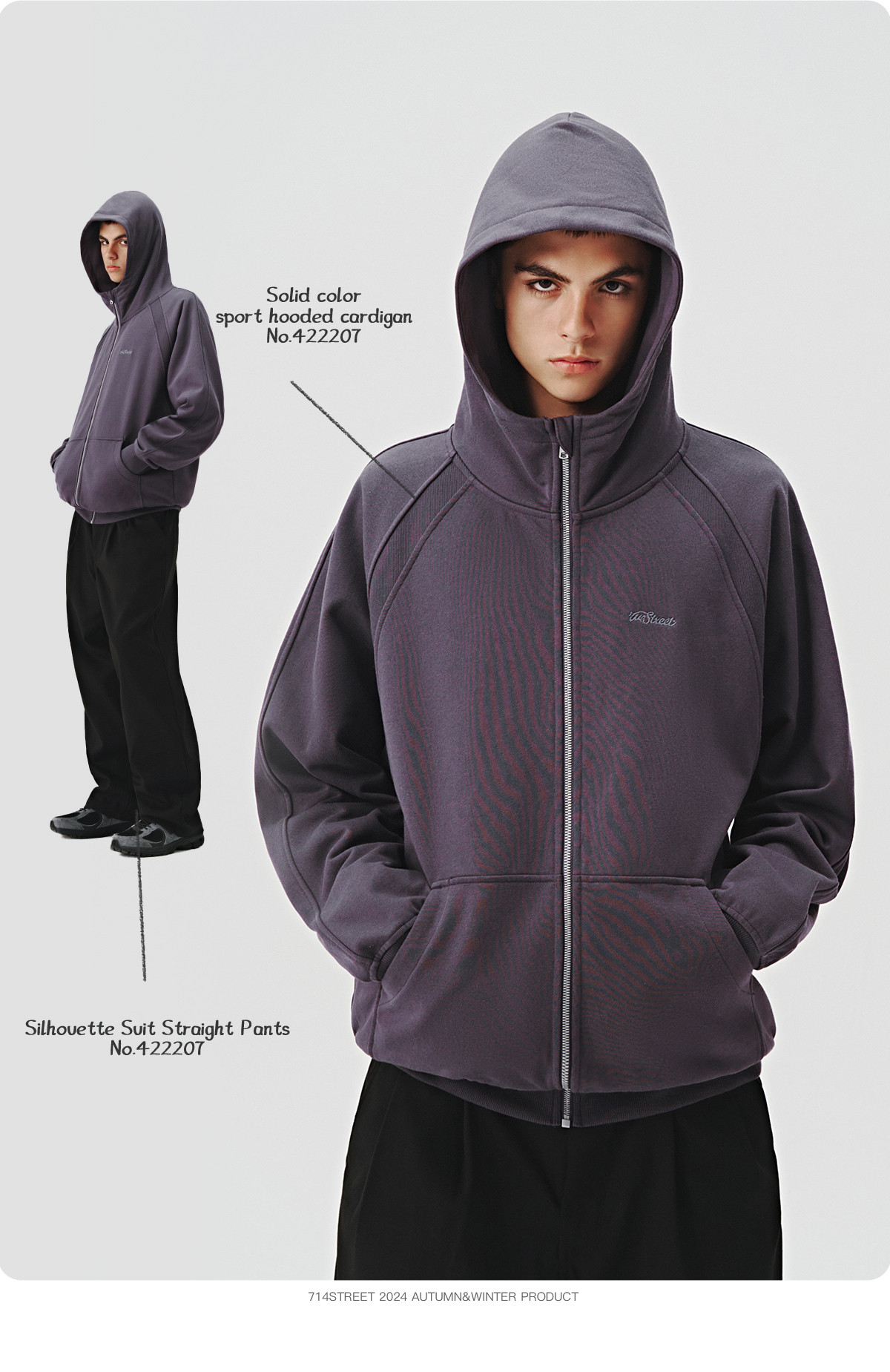 714street美式复古重磅连帽卫衣开衫男2024秋季新款宽松休闲外套
