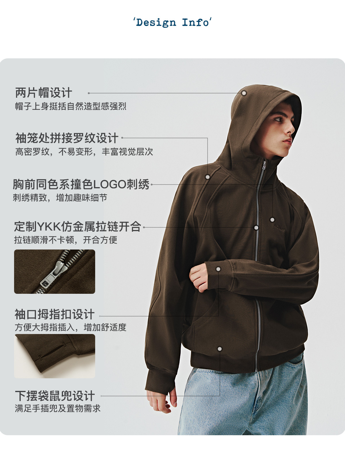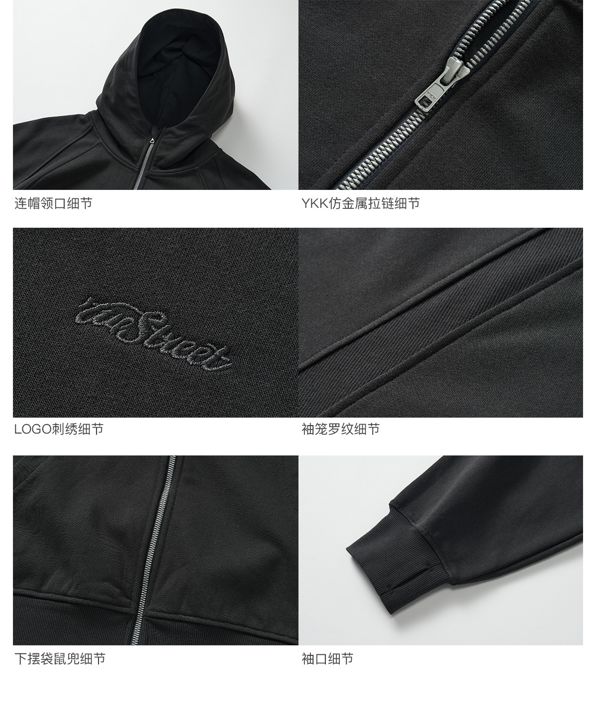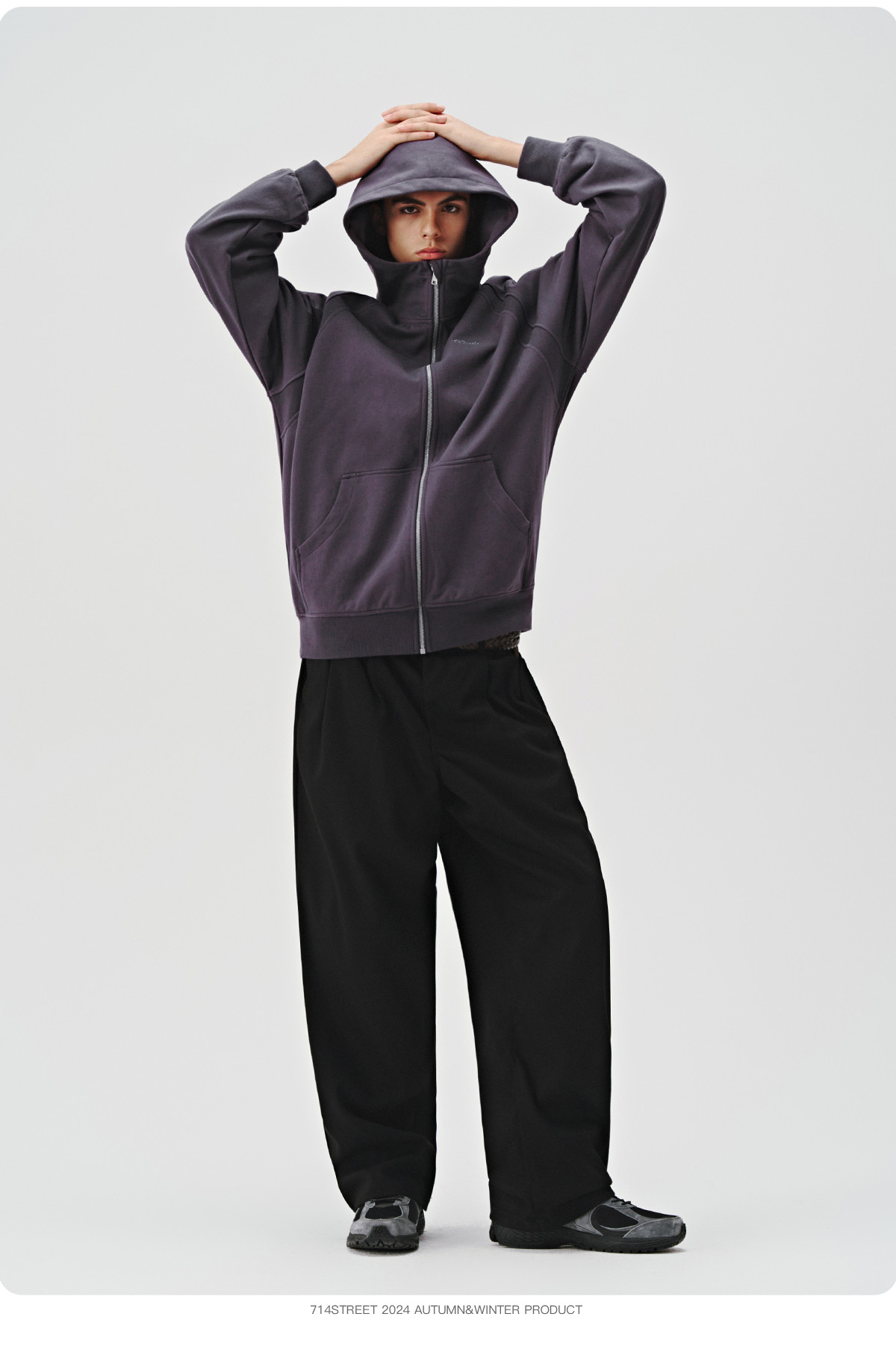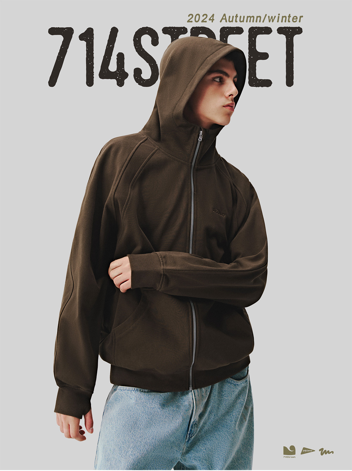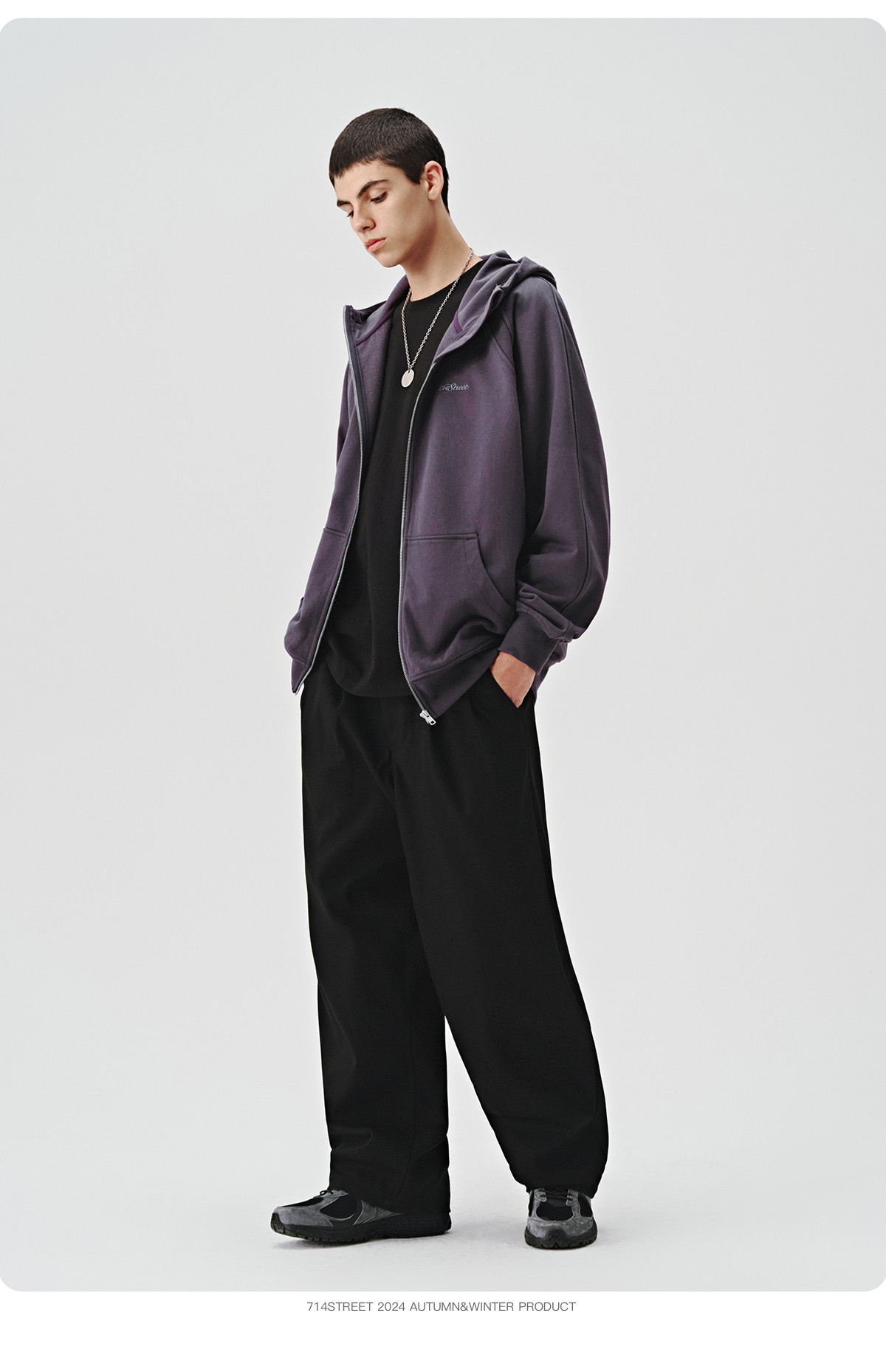 714street美式复古重磅连帽卫衣开衫男2024秋季新款宽松休闲外套