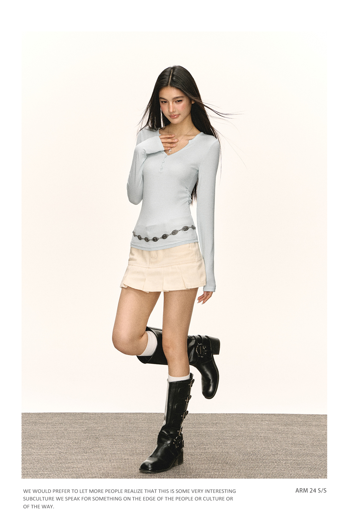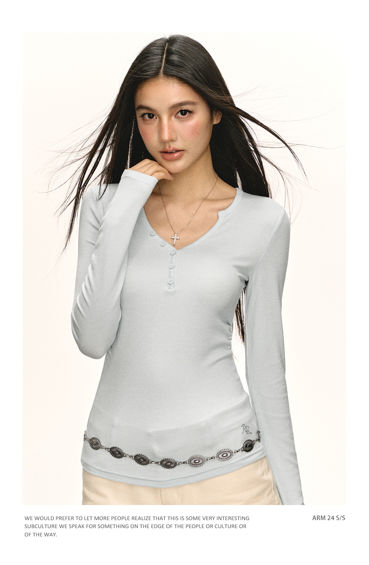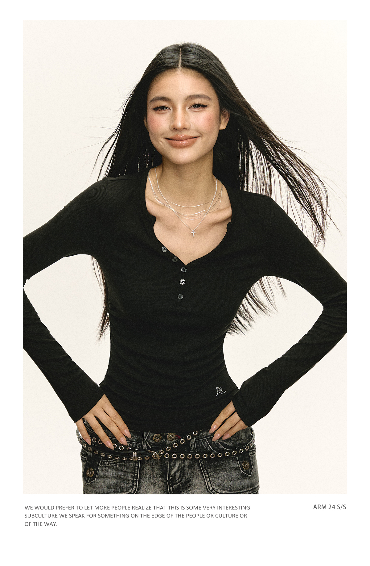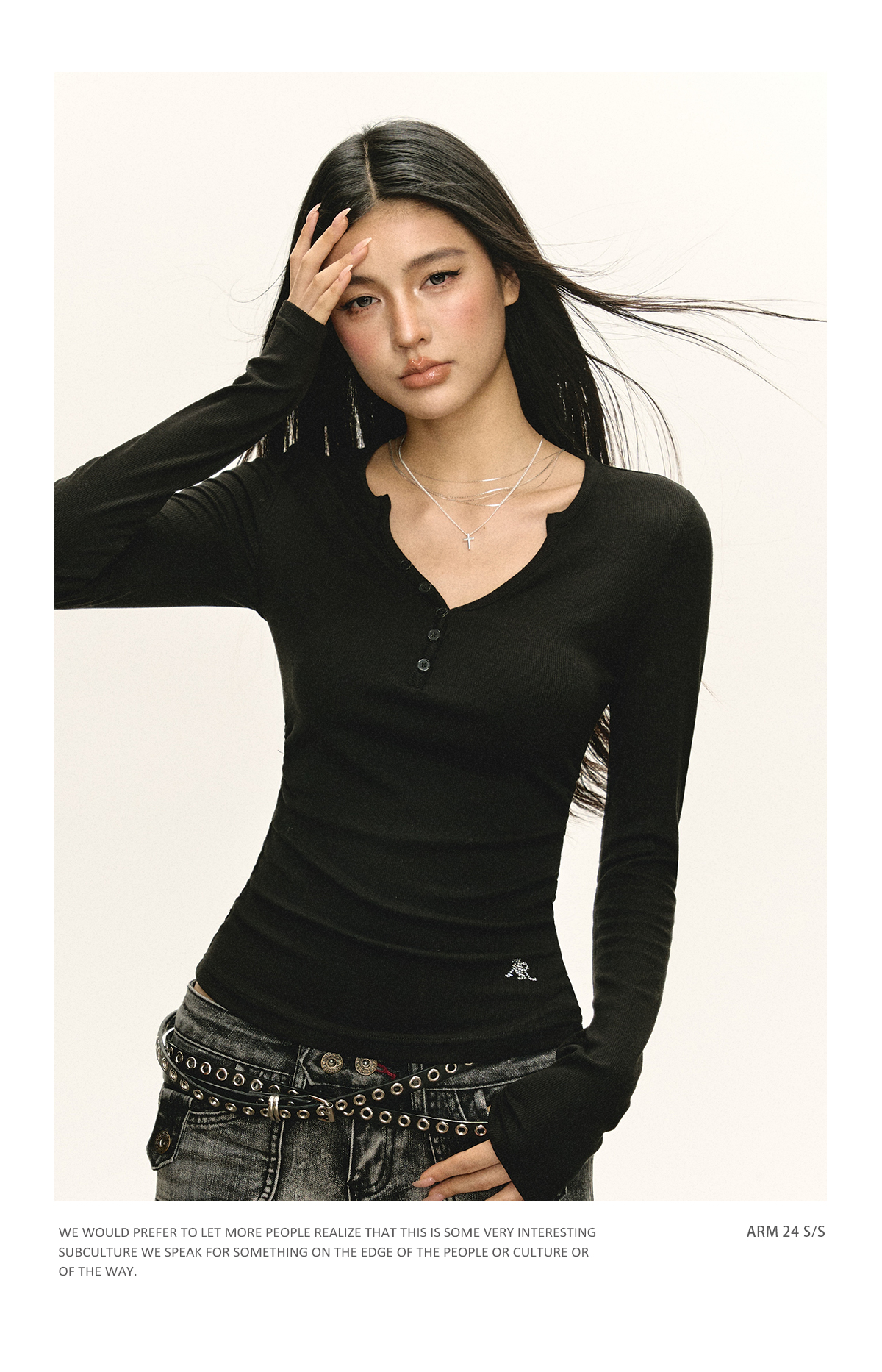 Ariseism 美式复古修身长袖t恤女春新款内搭修身上衣