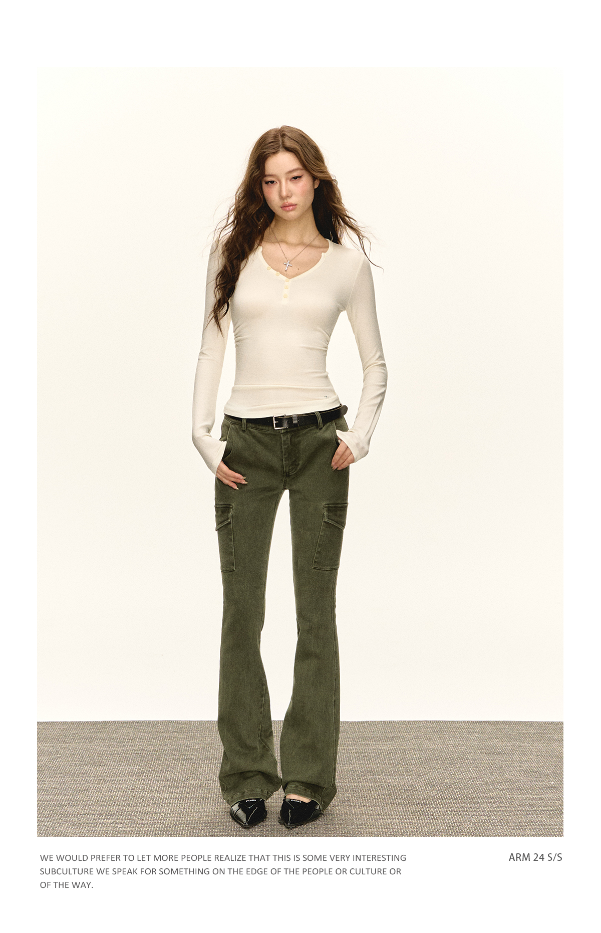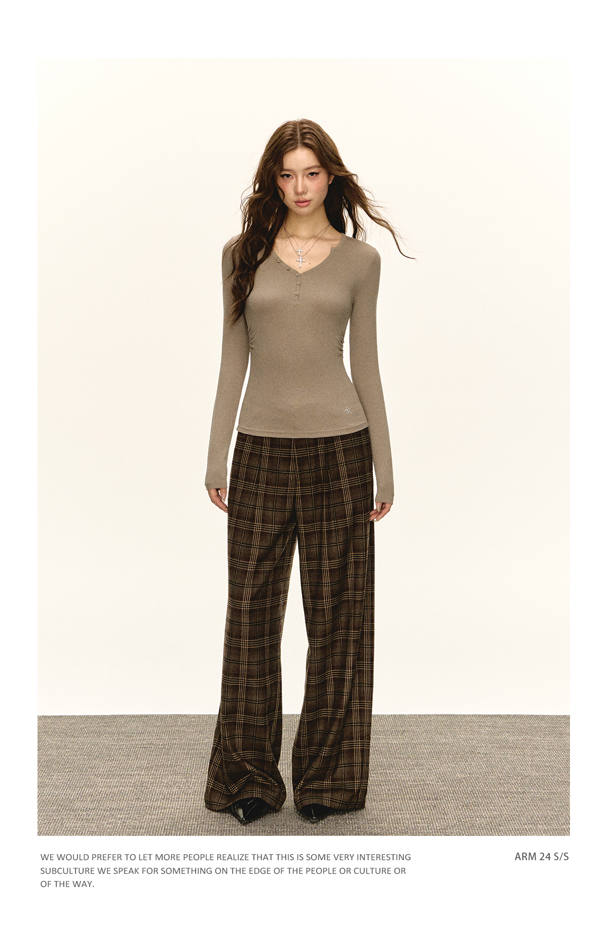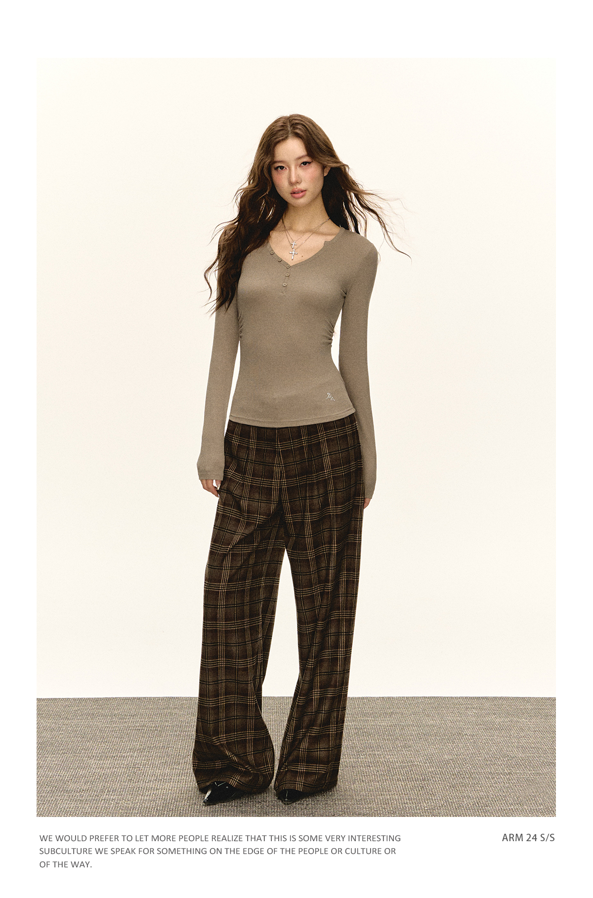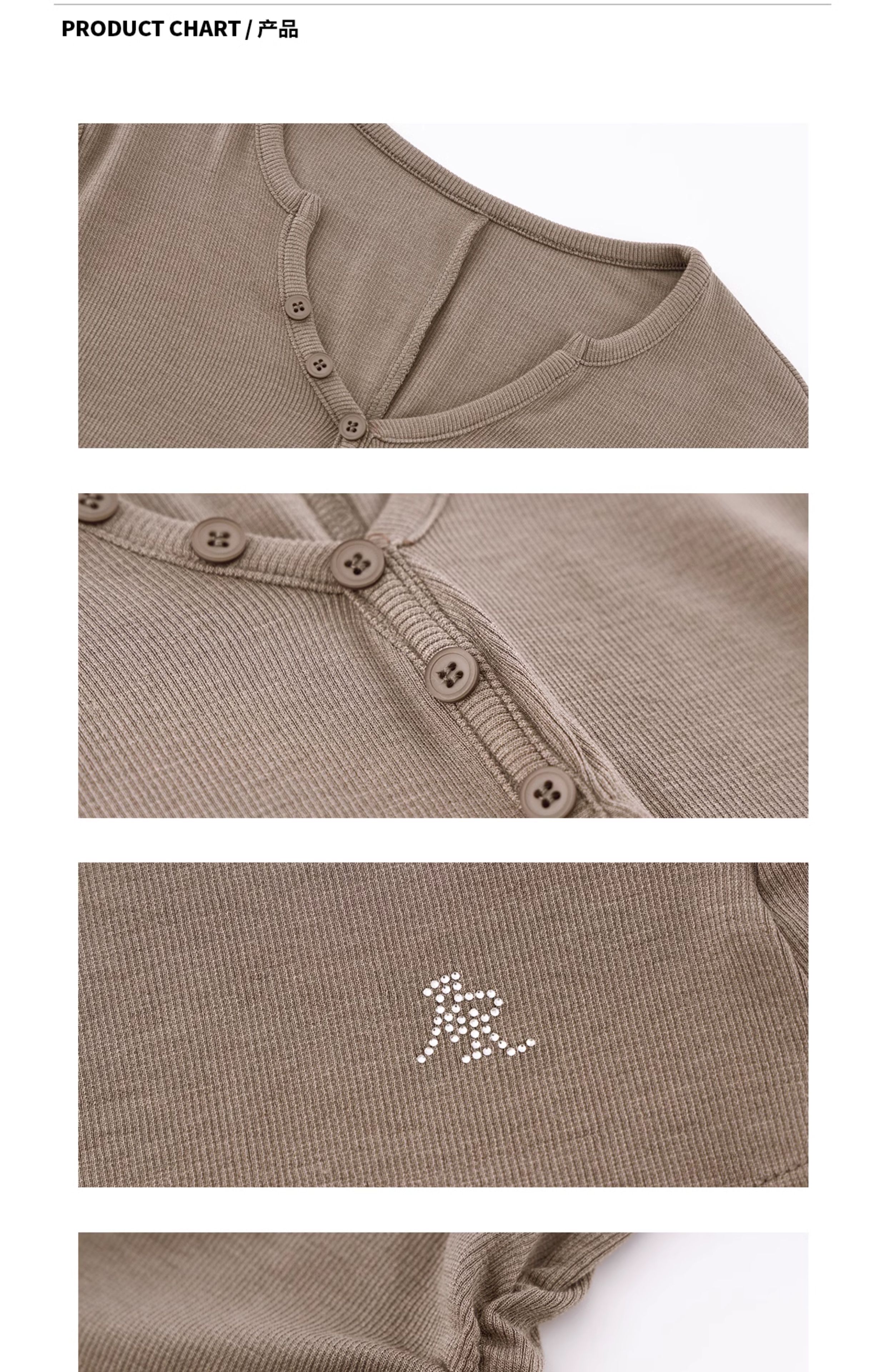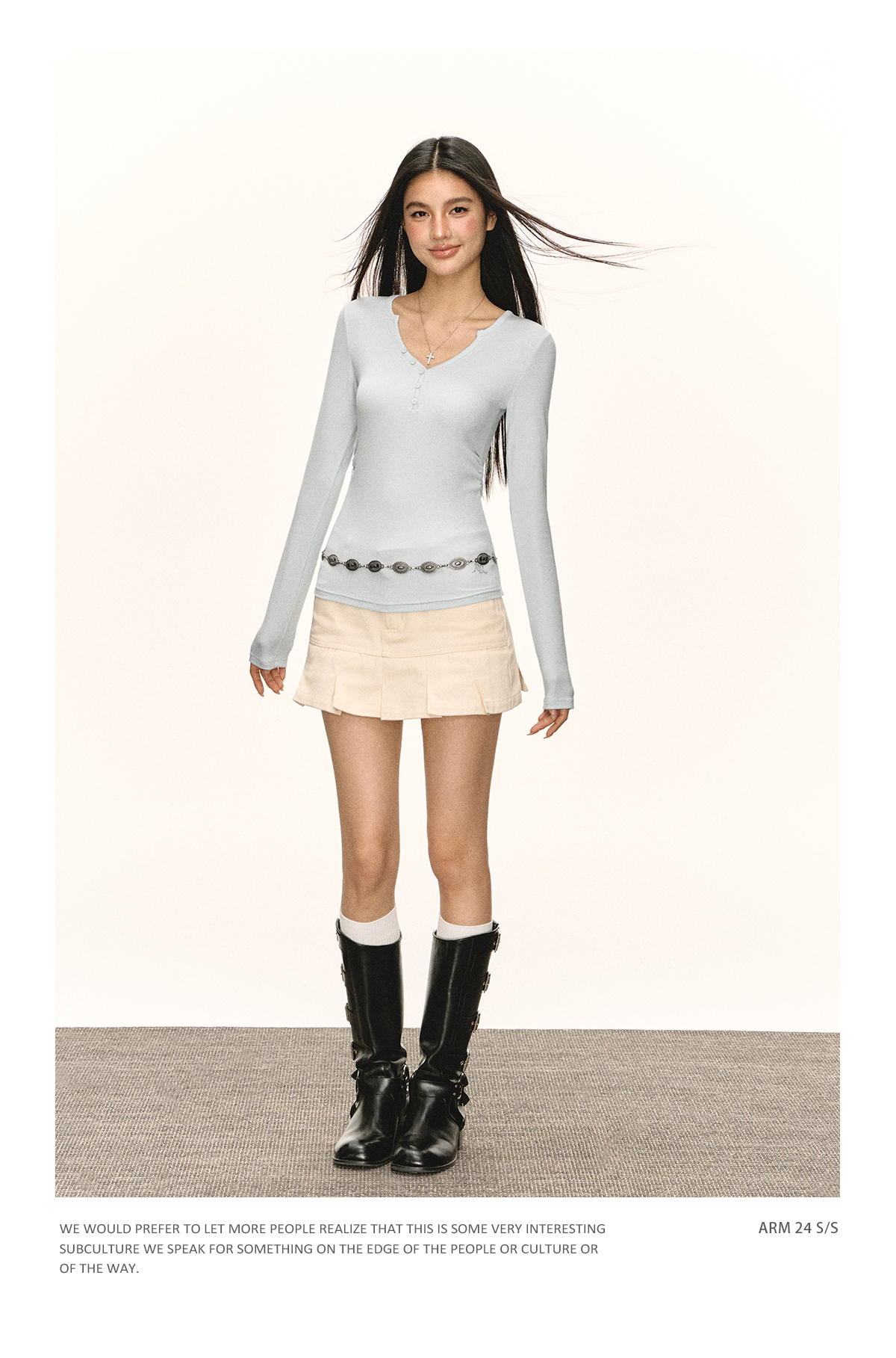 Ariseism 美式复古修身长袖t恤女春新款内搭修身上衣