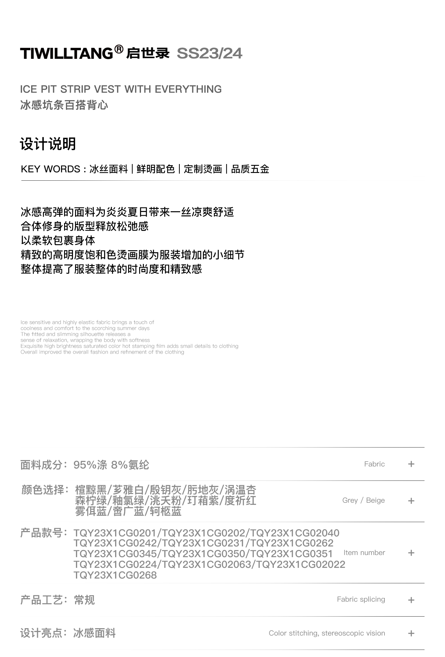 启世录TIWILLTANG“炼罄焐迹”冰感高弹百搭背心运动修身上衣男
