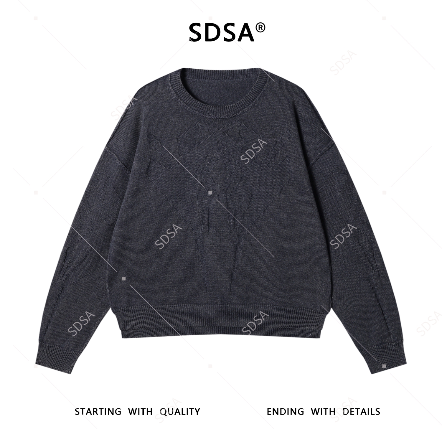 72389SDSA男士秋冬新款痞帅男装潮牌纯色短款针织衫双层下摆设计毛衣