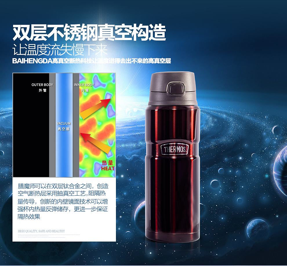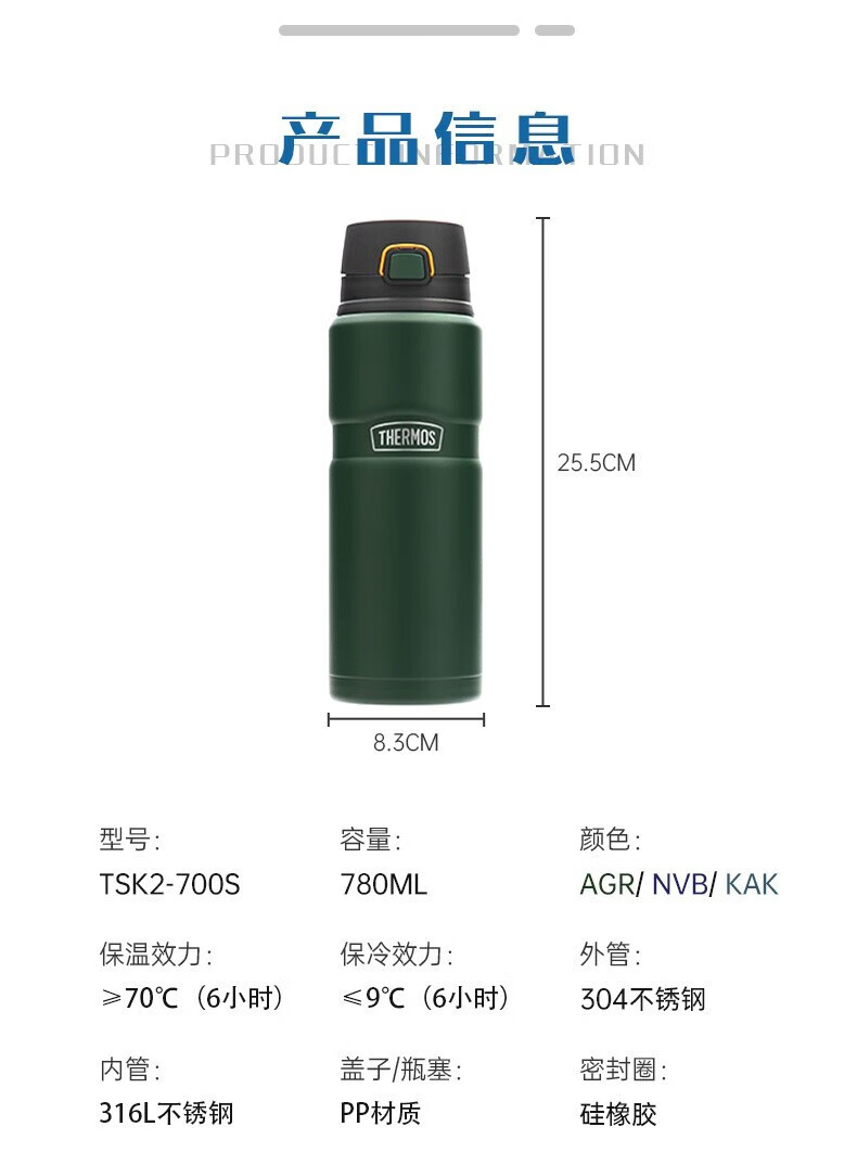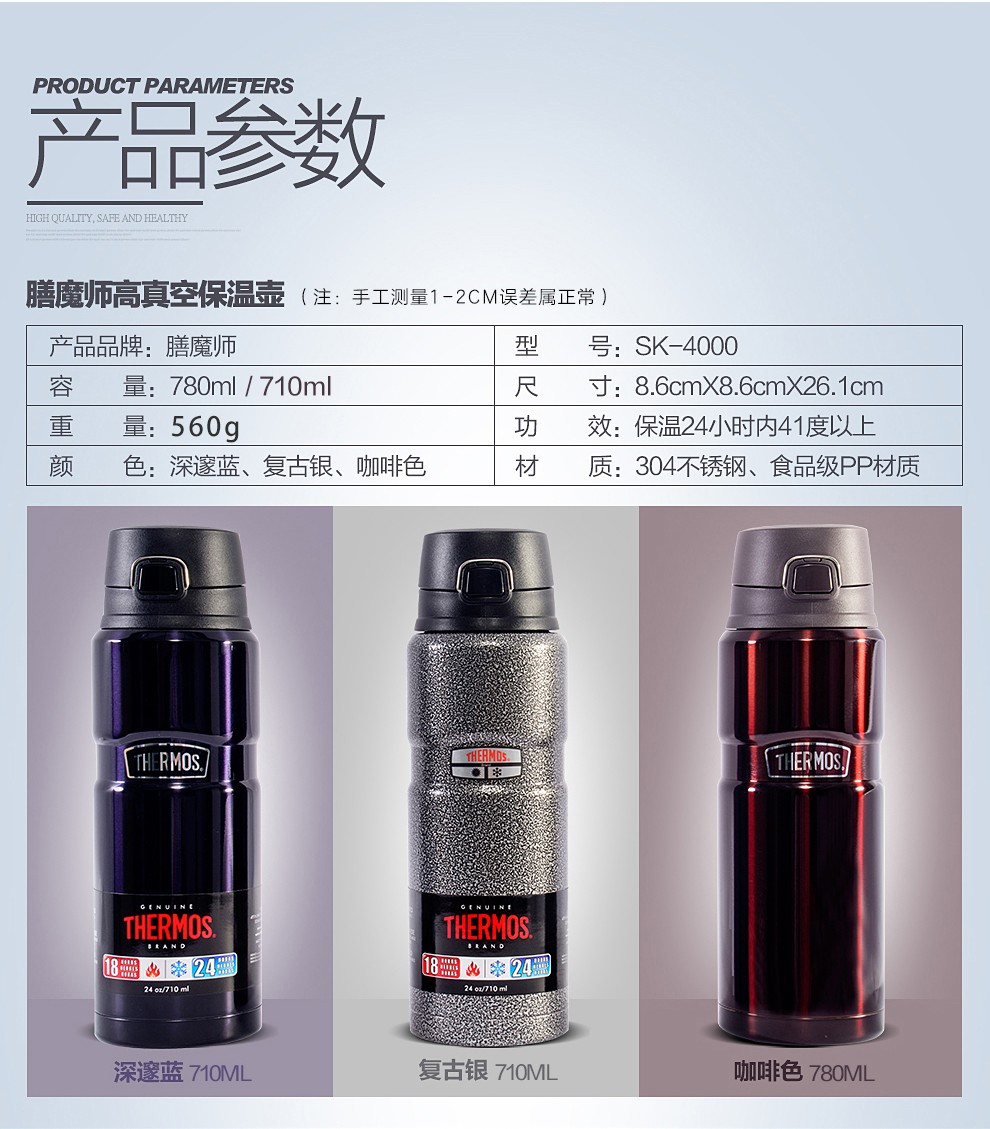 膳魔师(THERMOS) 保温杯壶大容量不锈钢真空保温保冷杯男车载旅行水杯壶TSK2-700S 780ml