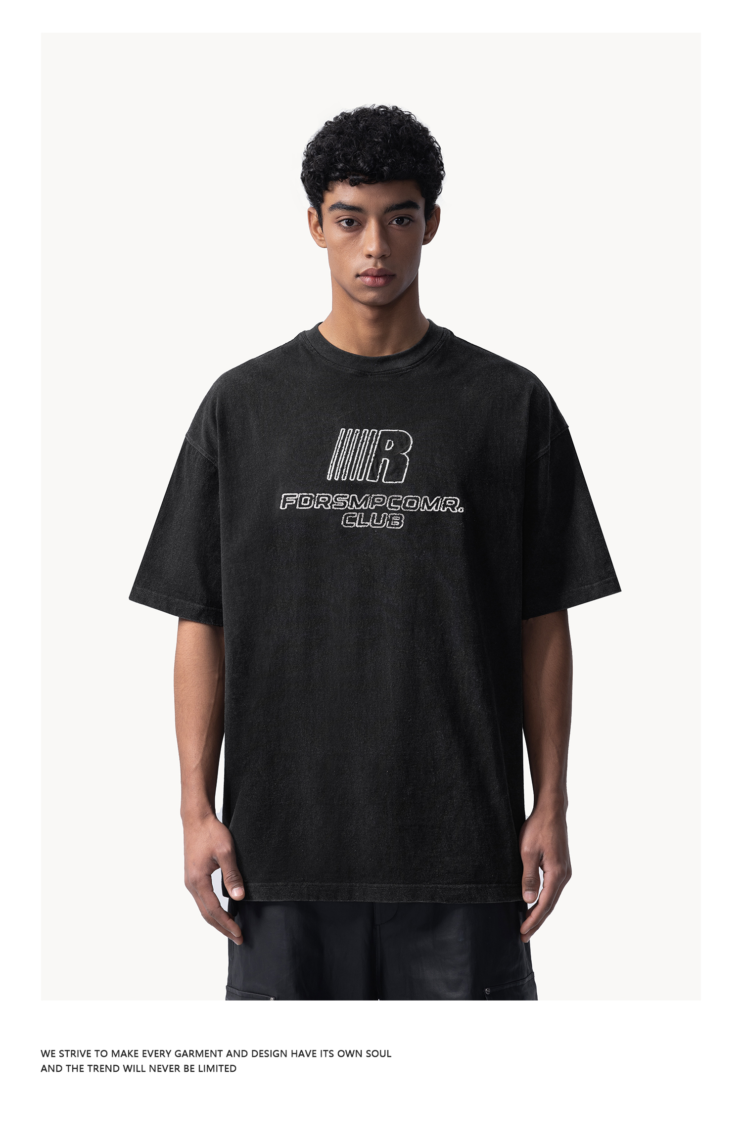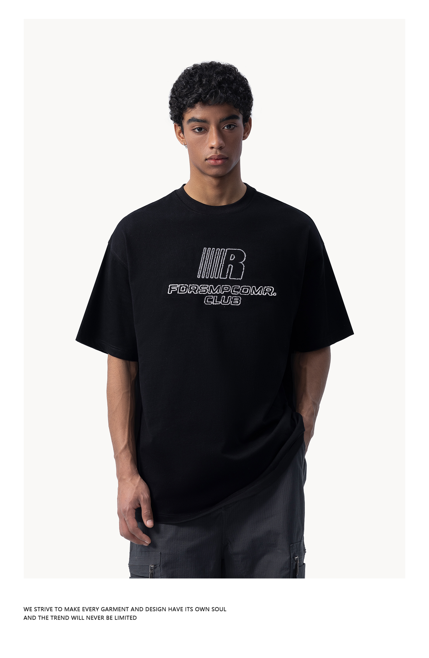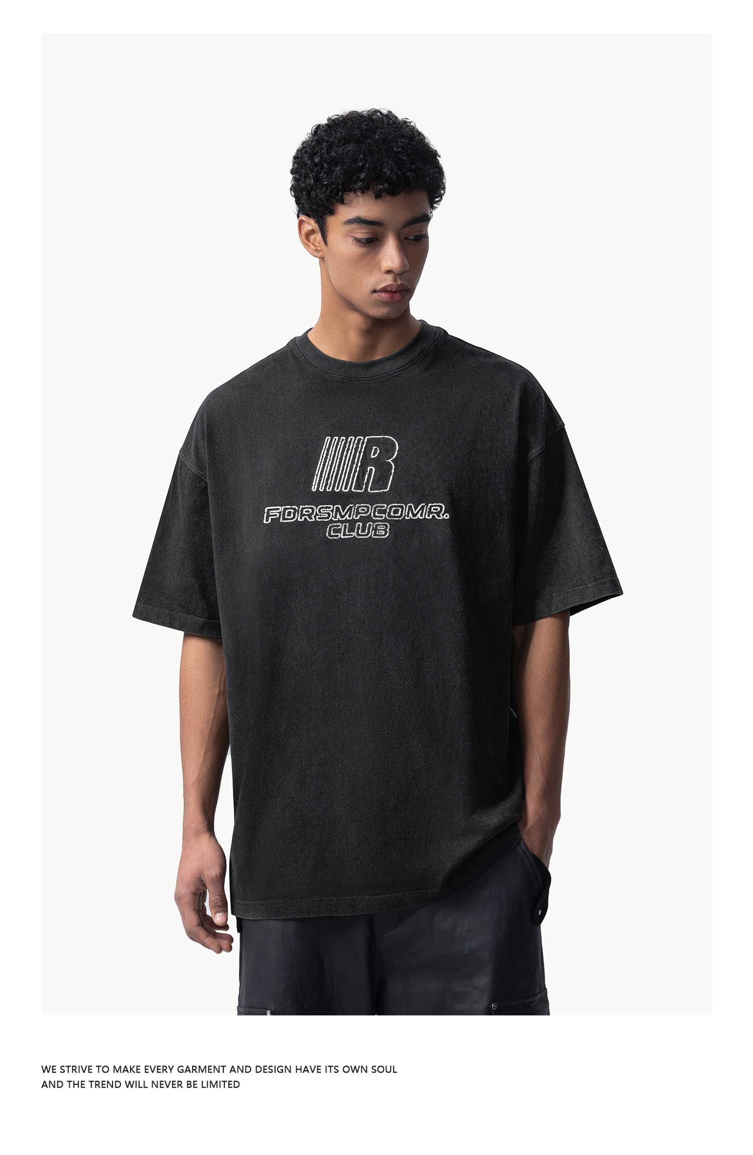 【178元任选3件】FDR官方店 【梓渝同款】斑驳R字绣花运动情侣美式短袖t恤男女重磅潮牌休闲体恤
