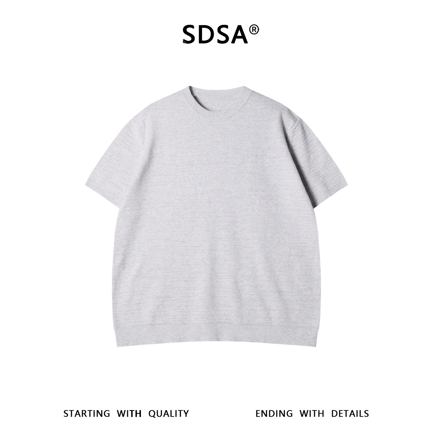 SDSA男装2026新款轻奢老钱风简约纯色提花针织圆领短袖T恤百搭