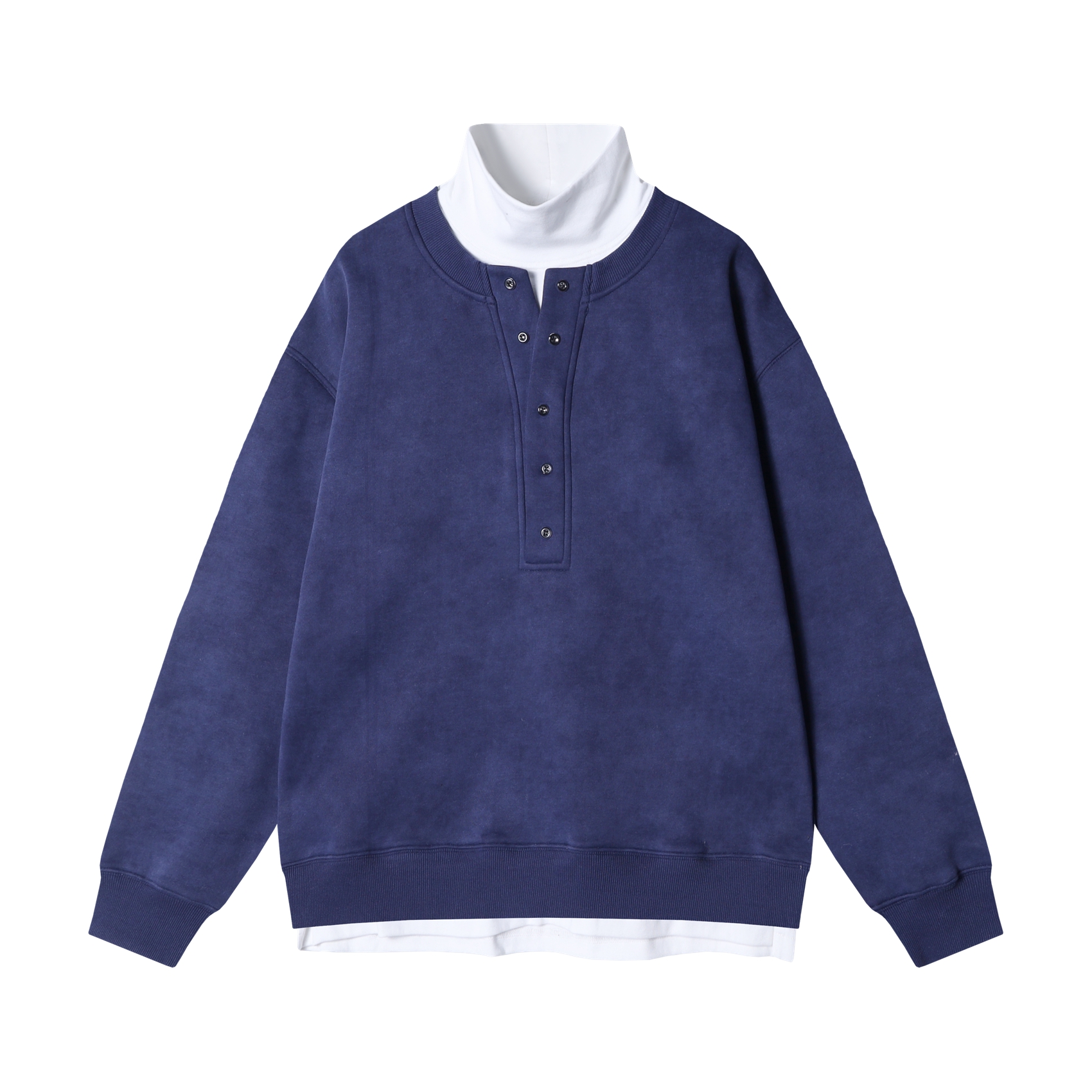 WY1000秋冬季新款时尚个性纯色半纽扣翻领卫衣休闲简约宽松百搭套头上衣