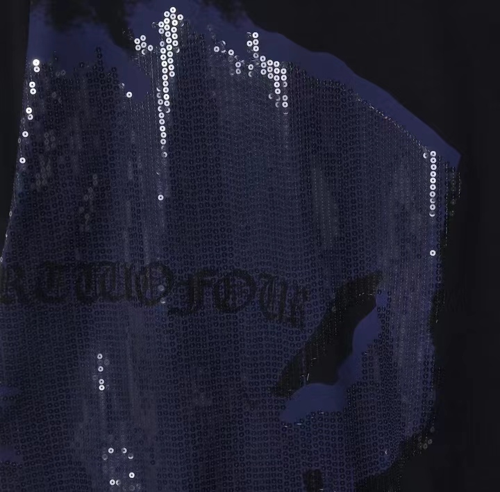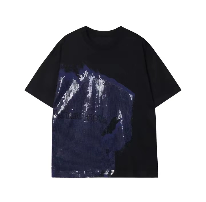 T617夏季新款设计珠片扎染短袖t恤个性休闲时尚男女情侣复古上衣