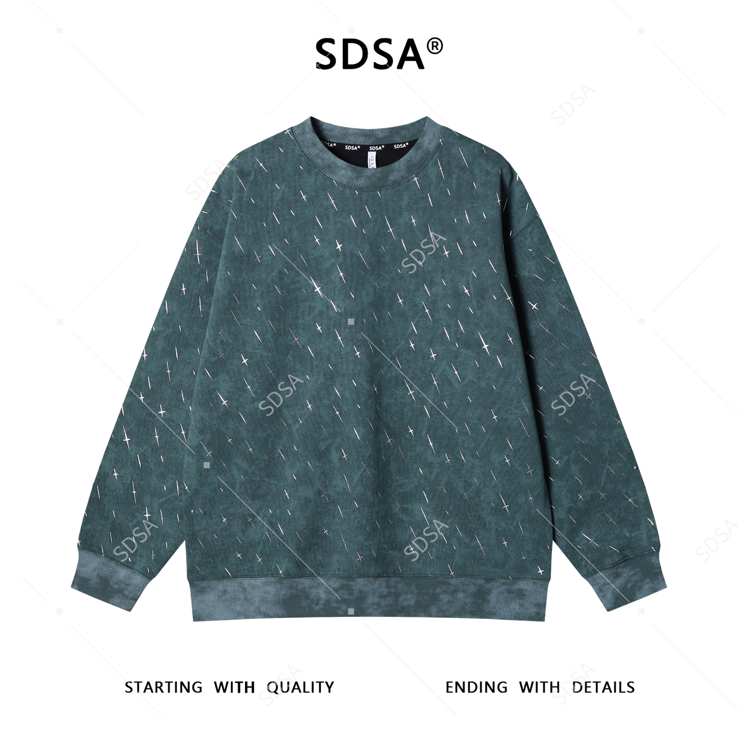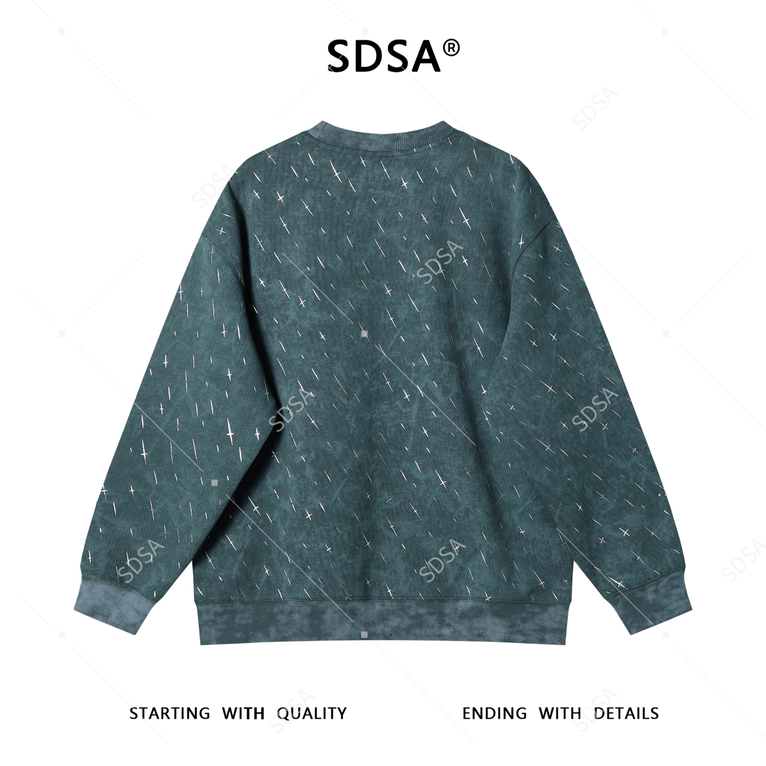 WY1079男士秋冬新款痞帅男装扎染滴胶十字圆领卫衣休闲重工时尚潮牌