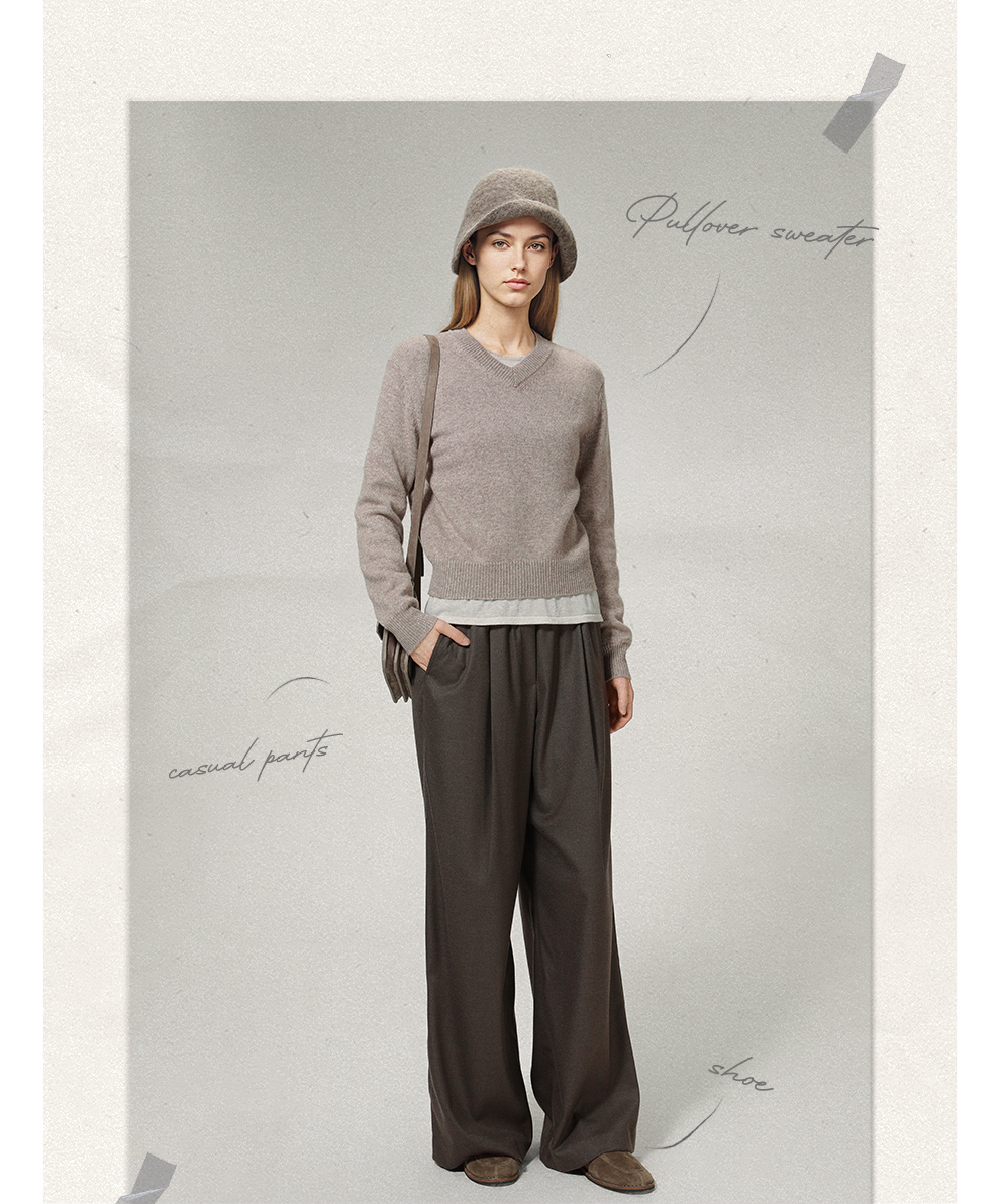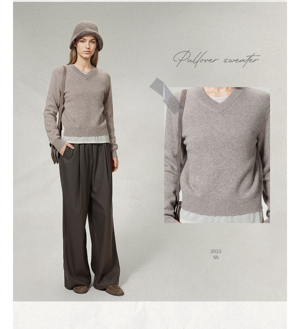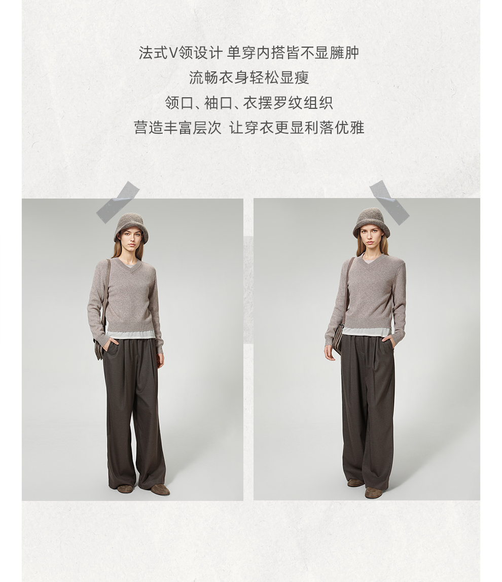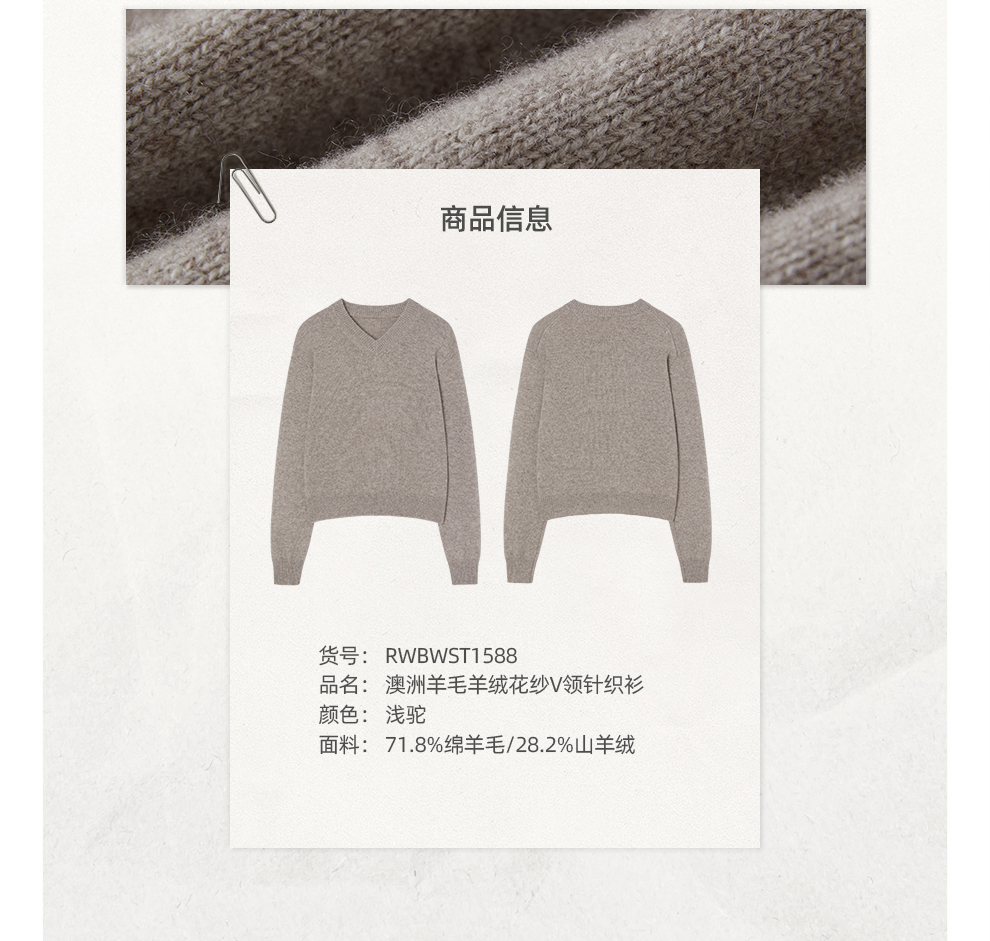 ROMI STUDIO“温暖如初”山羊绒绵羊毛混纺V领套头毛衫 RWBWST1588