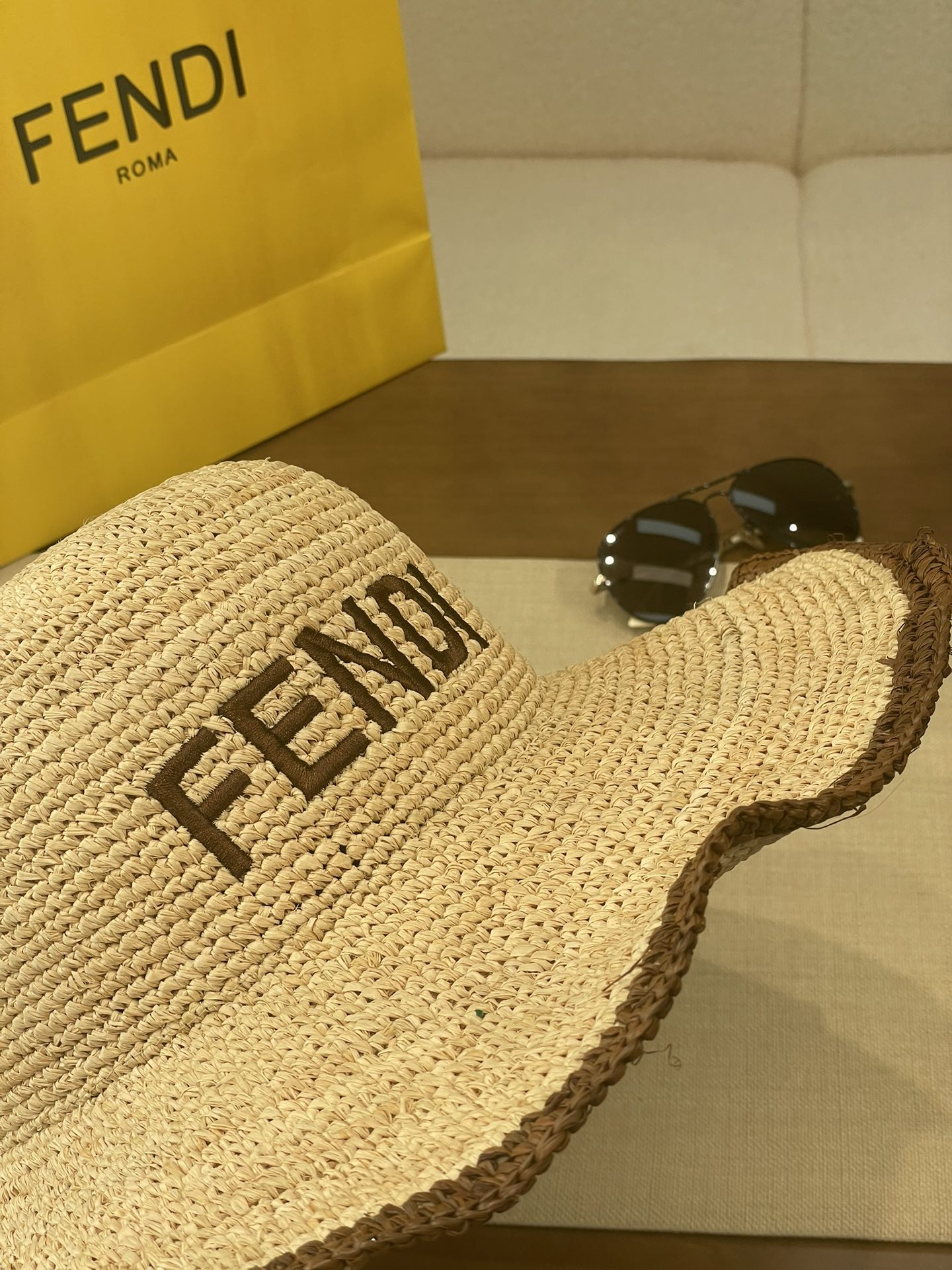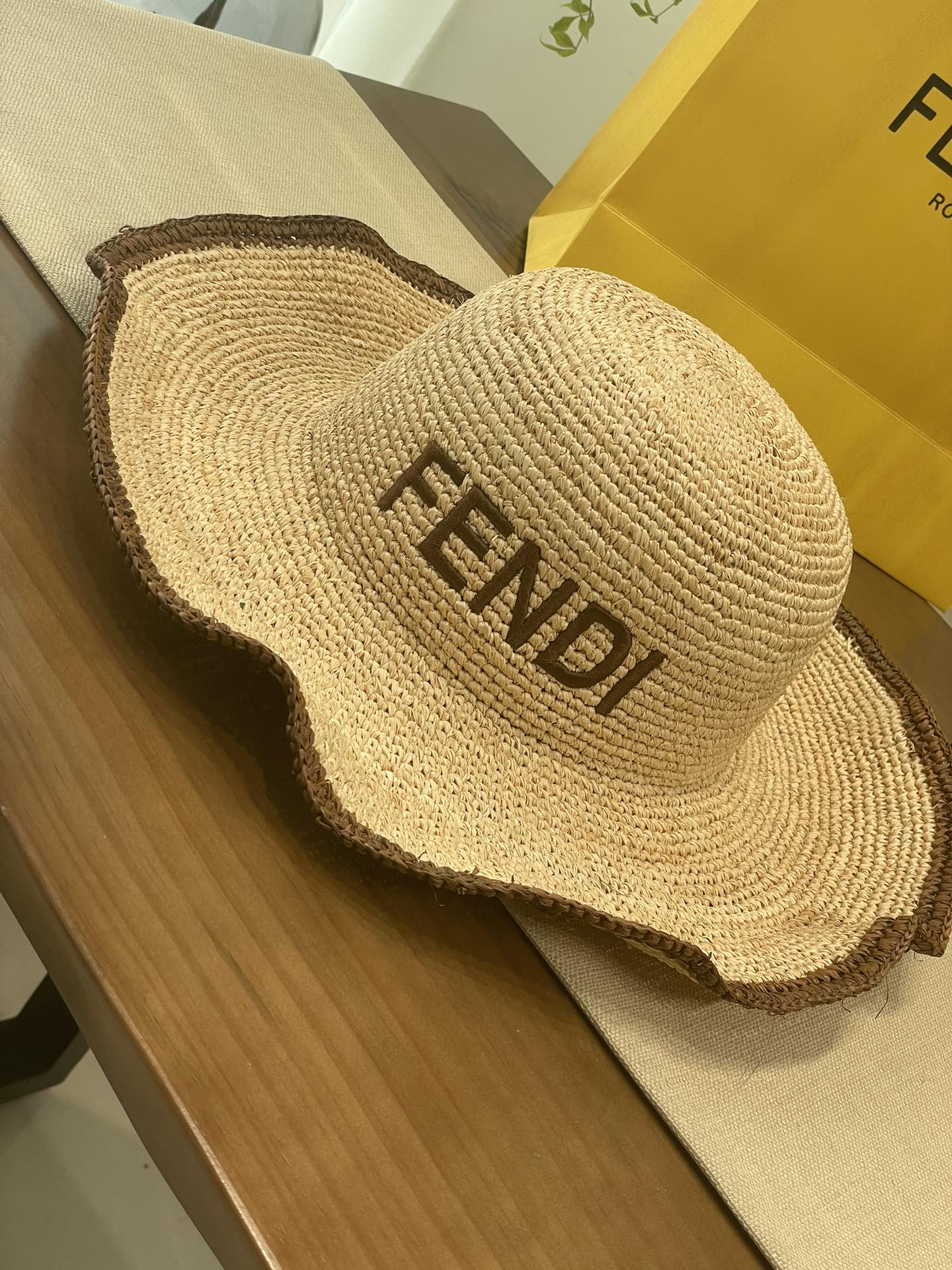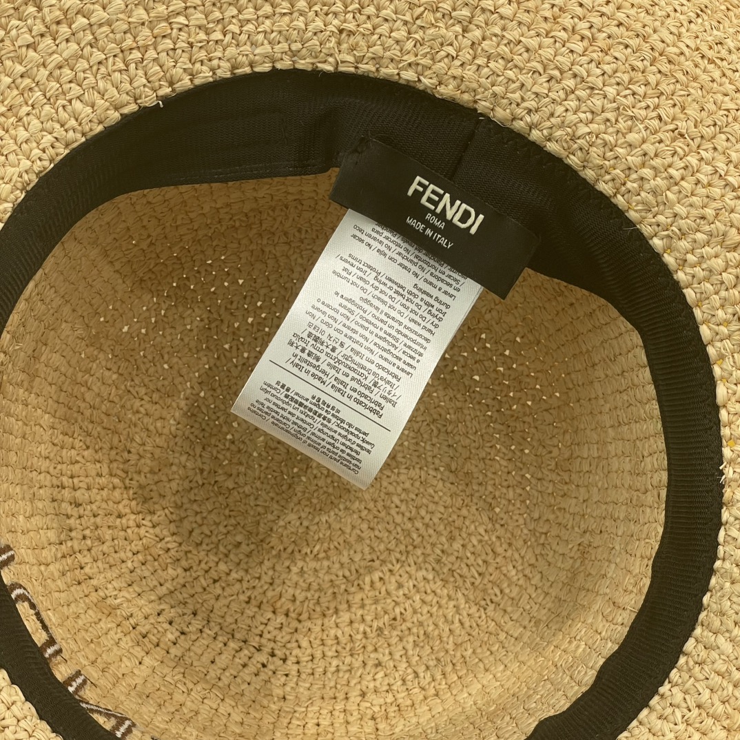 选用浅米色草编材质,呈现出自然随性的风格。帽身印有醒目的“FENDI”品牌字样,彰显独特魅力,边缘棕色装饰细节满满,精致感十足。搭配FENDI草编包,无论是度假出游还是休闲时光,都能让您轻松展现时尚品味,是提升夏日造型的优质之选。