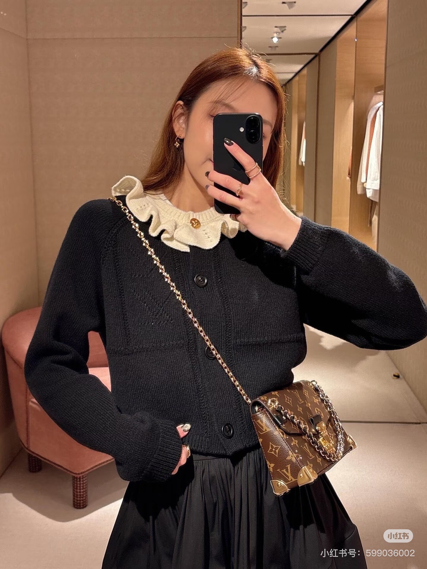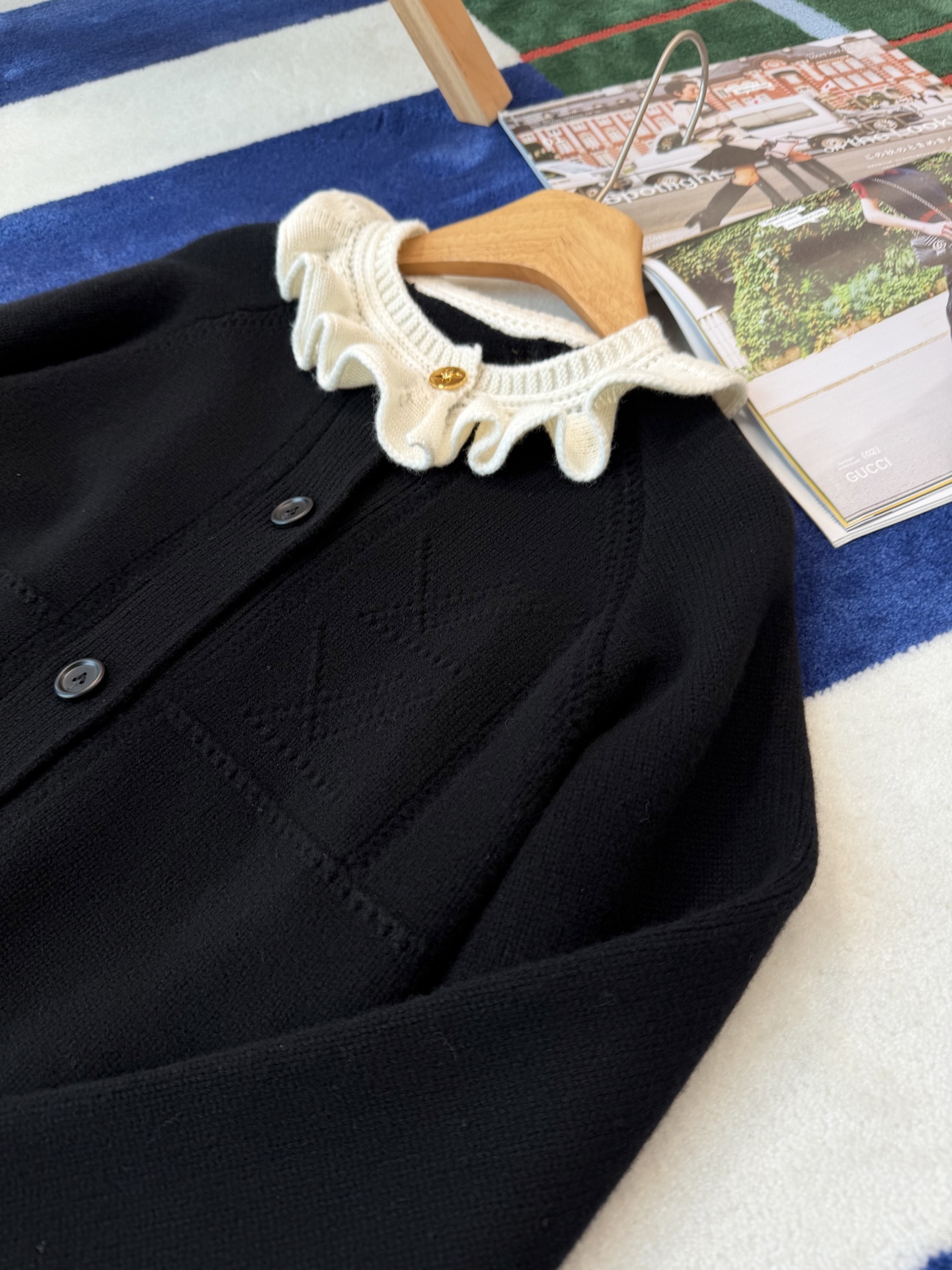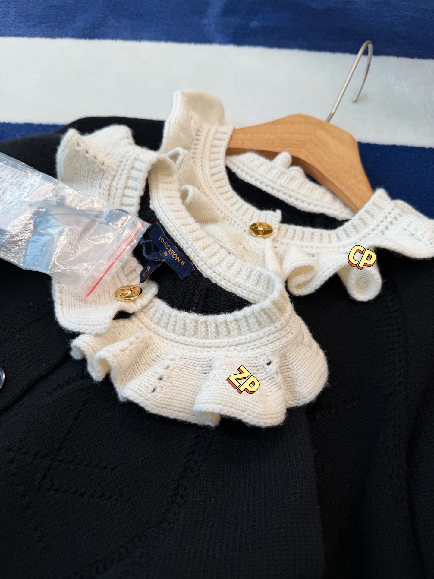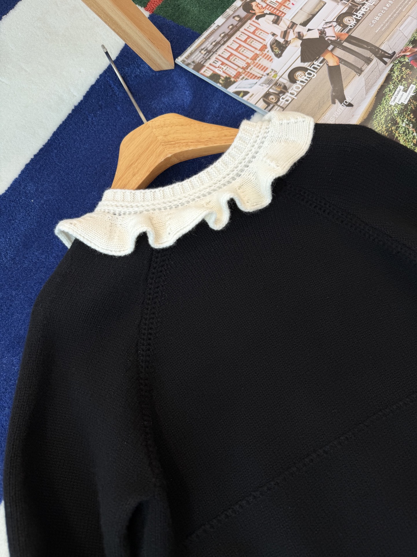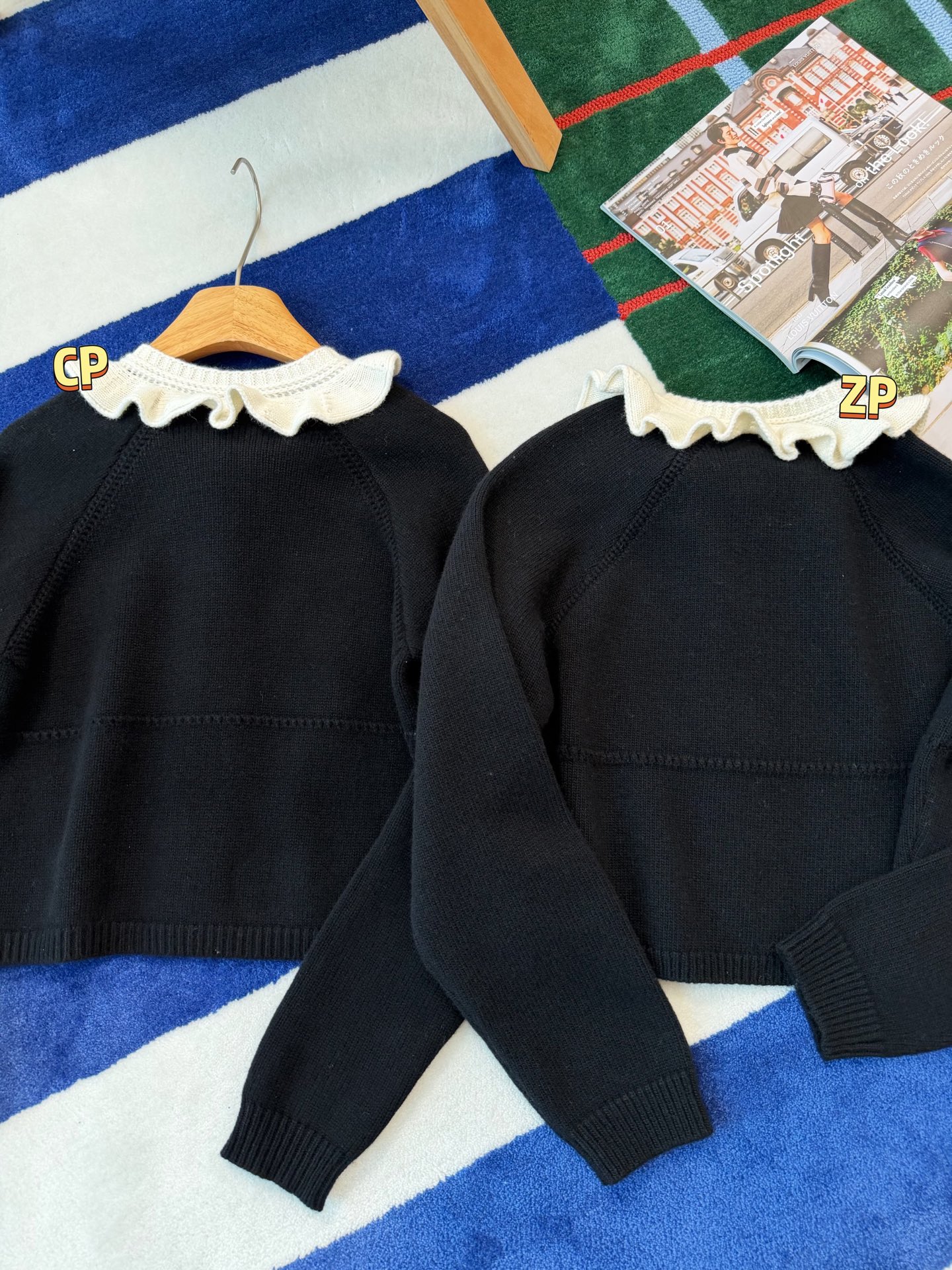 最新款新品🆕 荷叶边衣领针织衫, 以妙趣比例和内敛细节展露摩登风姿〰️胸前镂空字母点缀短款廓形🔜宽幅荷叶边衣领点亮领口,一眼就让人爱上了,休闲而精致的风格萦绕于此款针织打底💫随身版型✨质感真的绝了🉑 极简风格真的很出彩,超高级,特别精致,绝对是你的心头好,不仅温暖,而且时髦指数爆表,别犹豫,赶紧入手吧‼️码数SML