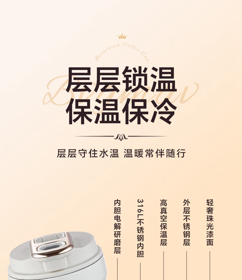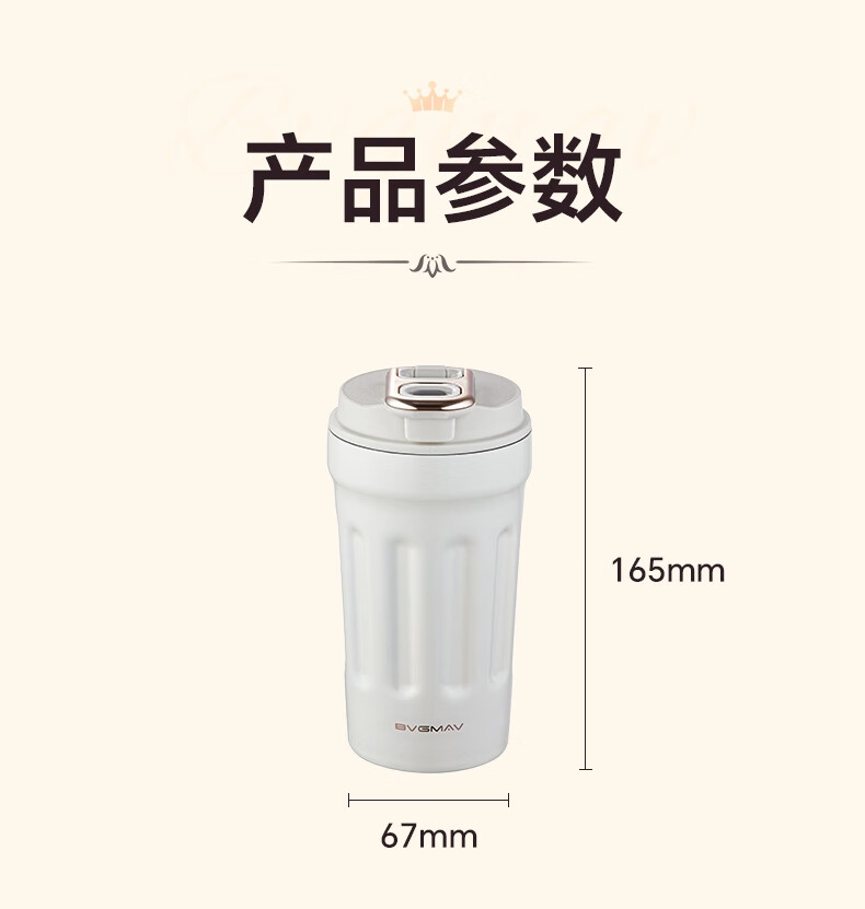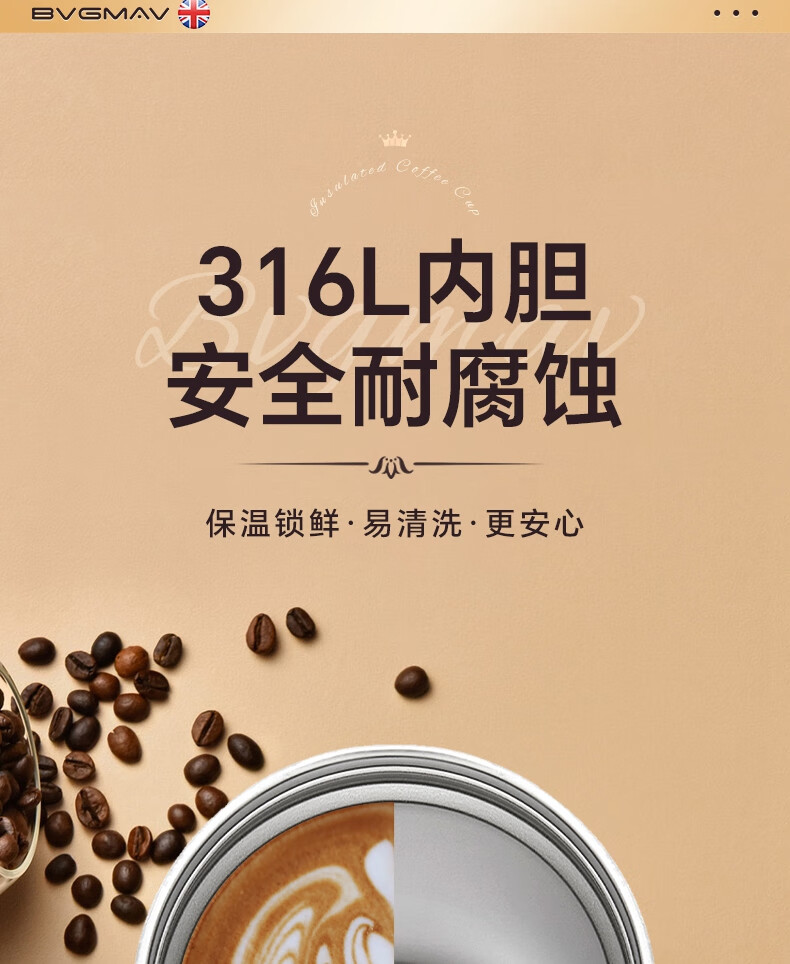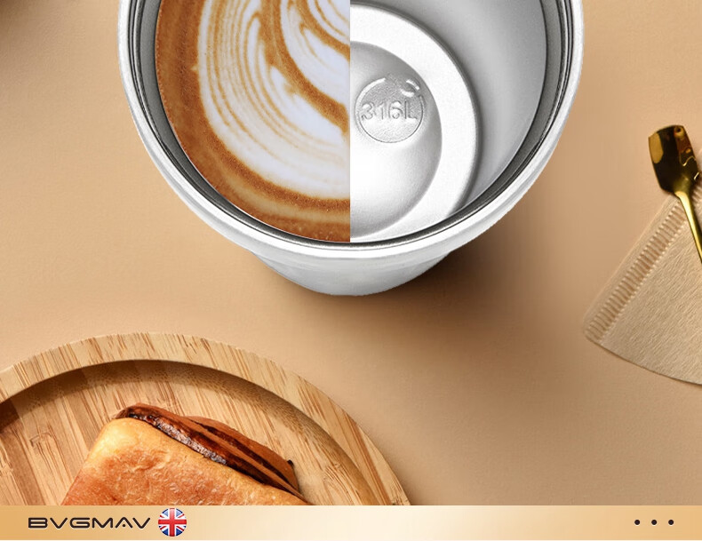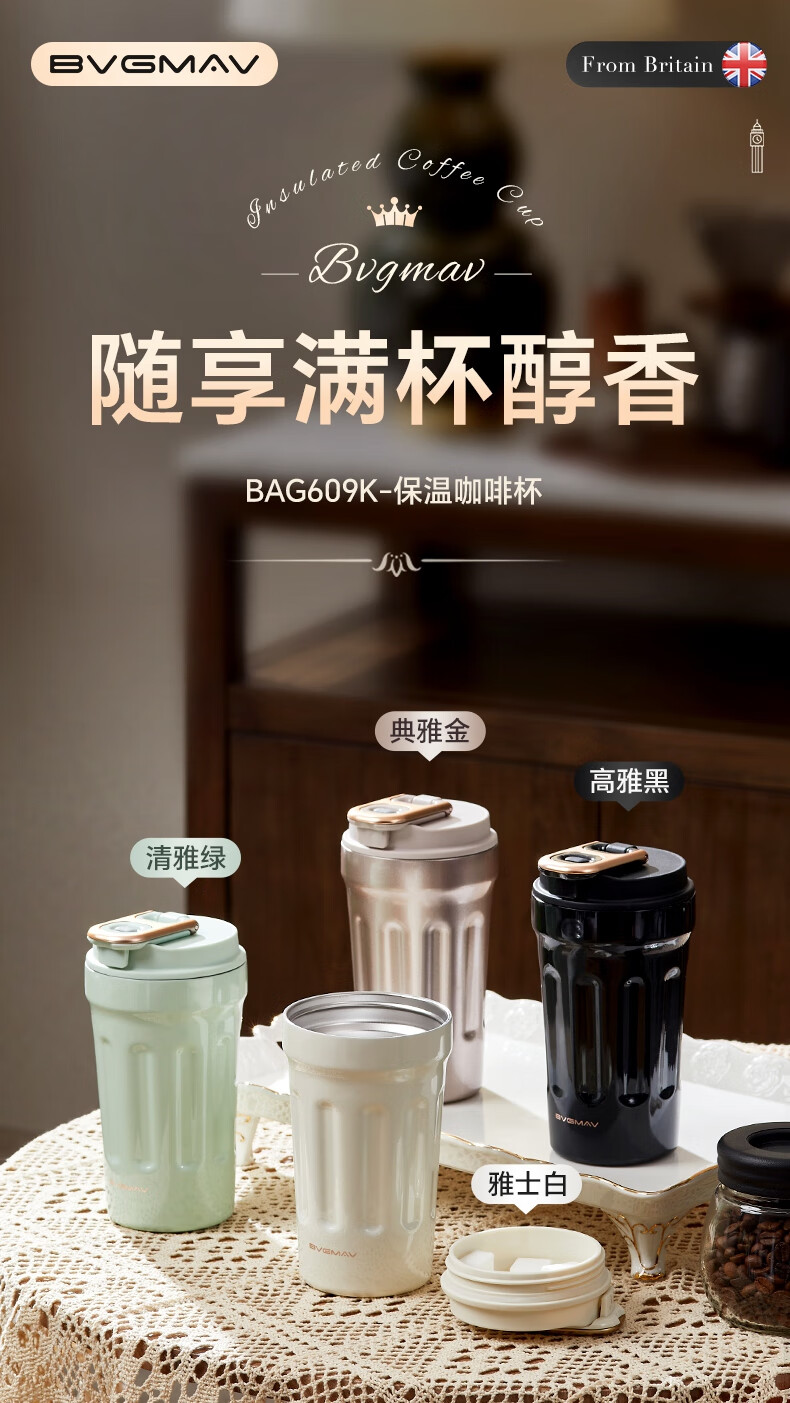 宝威玛(BVGMAV)咖啡杯保温杯英国316L不锈钢高颜值车载便携随行保冷水杯子 BAG609K