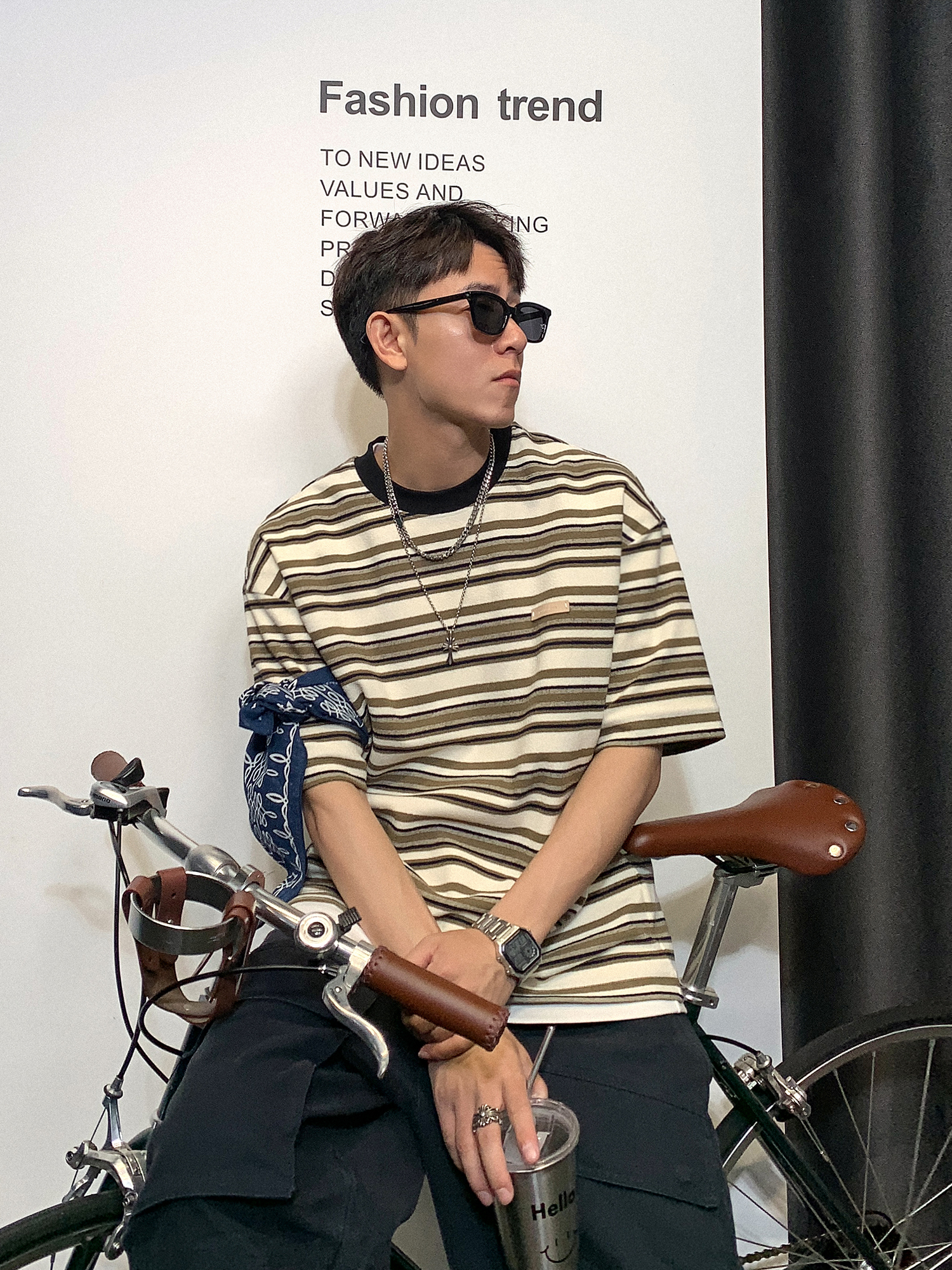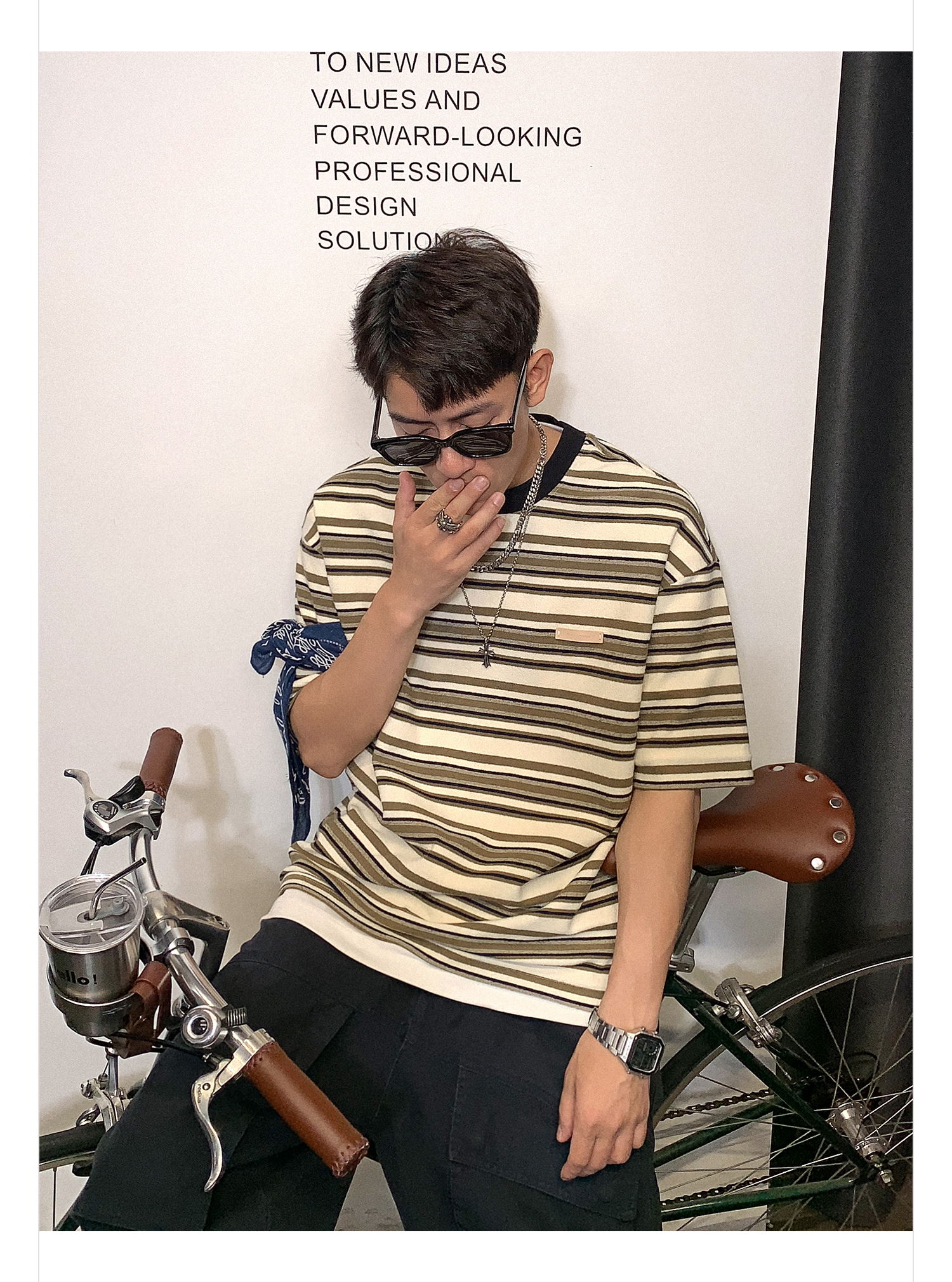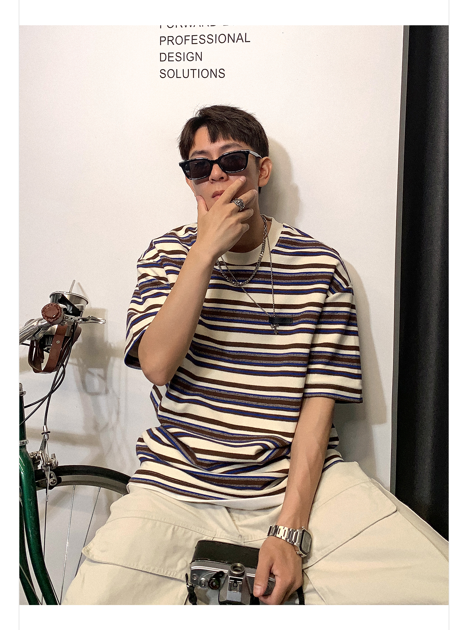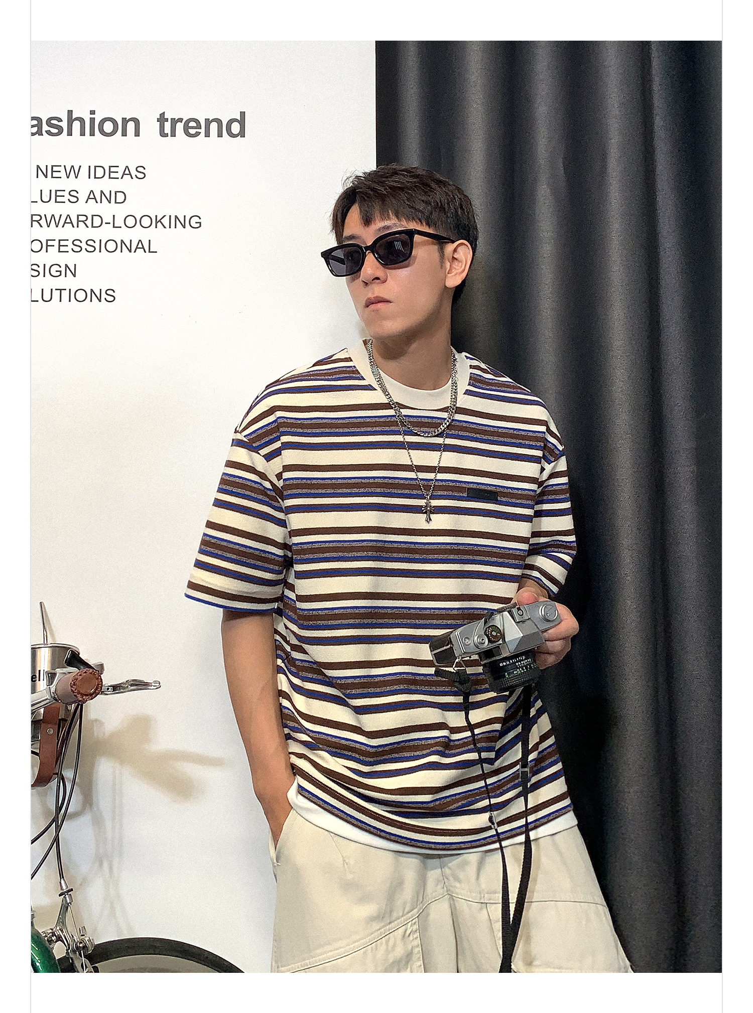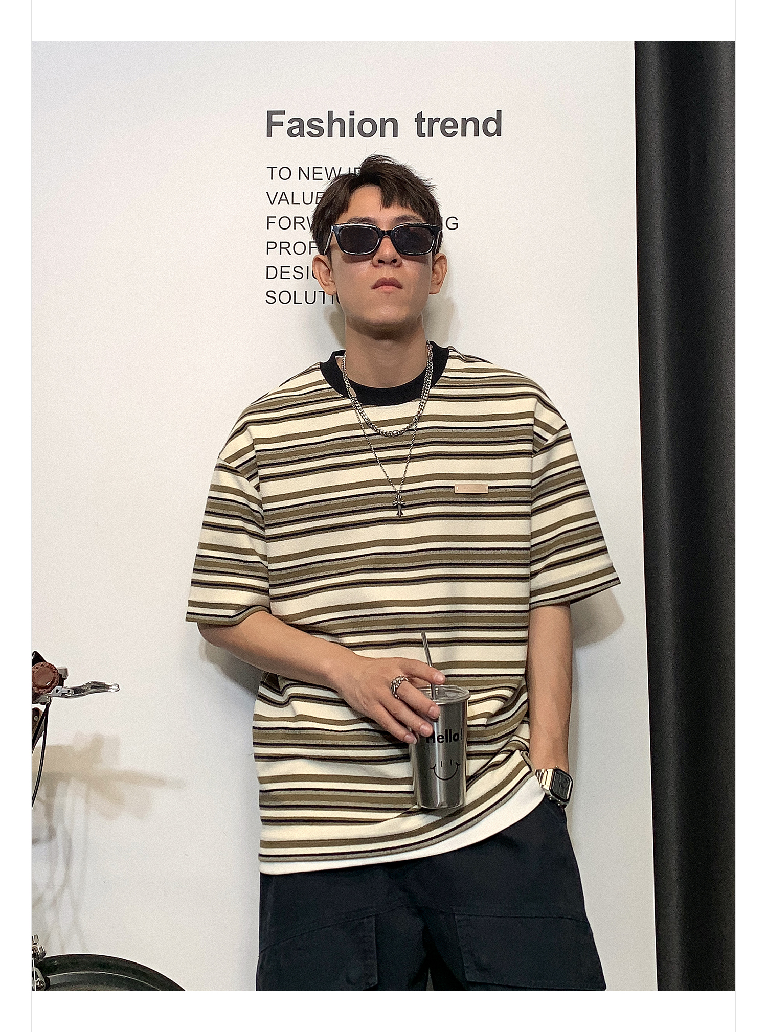 徐太浪美式休闲撞色条纹短袖T恤男夏季新款复古高级感五分袖体恤