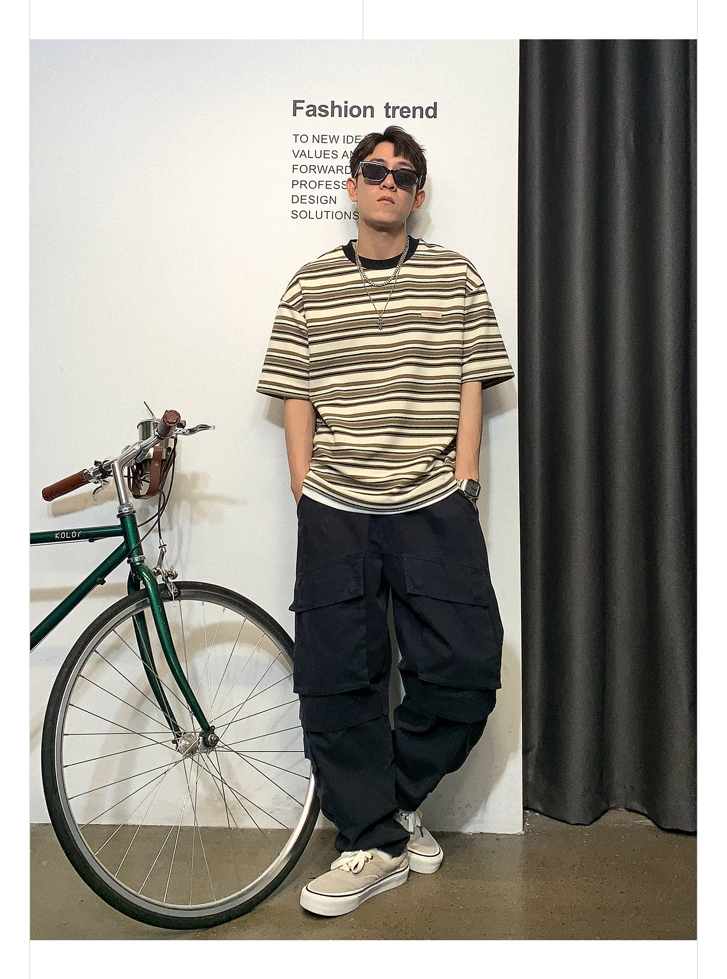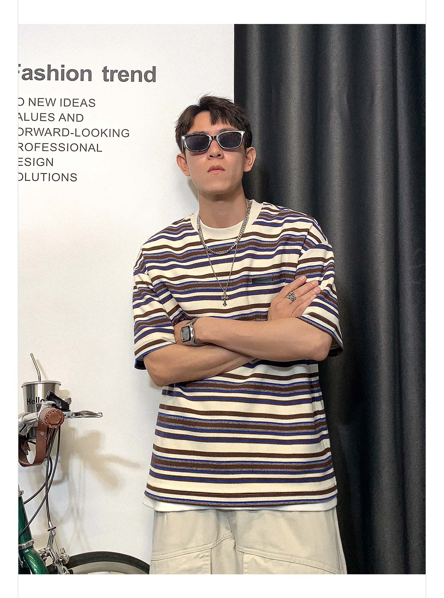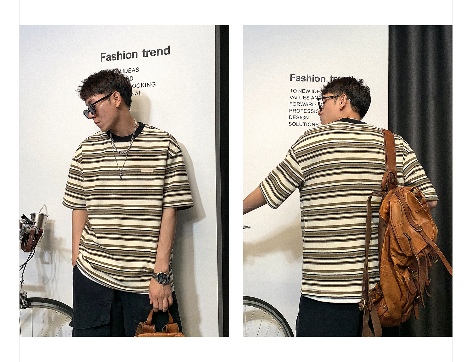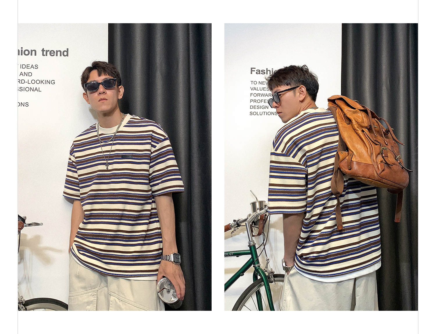 徐太浪美式休闲撞色条纹短袖T恤男夏季新款复古高级感五分袖体恤
