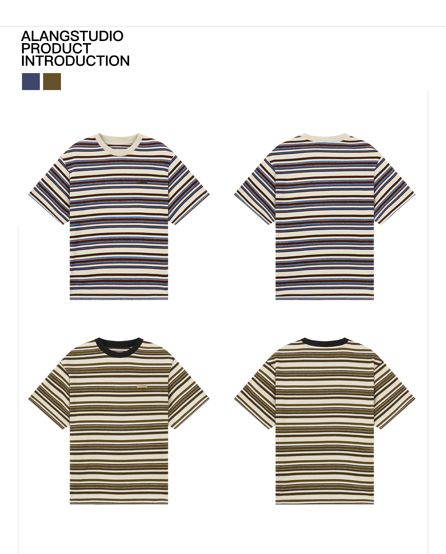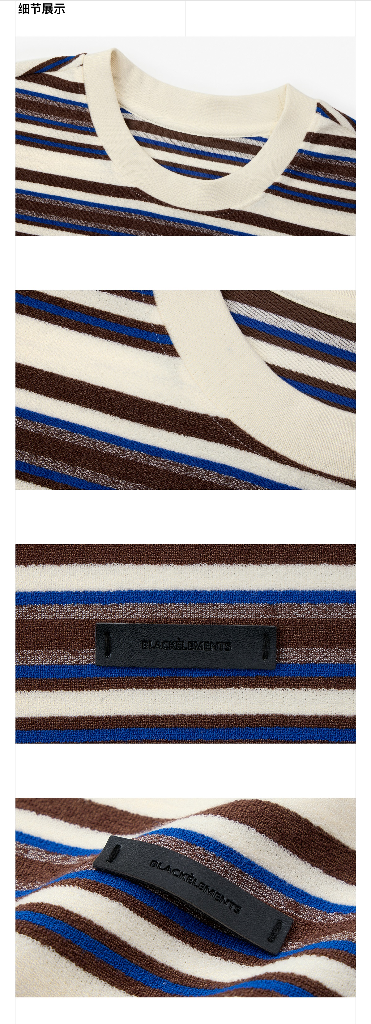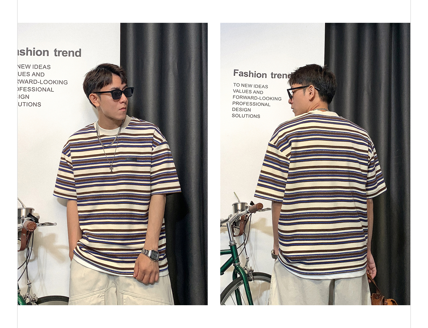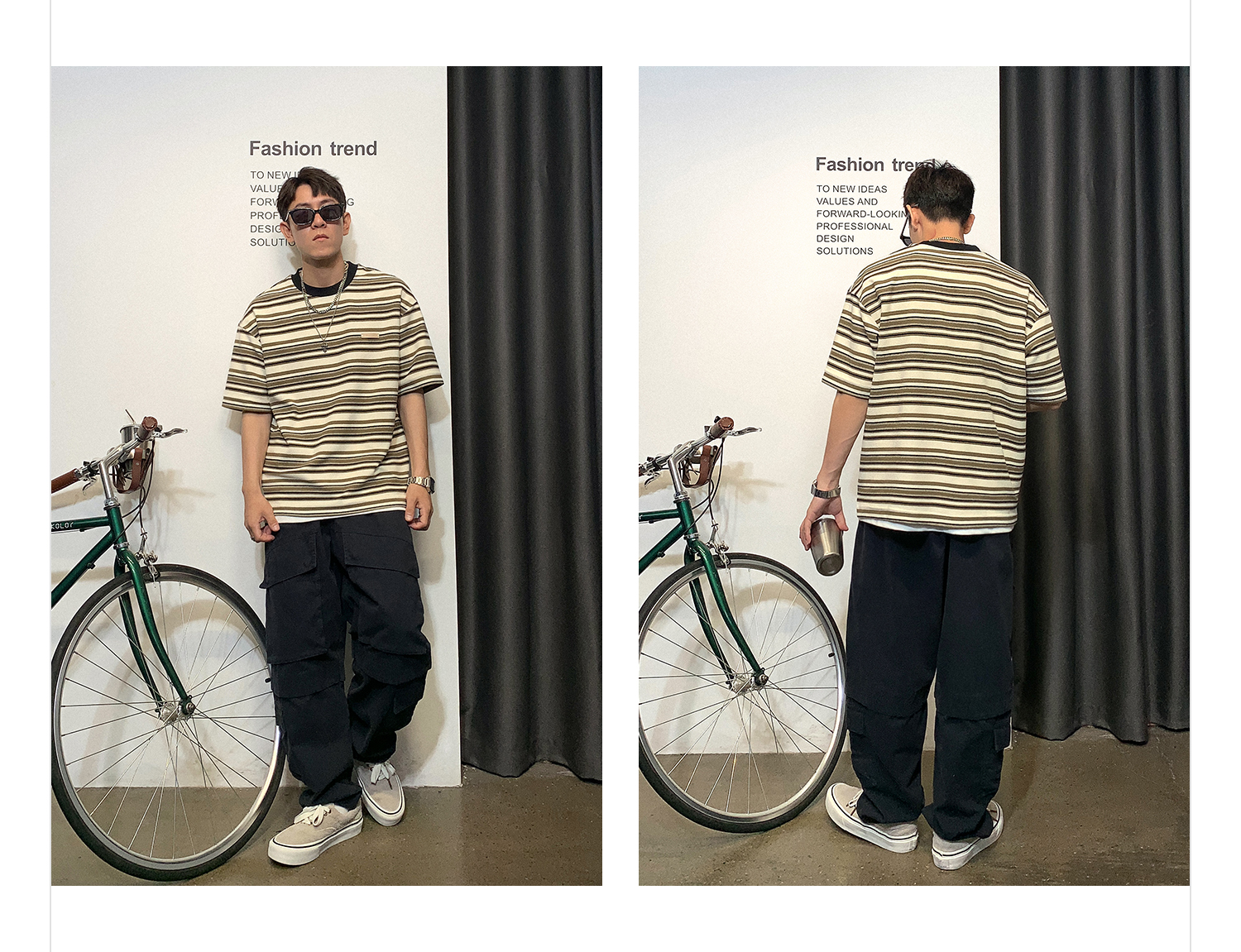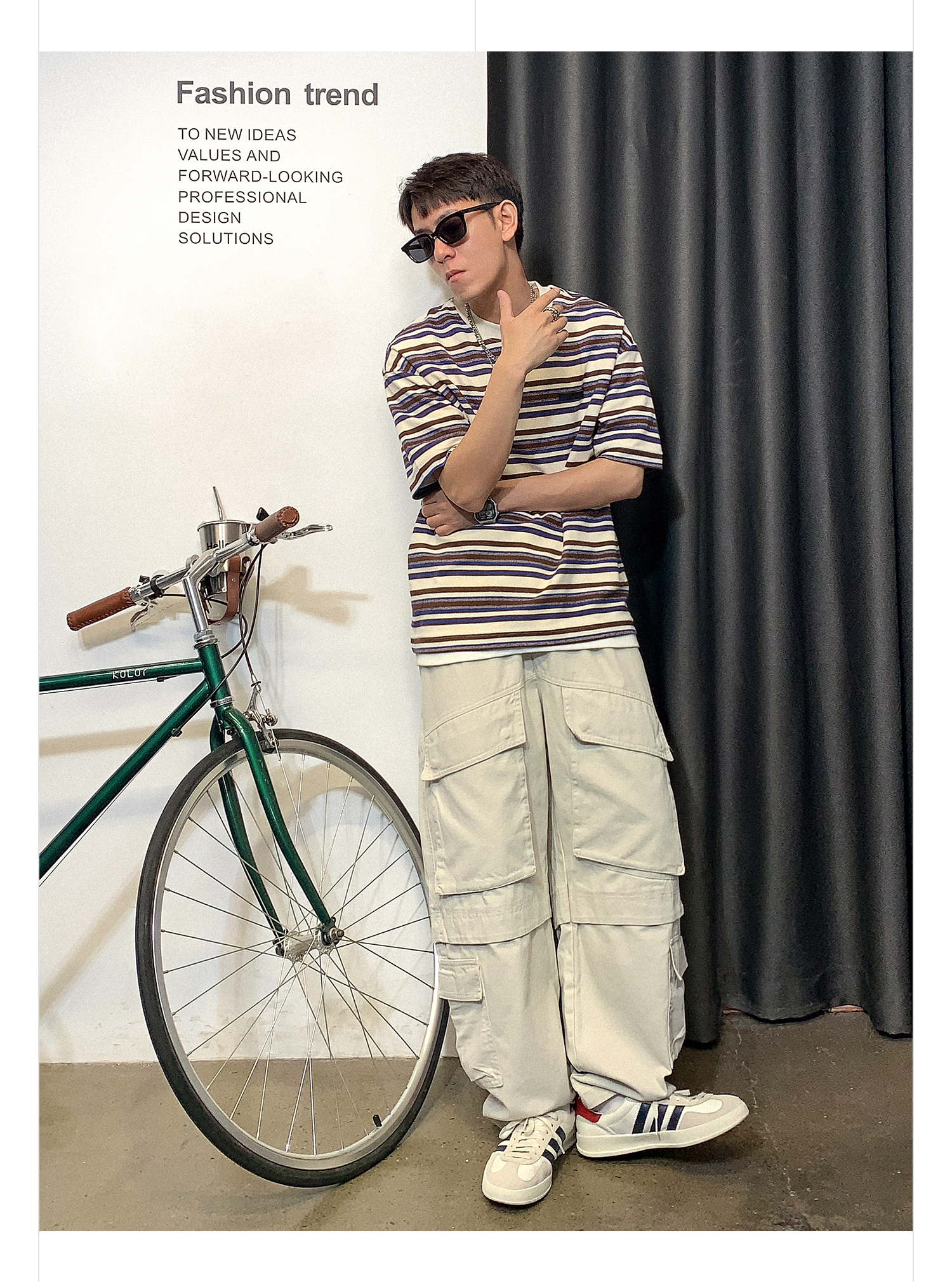 徐太浪美式休闲撞色条纹短袖T恤男夏季新款复古高级感五分袖体恤