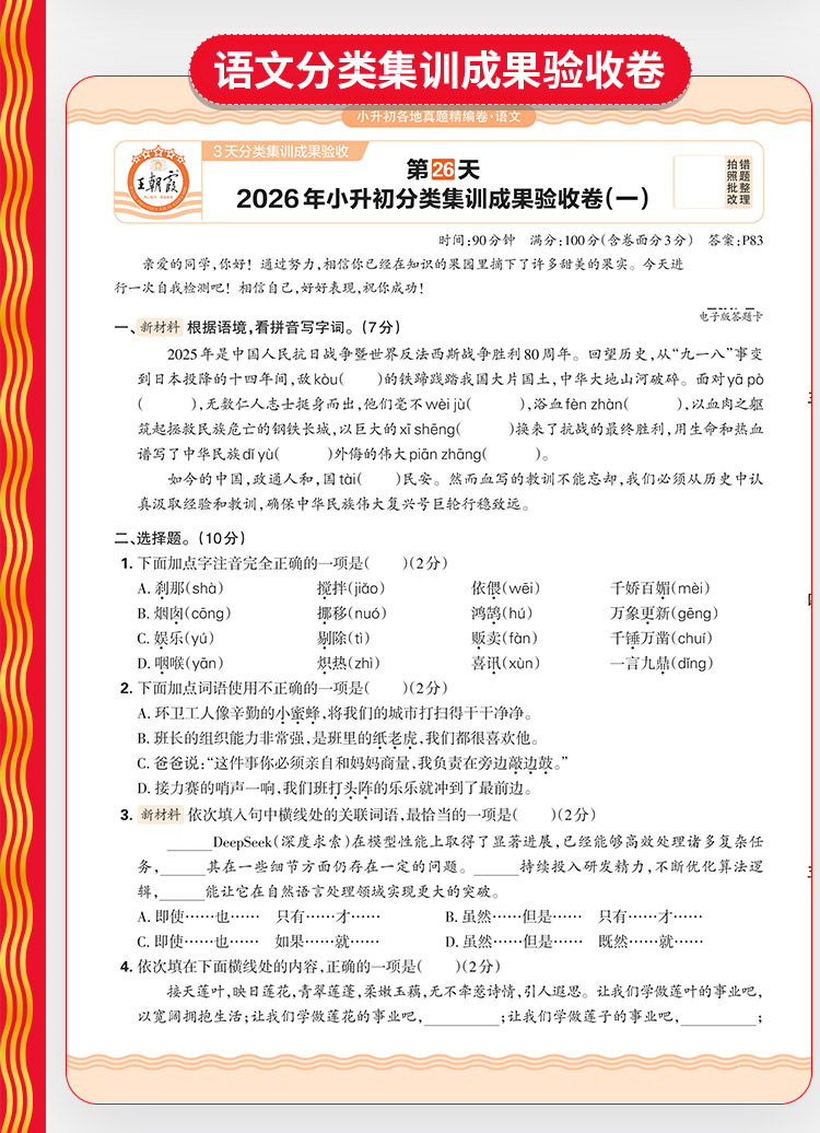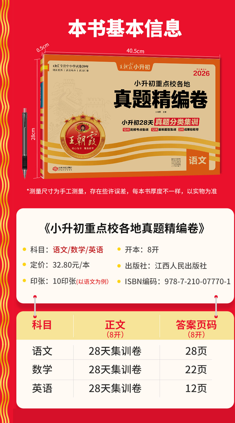 2026新王朝霞小升初五年真题试卷超详解语数英五六年级试卷通用招生考试真题