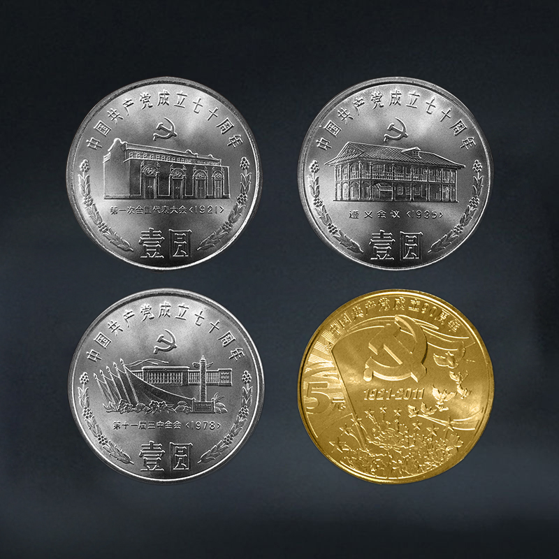 建党纪念币4枚 含建党70年3枚、建党90年1枚