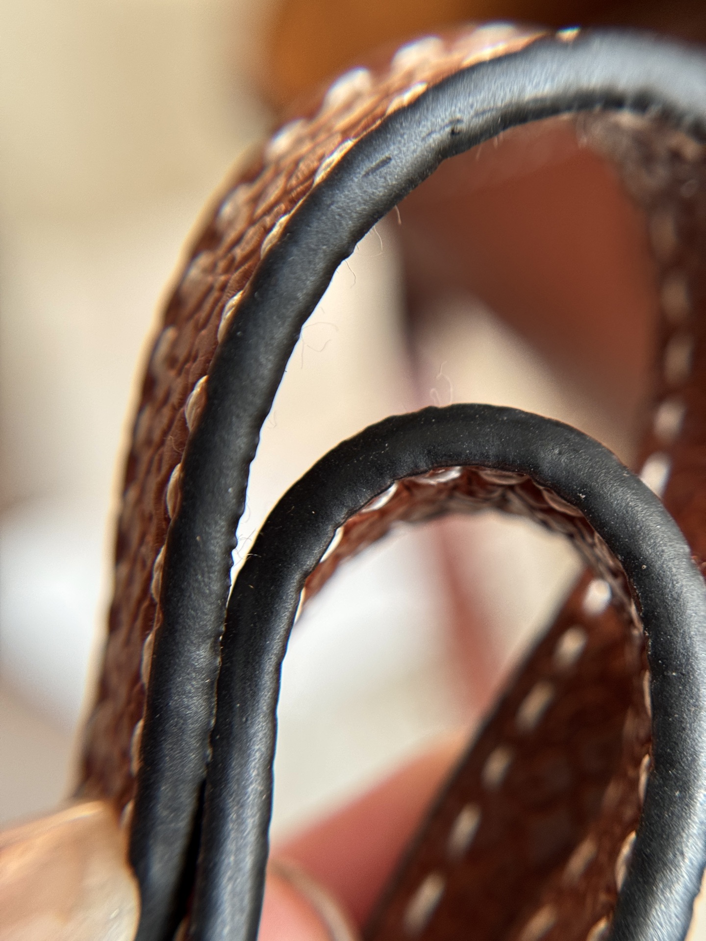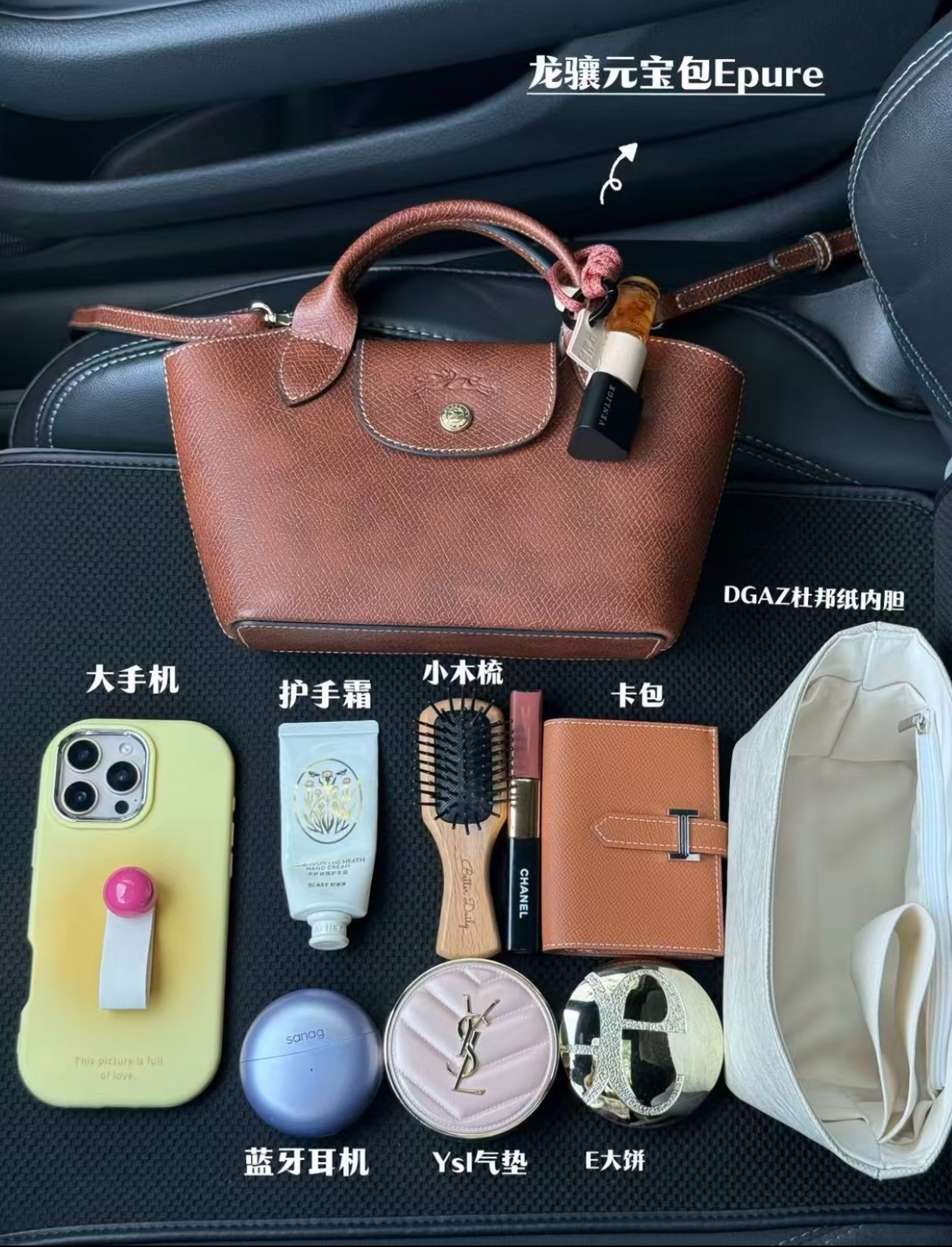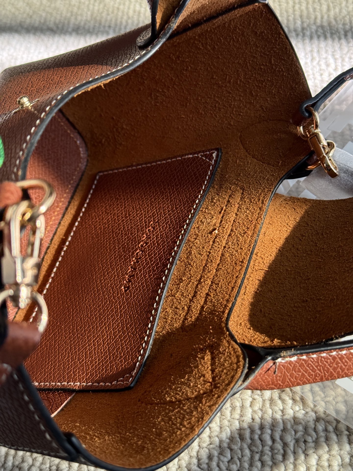 内里隔层👇 底部都是原皮料! 隔层logo凹凸压印清晰可见 细节不含糊!! 容量也足够