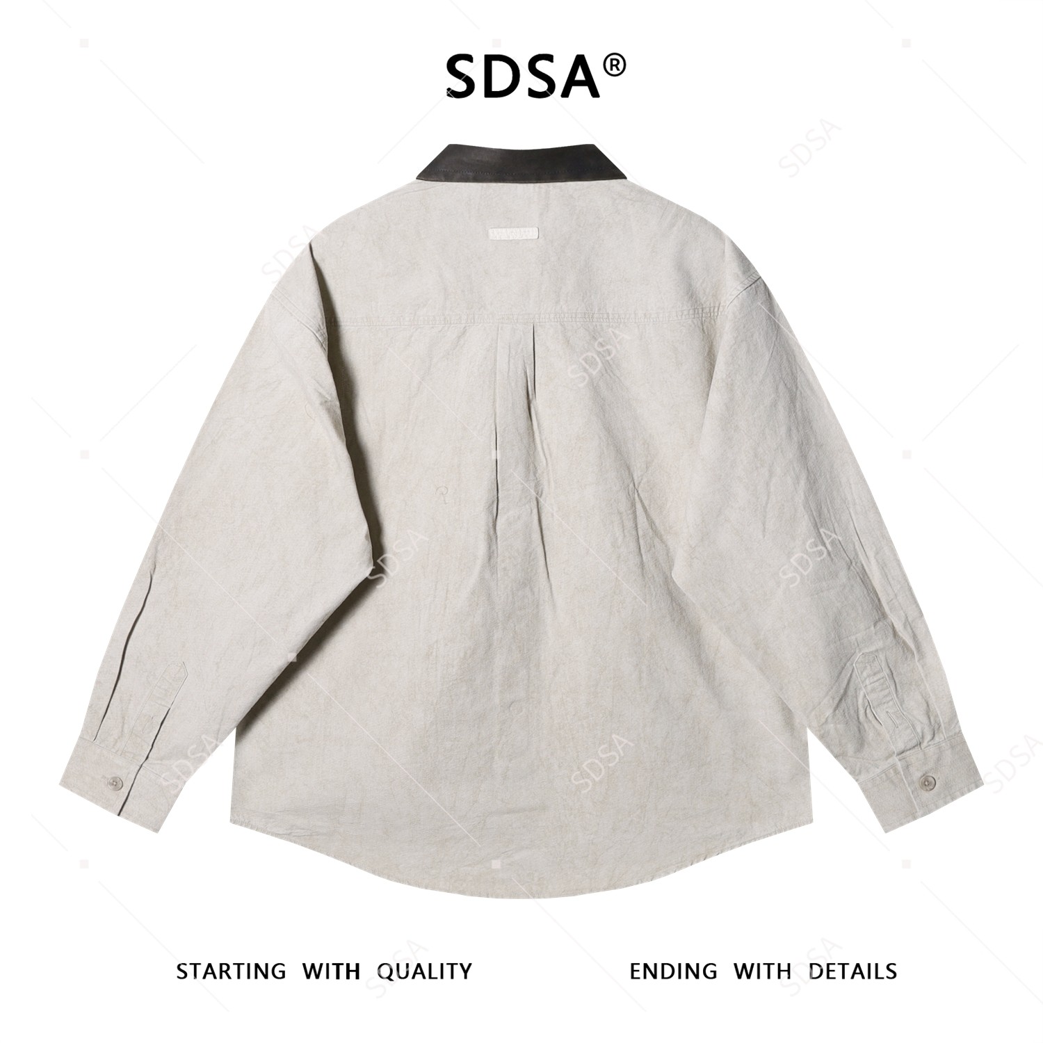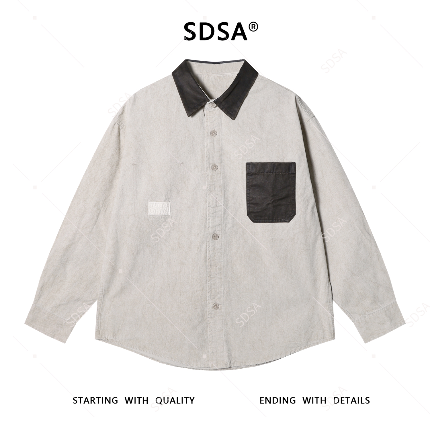 SDSA男士秋冬新款痞帅男装美式撞色口袋纽扣翻领长袖衬衫百搭宽松