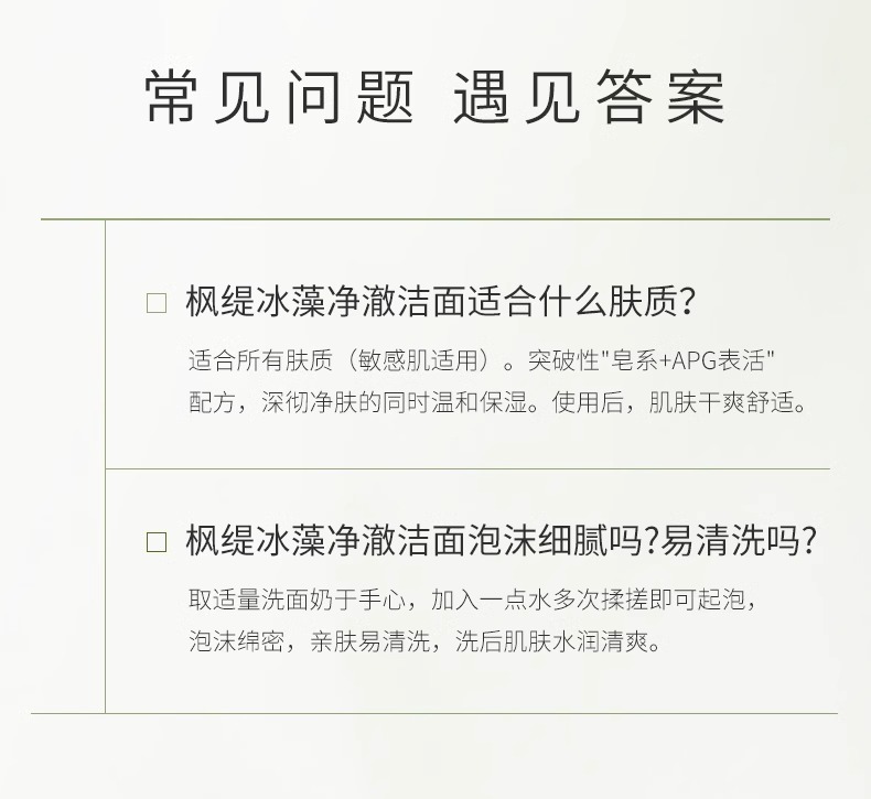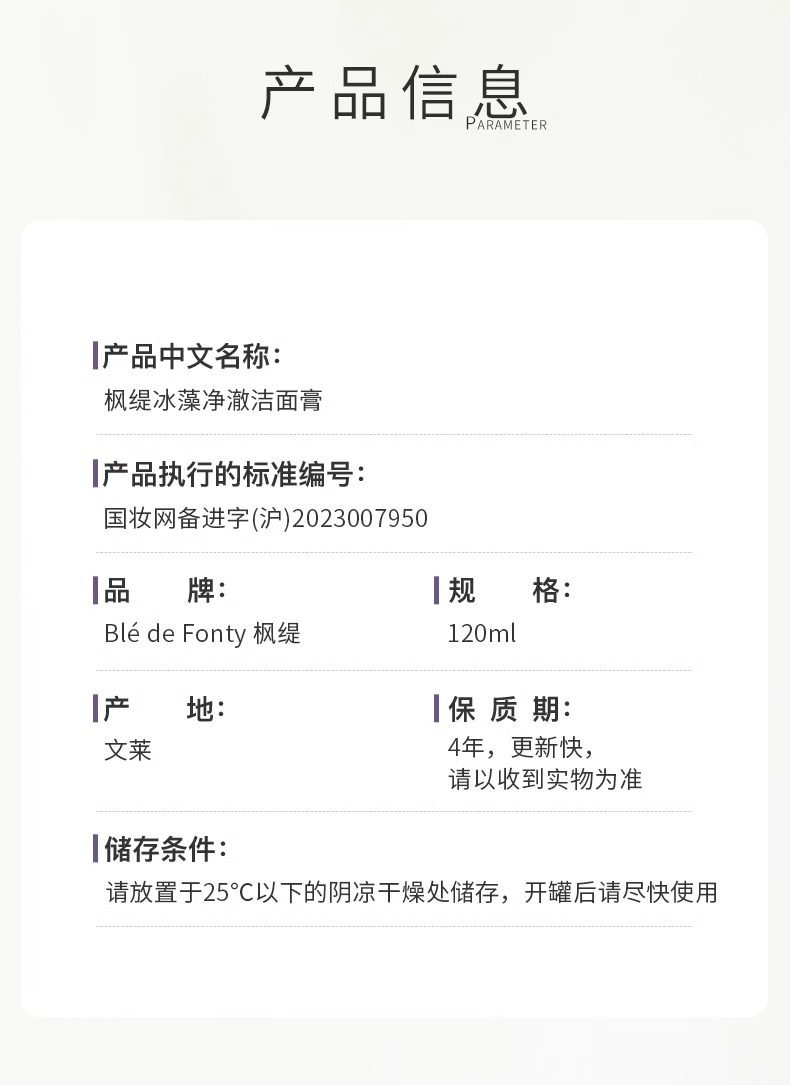 枫缇冰藻净澈洁面膏CPEs小球藻洗面奶清洁保湿120ml