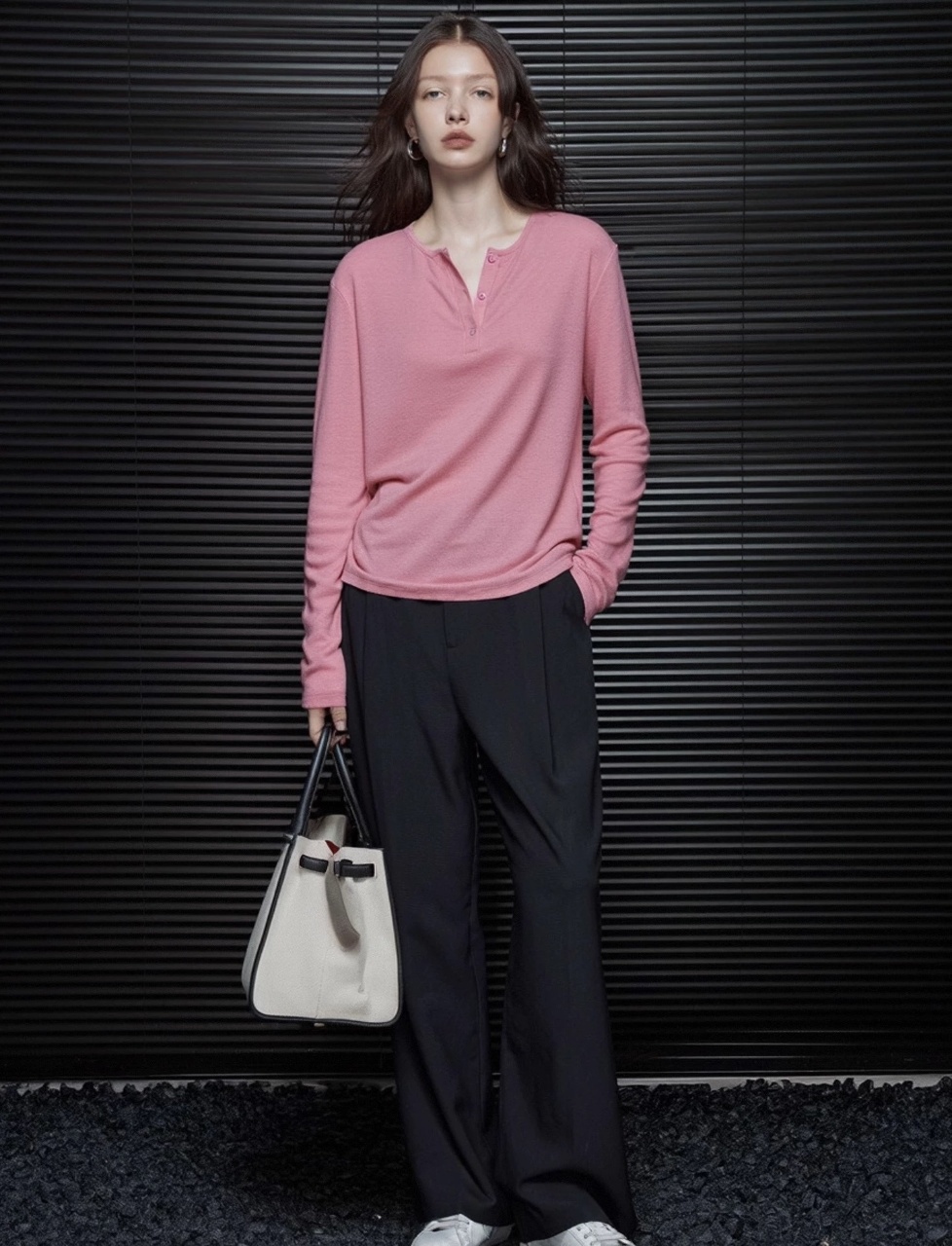 isabelle marran伊莎贝尔优可丝早秋树莓粉气质针织衫JS3692836