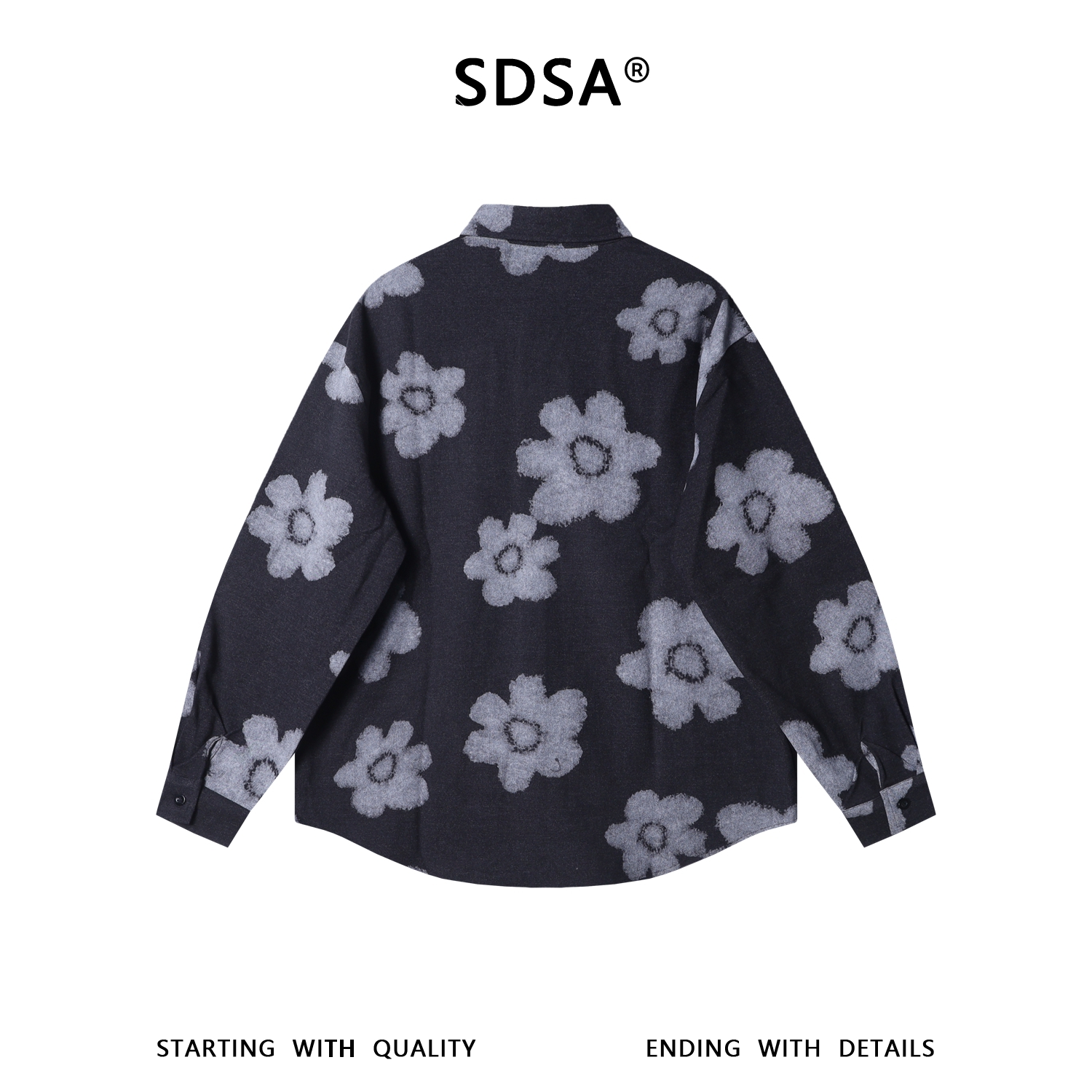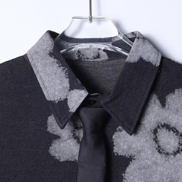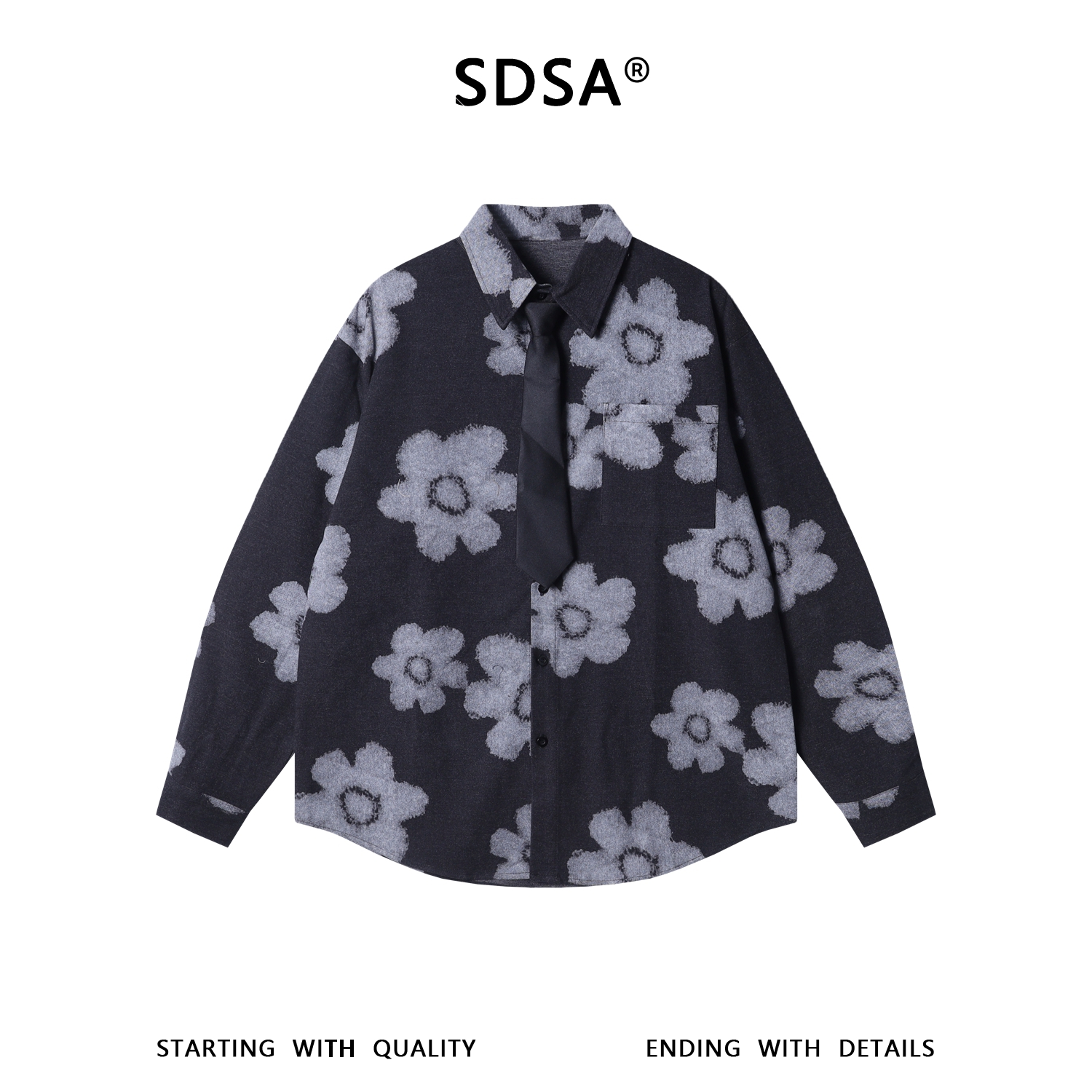 2741SDSA男士秋冬新款痞帅男装潮牌撞色花朵印花翻领领带衬衫百搭时尚
