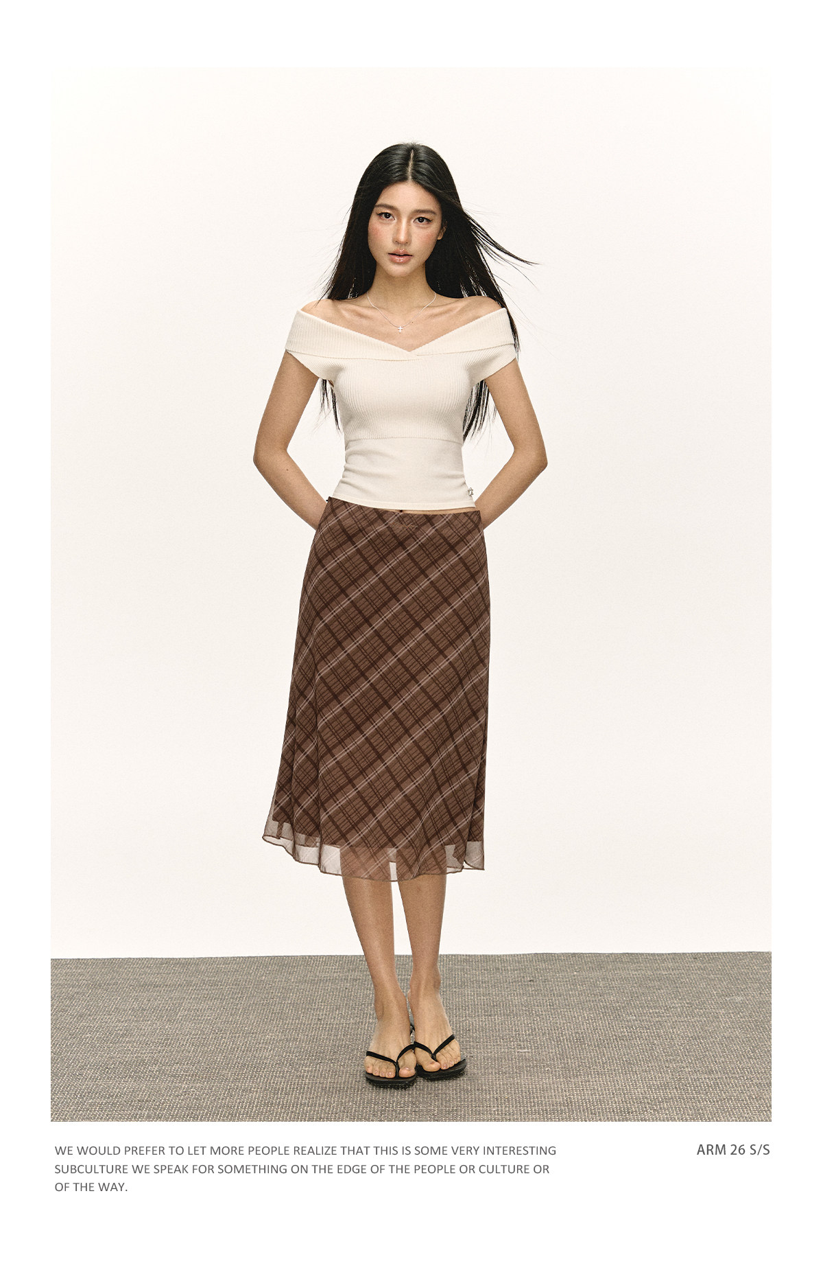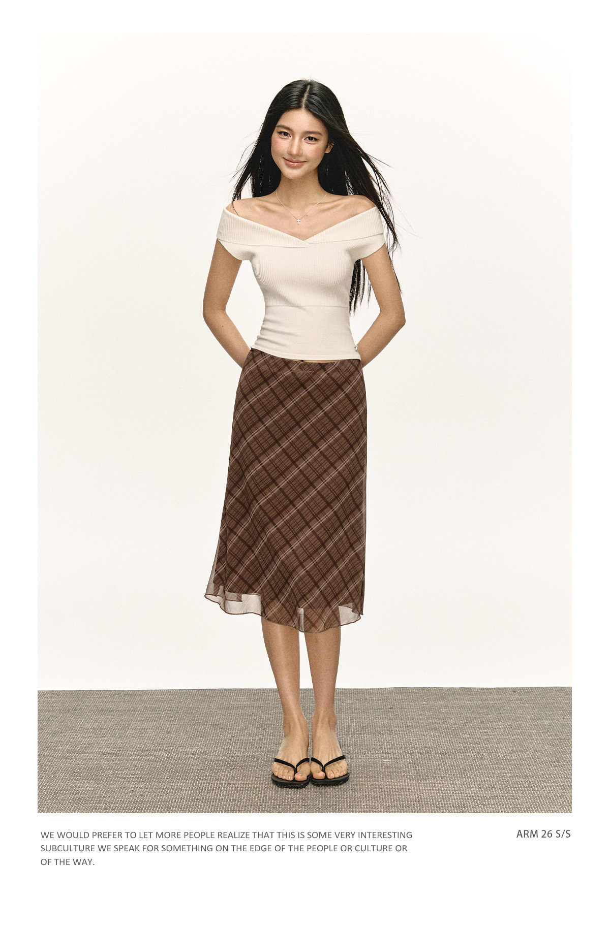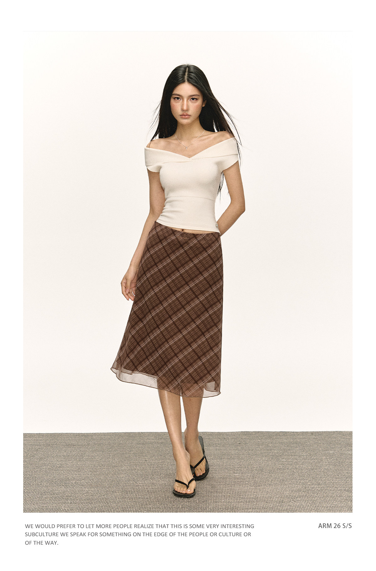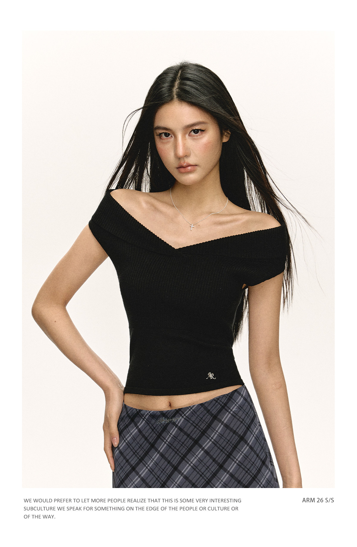 Ariseism美式复古高级感一字肩长袖针织衫女春季新款内搭打底上衣