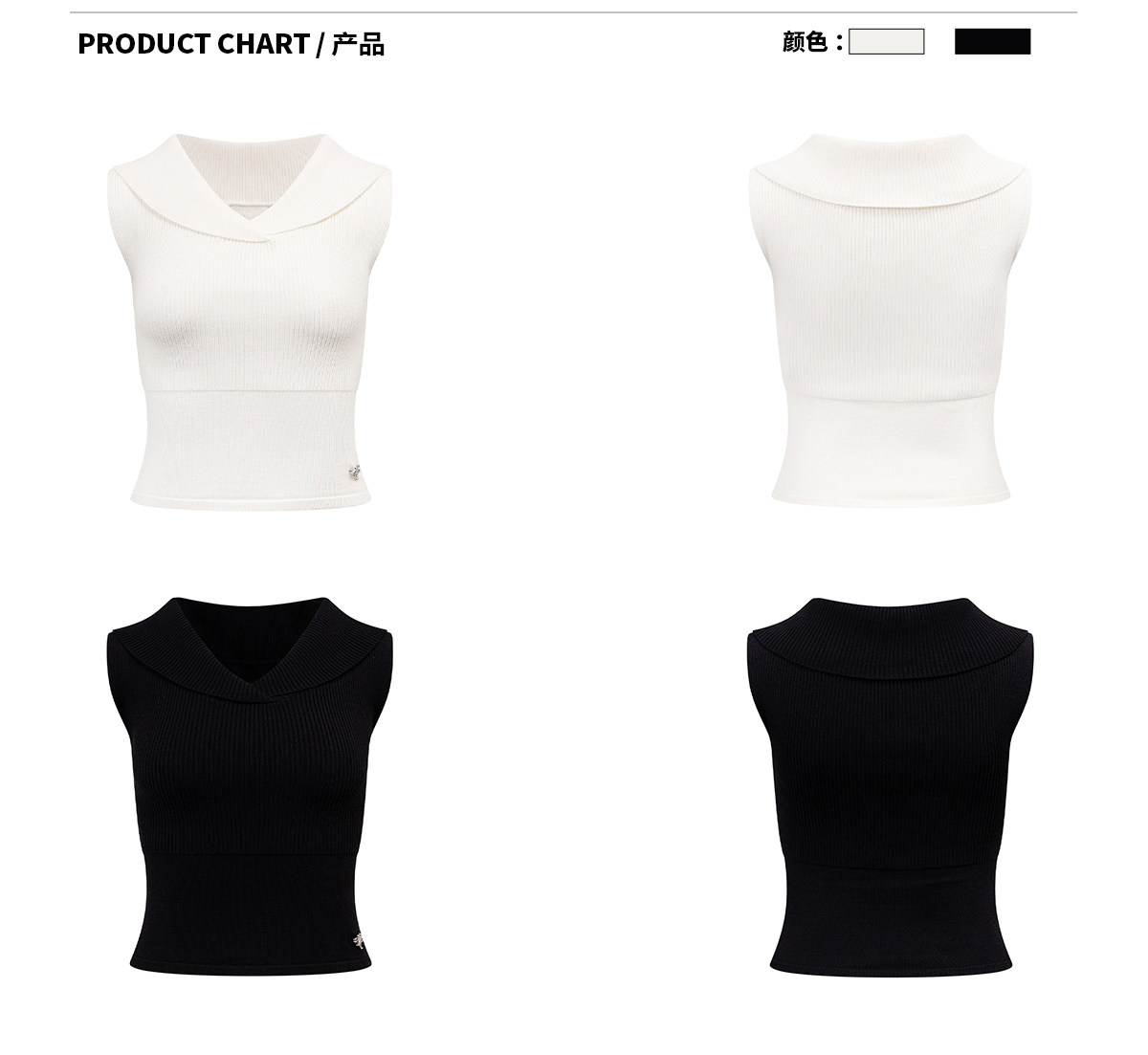 Ariseism 美式复古交叉领一字肩白色针织背心女夏季新款