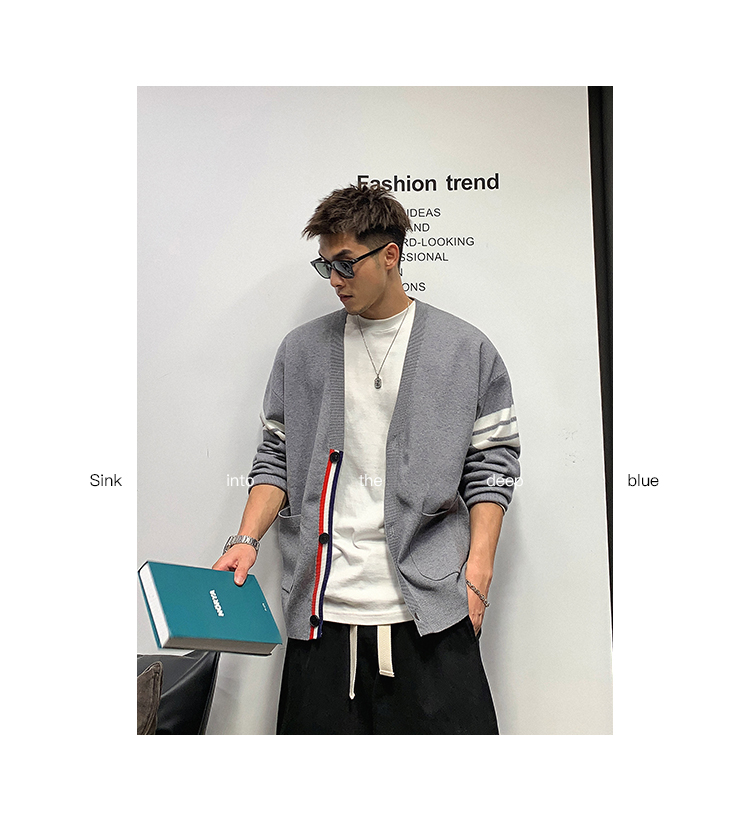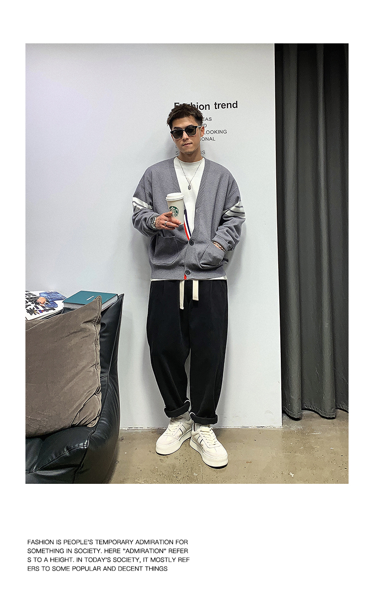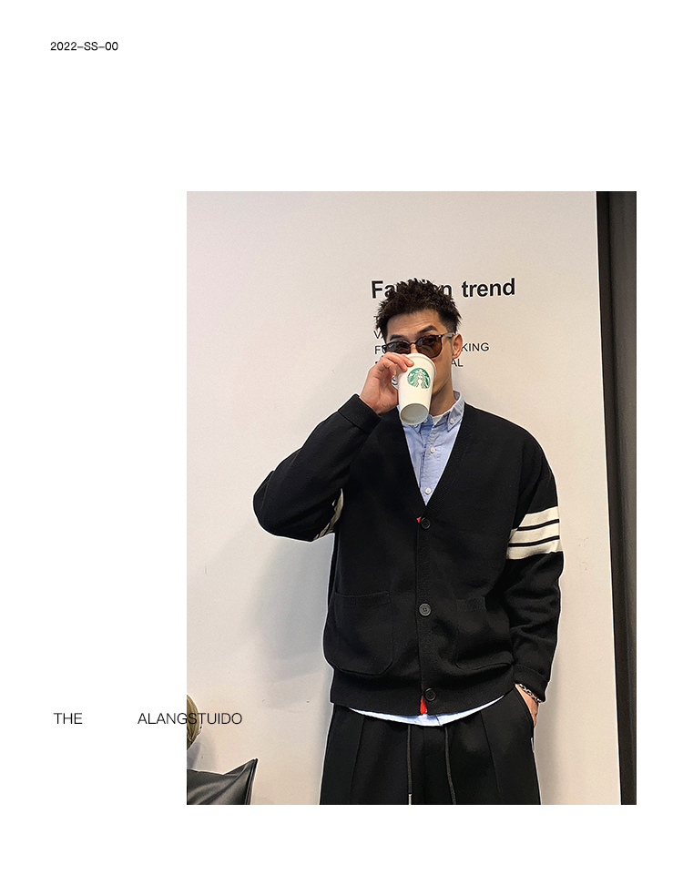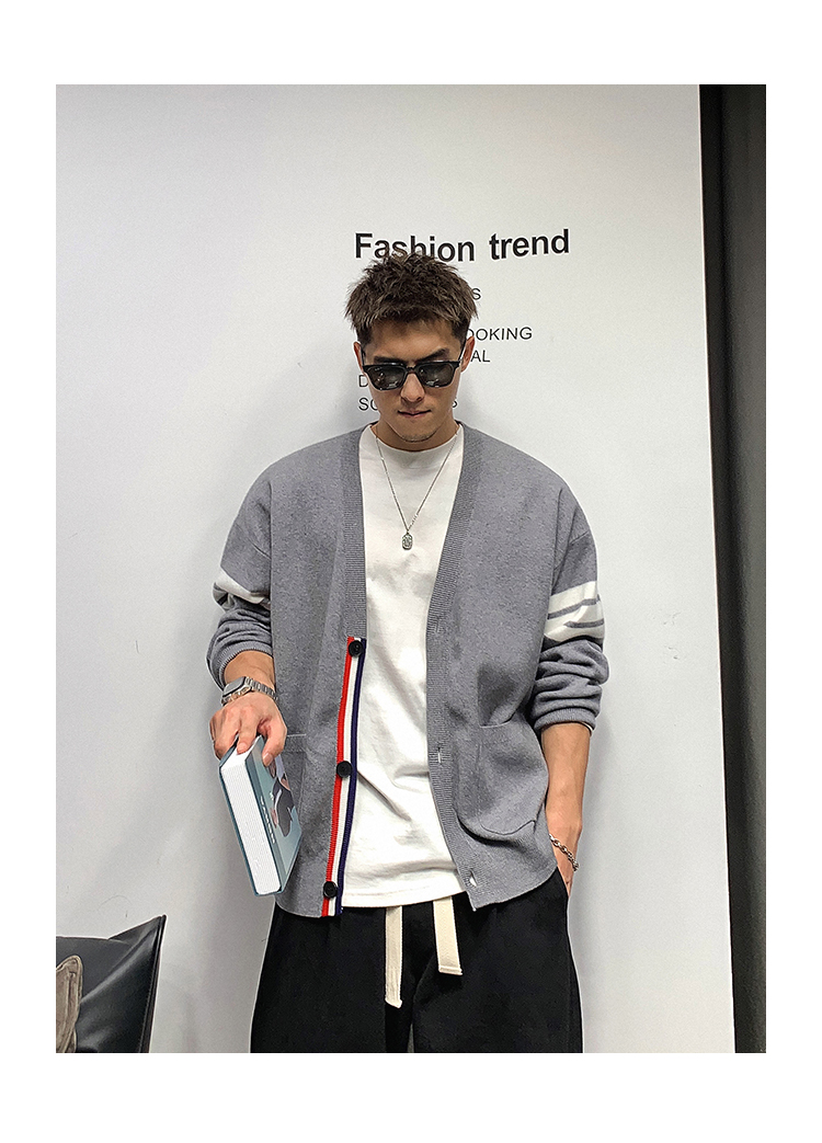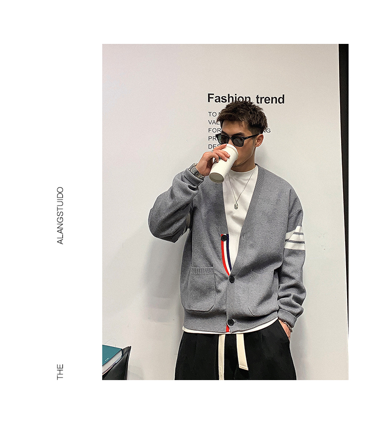 徐太浪复古V领针织开衫外套男春秋薄款潮牌高级感慵懒风休闲毛衣