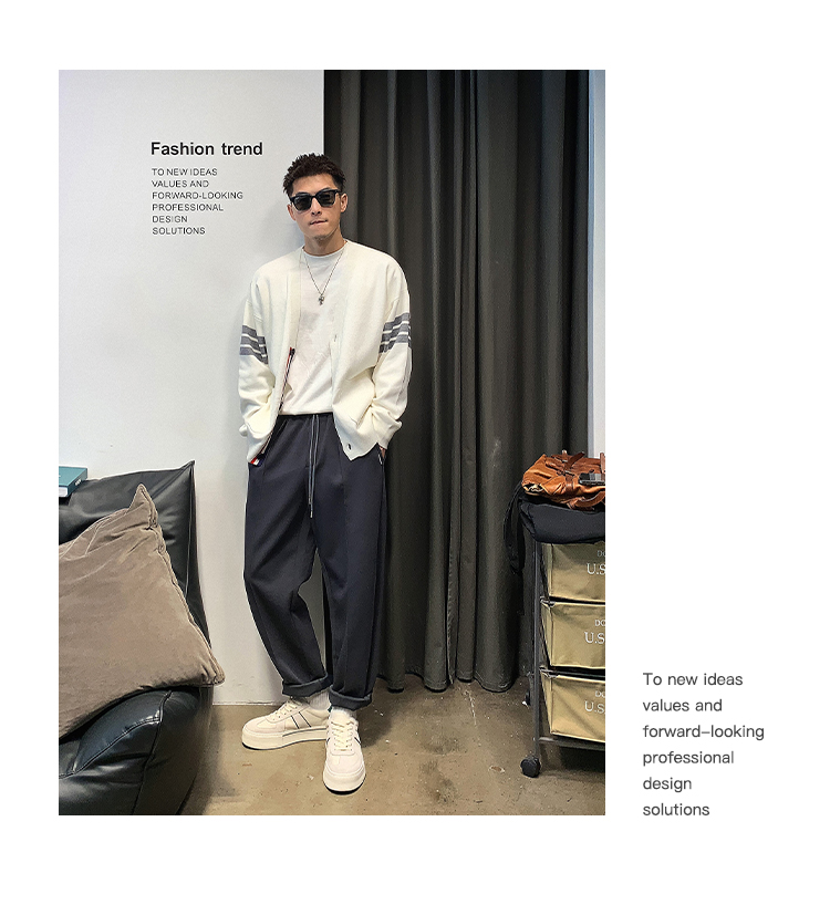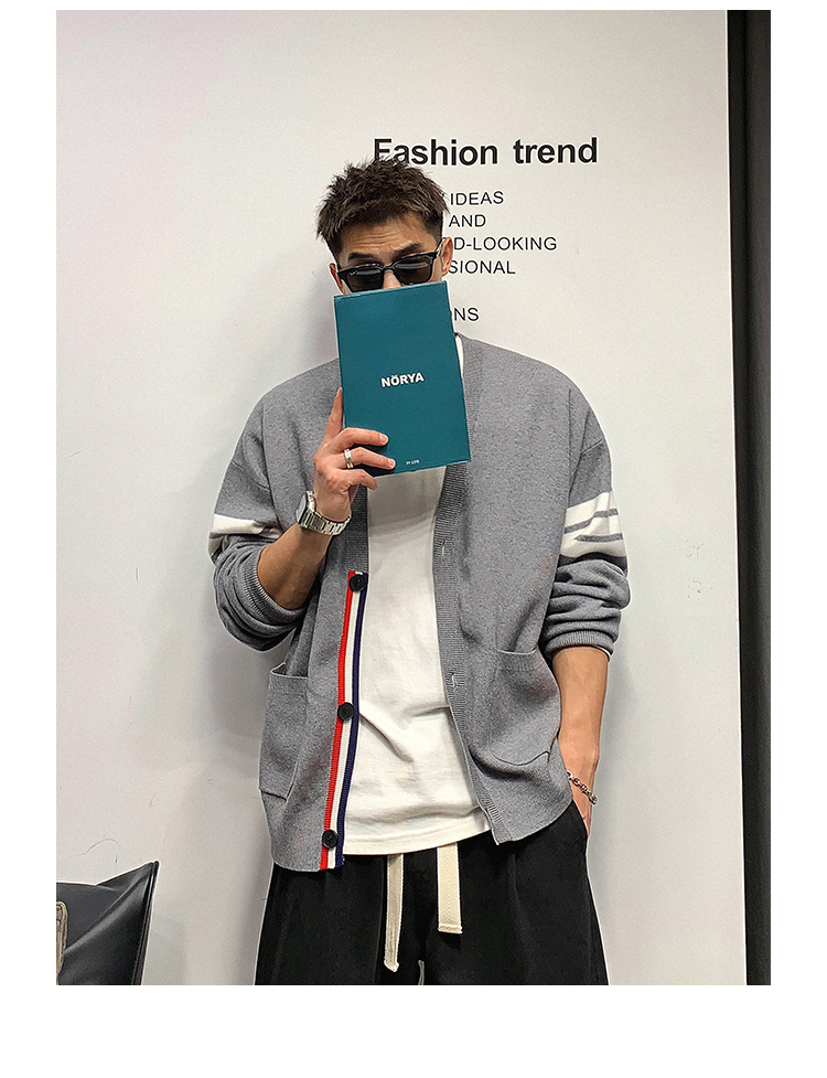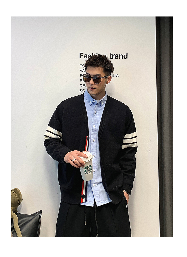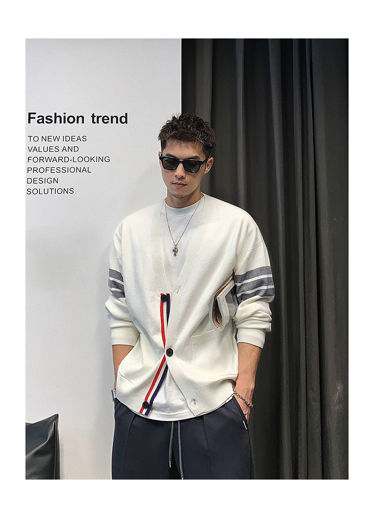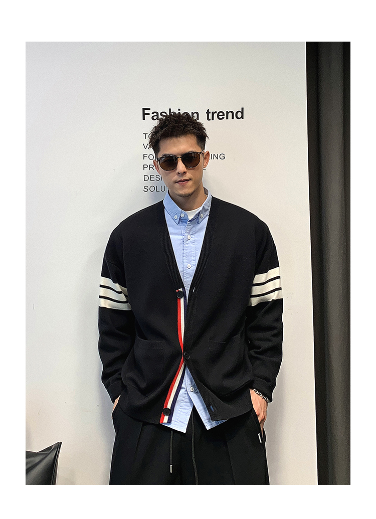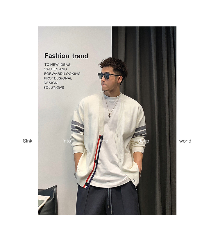 徐太浪复古V领针织开衫外套男春秋薄款潮牌高级感慵懒风休闲毛衣