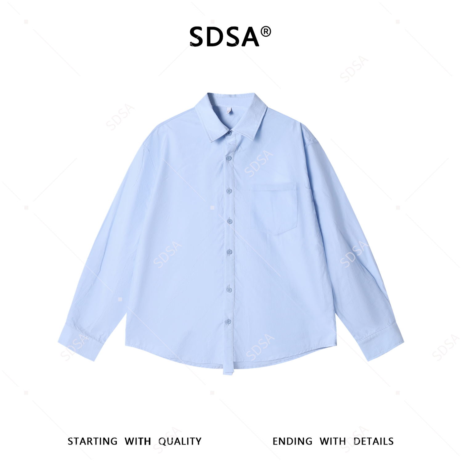 SDSA男装2026新款高贵轻奢韩版简约纯色翻领长袖衬衫百搭商务衬衣