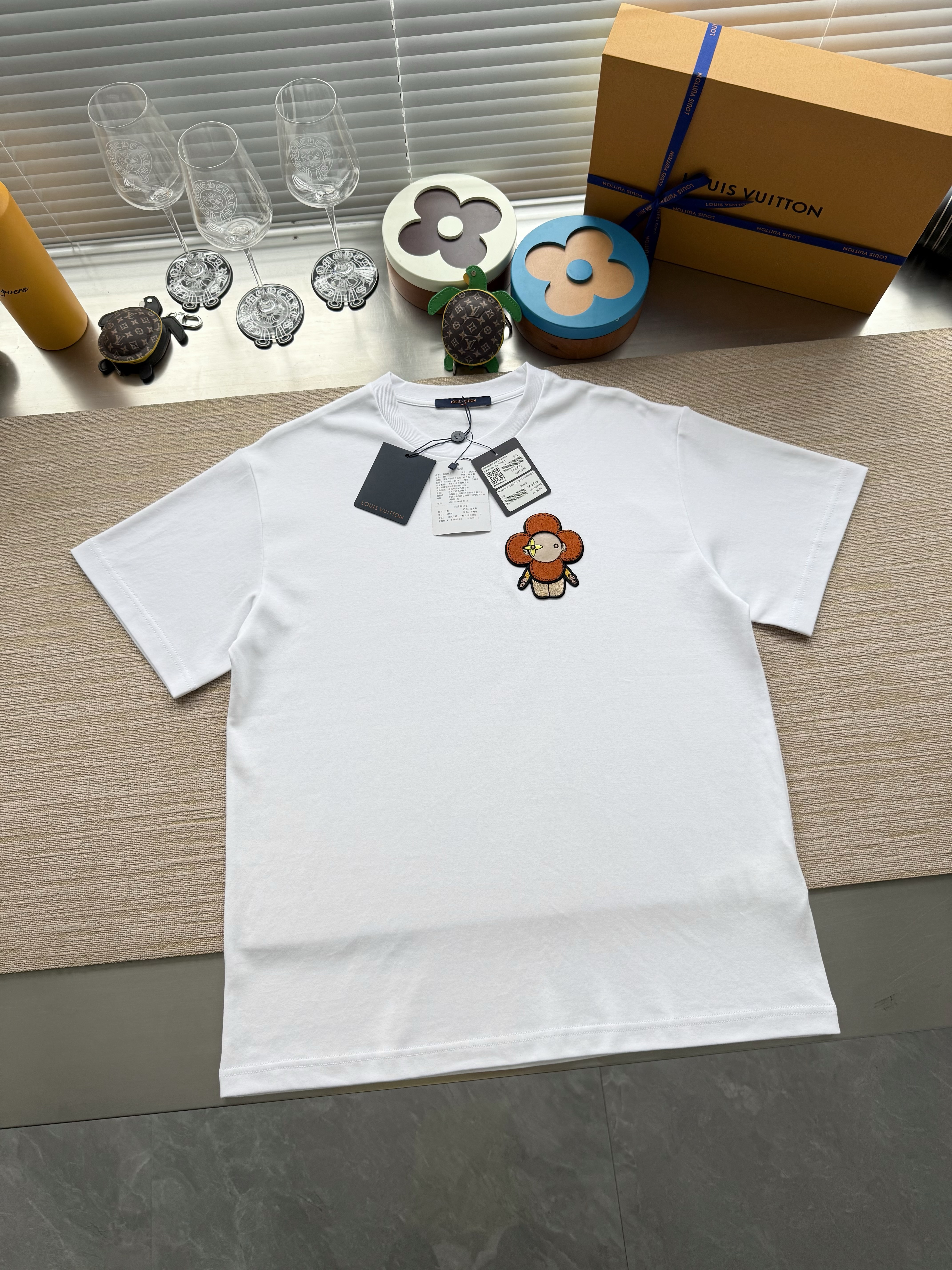 Louis Vuitton25ss牙刷绣图案短袖T恤‼️整件衣服7050购买ZP拆解打造,采用定制白色面料,做到100%全棉进口纱线,意大利制造,胸前饰以牙刷秀字母标识图案,定织标志性罗纹领口,超紧密度局部编织,真正做到1:1copy 码数:XS S M L