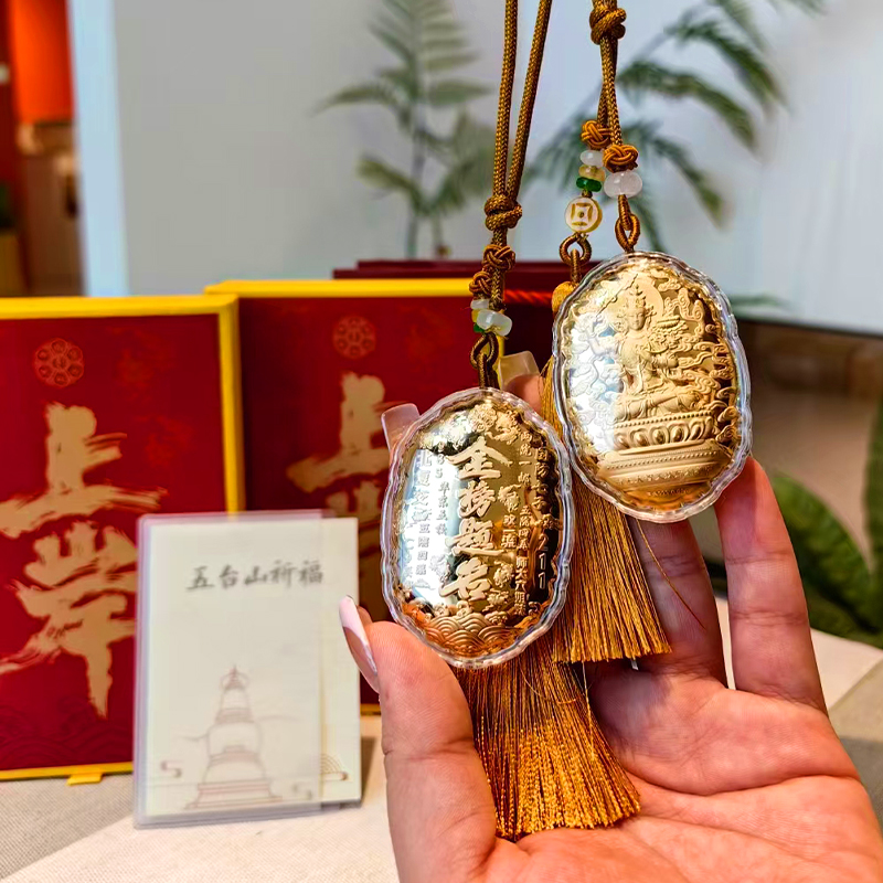 五台山文殊菩萨金榜题名挂件 寓意上岸 含金0.02克