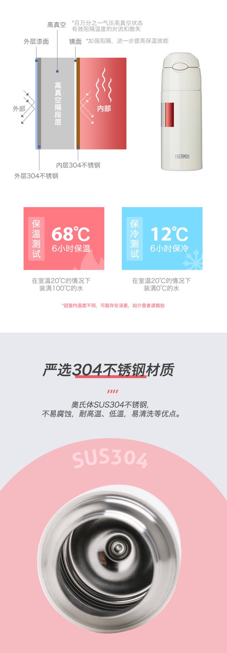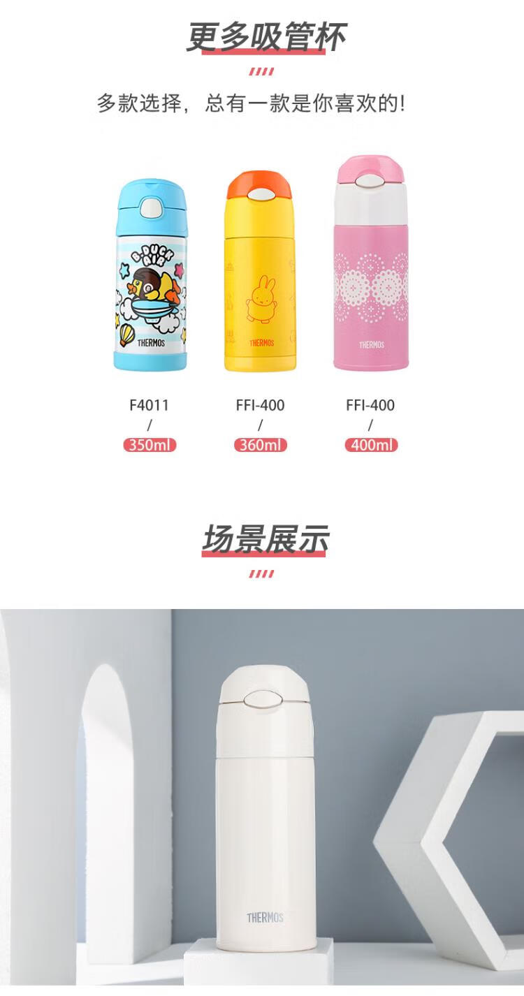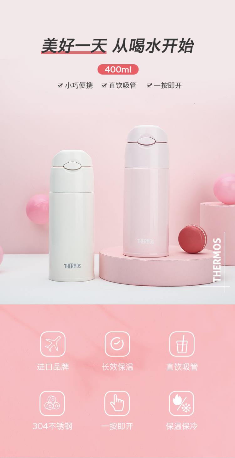 膳魔师(THERMOS) 膳魔师不锈钢保温吸管杯成人孕妇产妇老人周冬雨同款吸管水杯子 FHL-402 白色 400ML