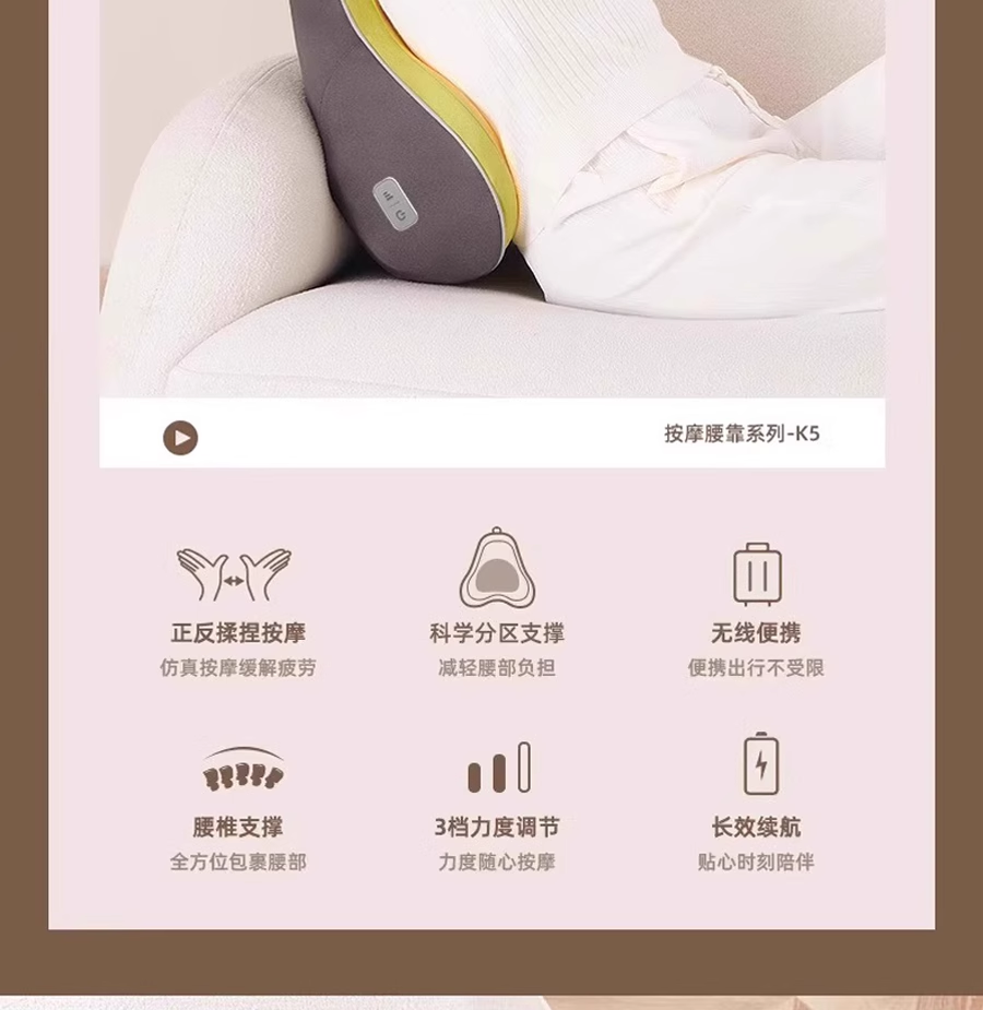 最右ZYOO腰部按摩仪 背部按摩器颈椎腰椎热敷家用车载多功能靠垫N