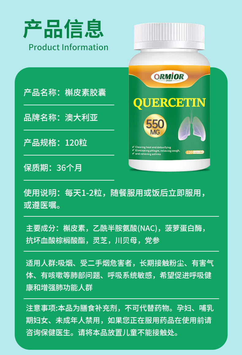 ORMIOR澳洲原装进口槲皮素提取物结节咳嗽多痰护肺清肺120粒550mg