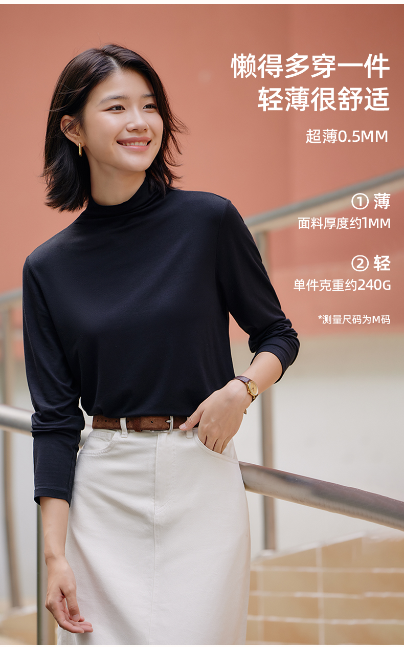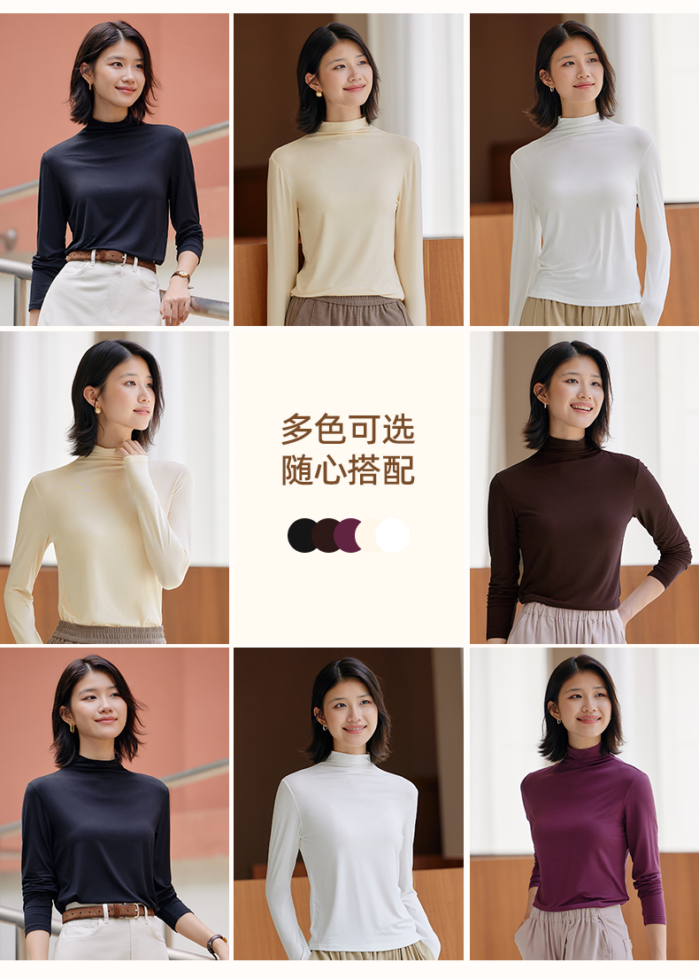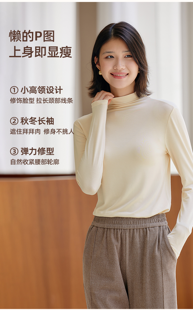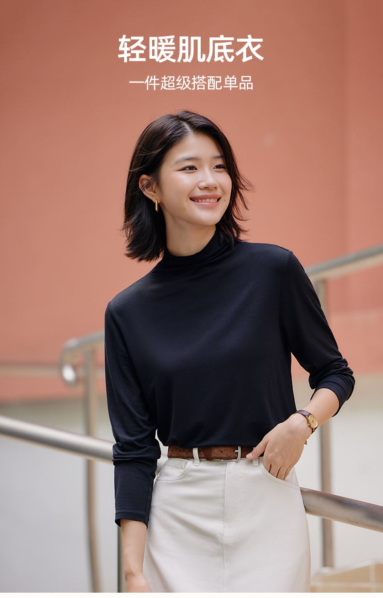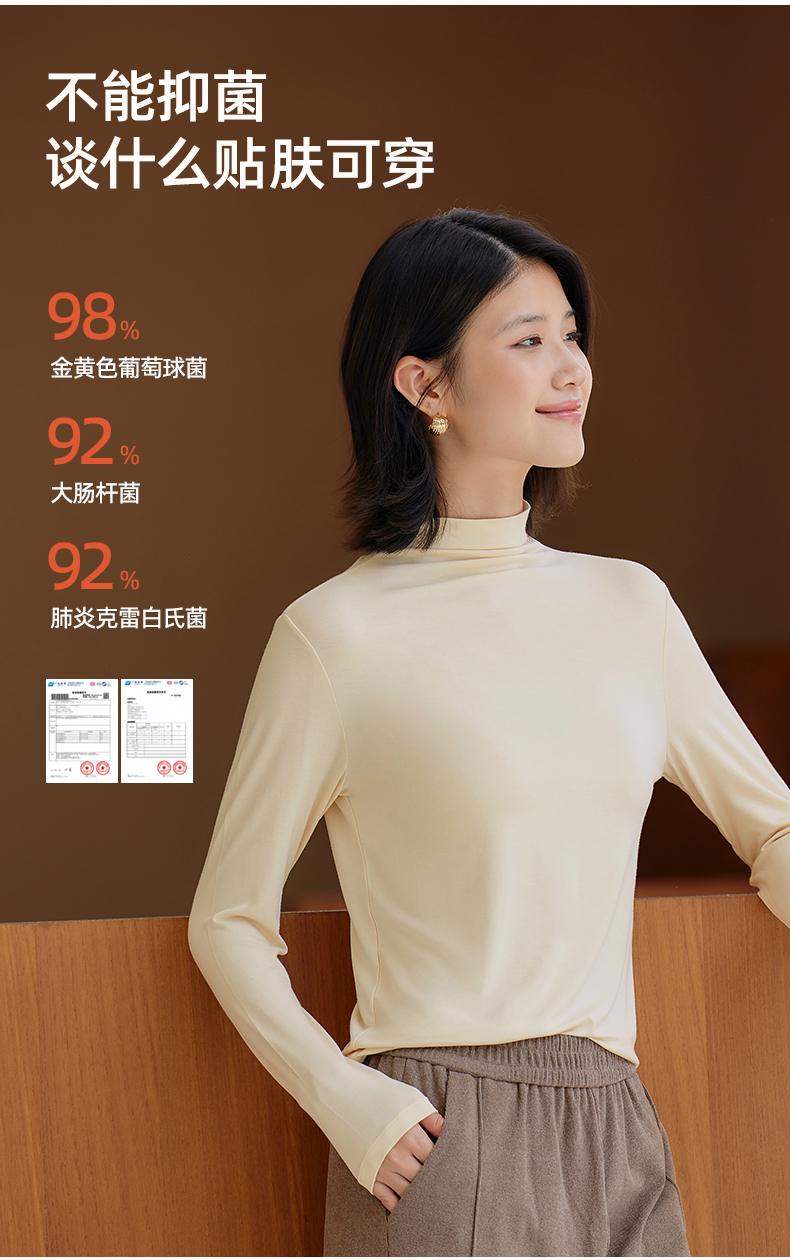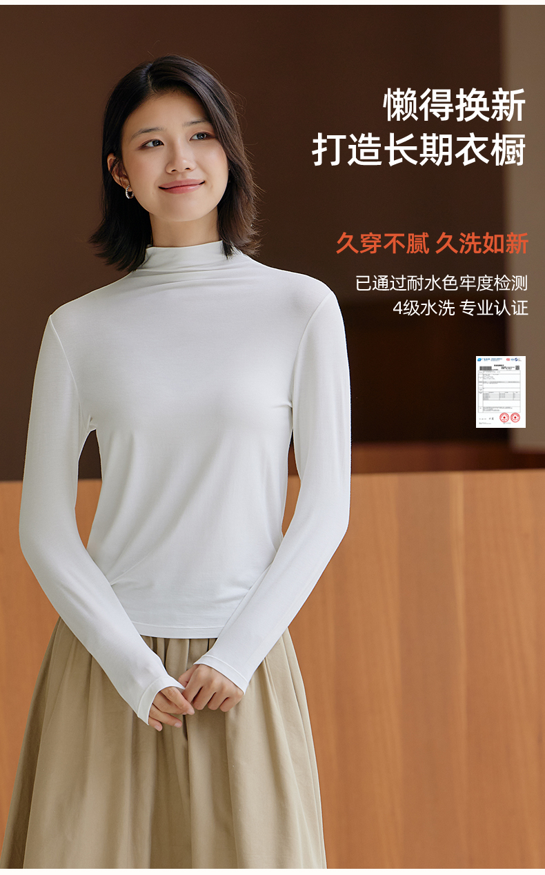 马恩MAXNEW女装2025秋冬新款白色宽松T恤抑菌高领打底衫长袖上衣