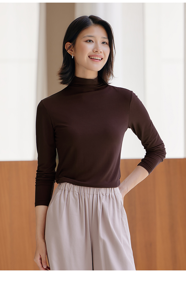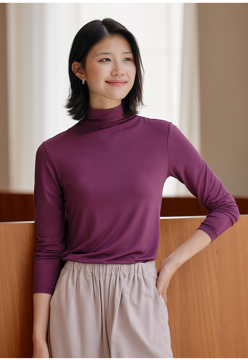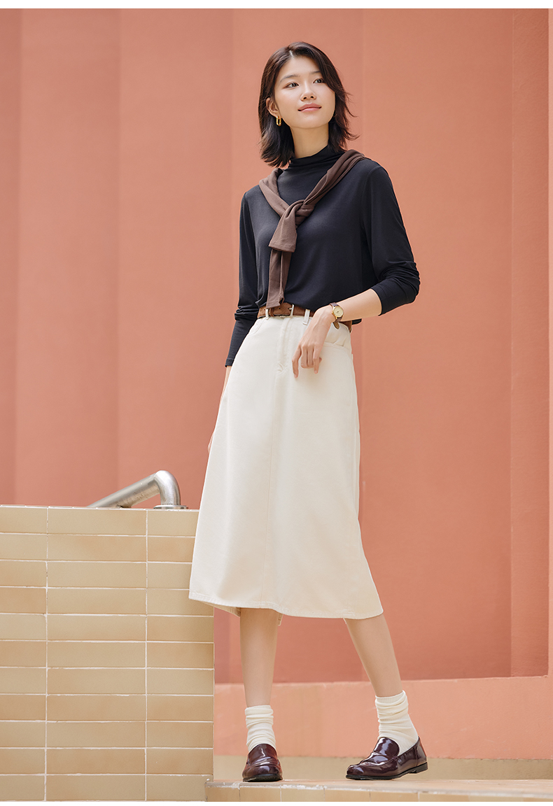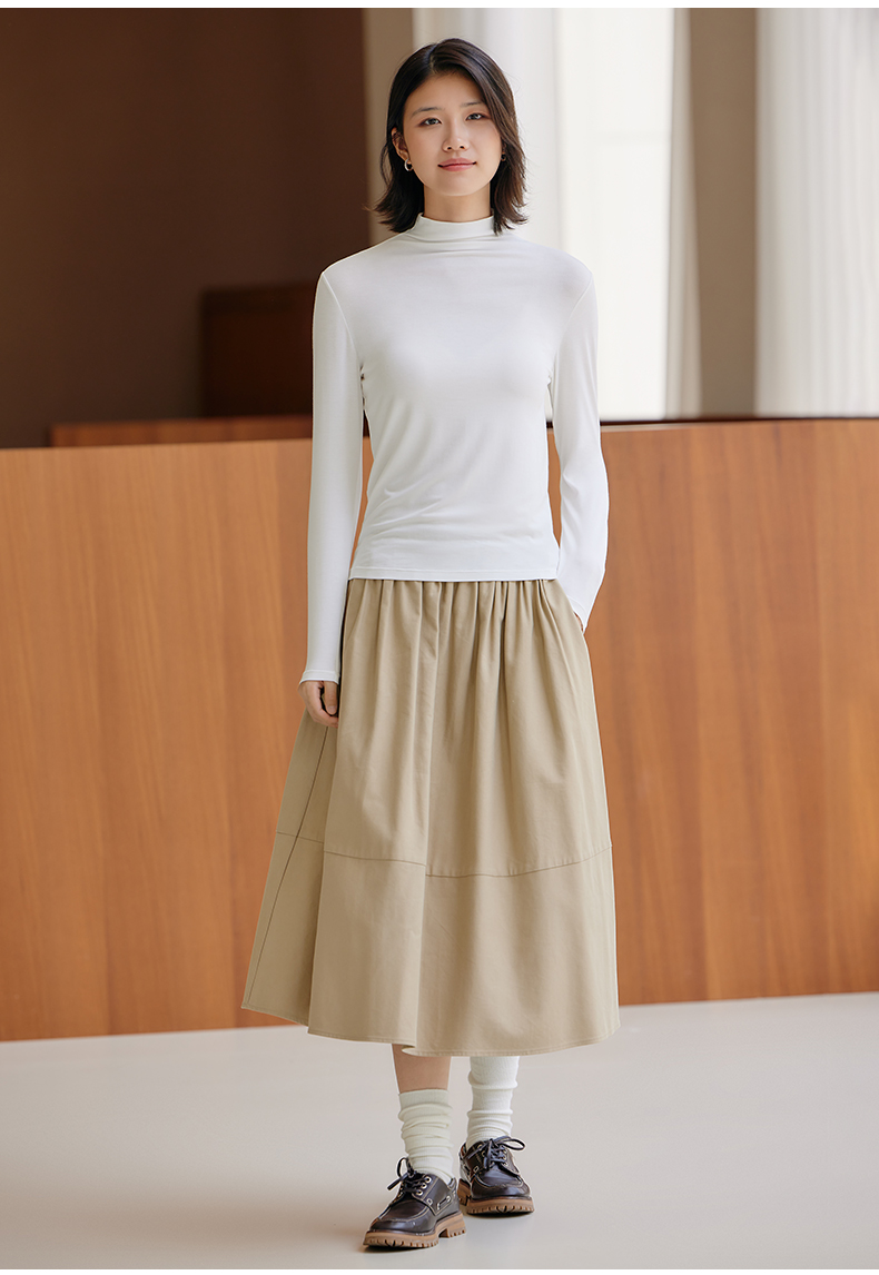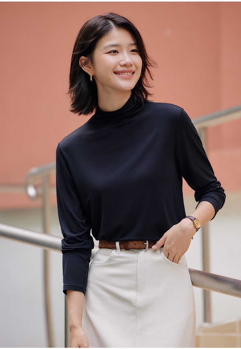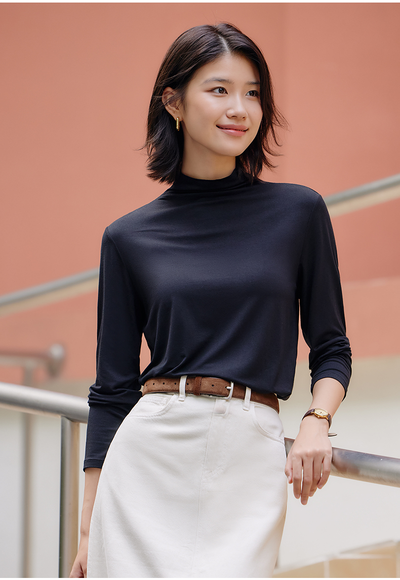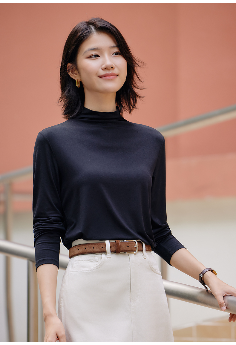 马恩MAXNEW女装2025秋冬新款白色宽松T恤抑菌高领打底衫长袖上衣