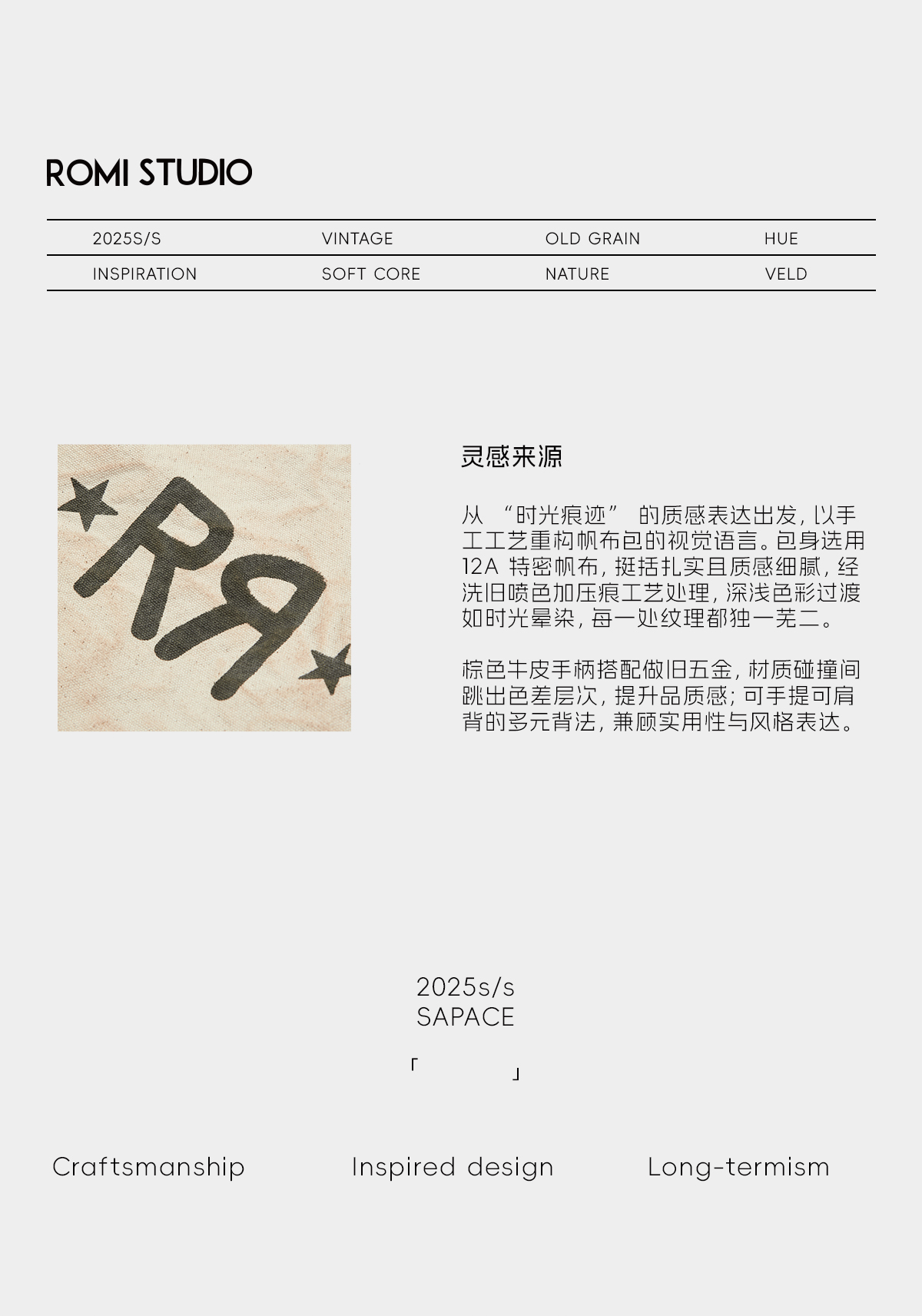 ROMI STUDIO 首饰袋 复古洗水手工压痕纹理单肩帆布包 RWCAPA4537