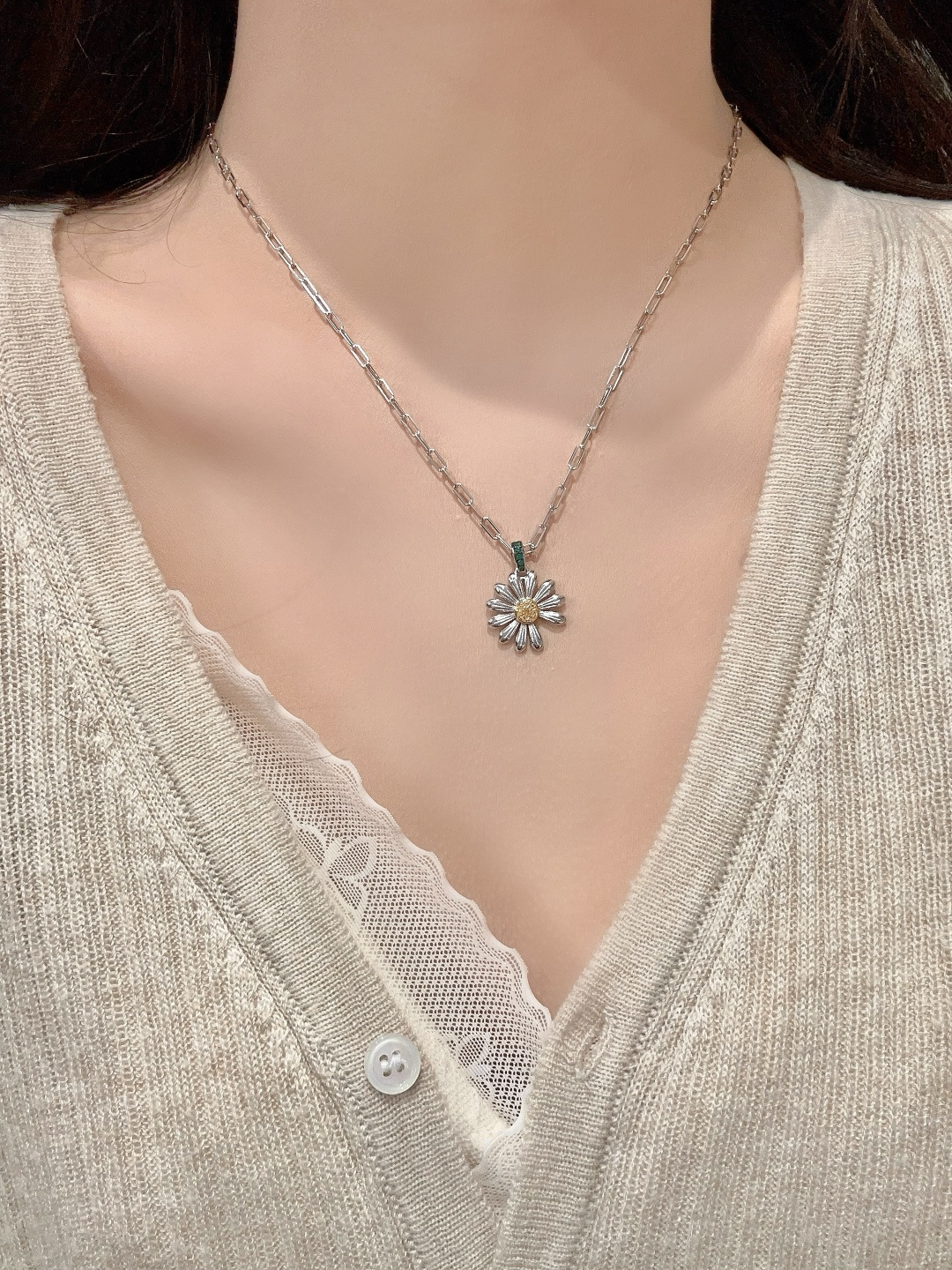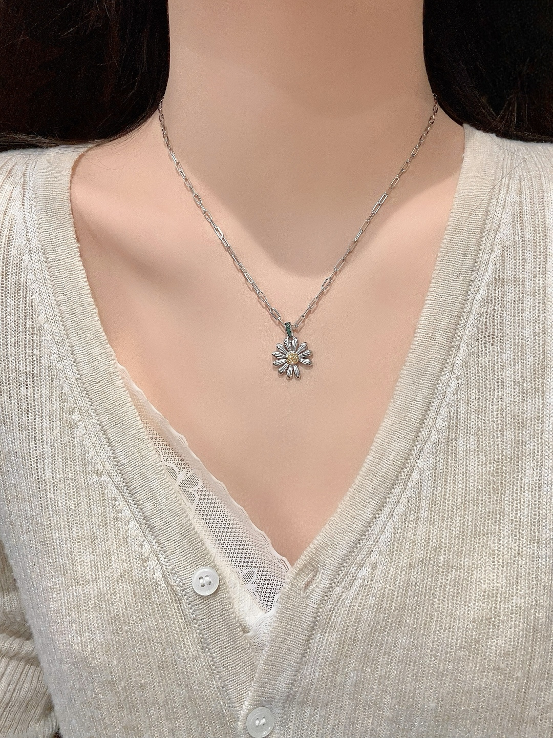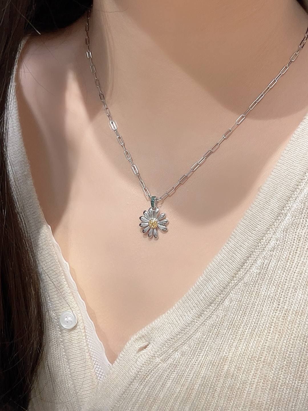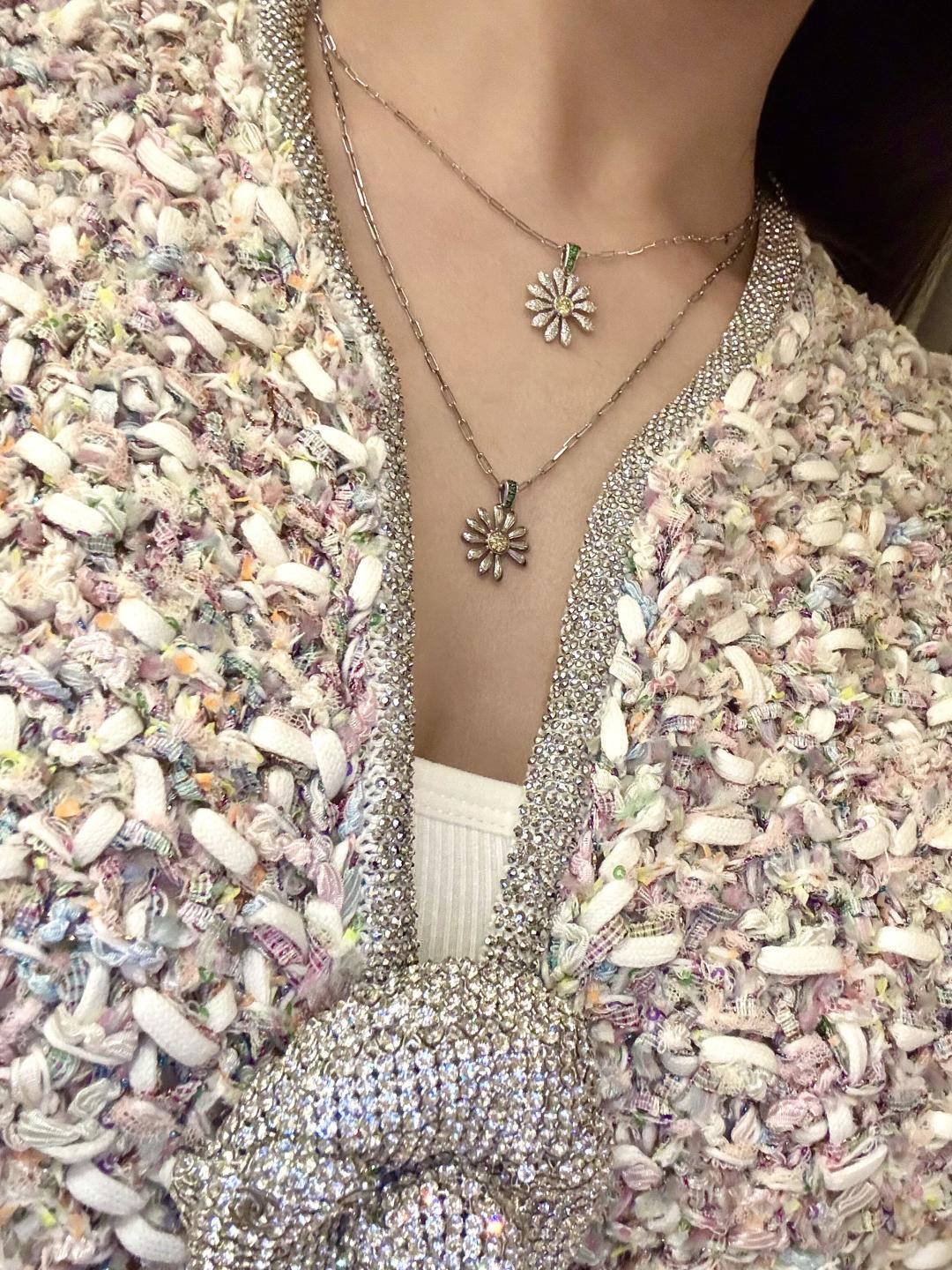 【彩宝系列-雏菊满钻项链】重工版本,非市面轻工版,通体925纯银➕耐磨保色度行业最新配方优金电镀!人无我有!对标高级珠宝工艺!全部是一致真金真钻的做法,一般只有在高级珠宝可以看到的工艺,我们对标高定珠宝,呈现出这种高级的珠宝感给到大家。实物到手925纯银加上那种精致细腻的工艺让你一度怀疑这简直就是真金真钻的一般!!!👍🏻!!实物到手那种质感真心无敌!!我真心觉得做得比真金真钻还要好!!厚度质感感人,真正做到360度无死角的细节享受,我们首饰饰品也给大家按照珠宝这样的工艺去做!!强烈推荐人手必备的时尚单品!只服务懂货追求品质的白富美。