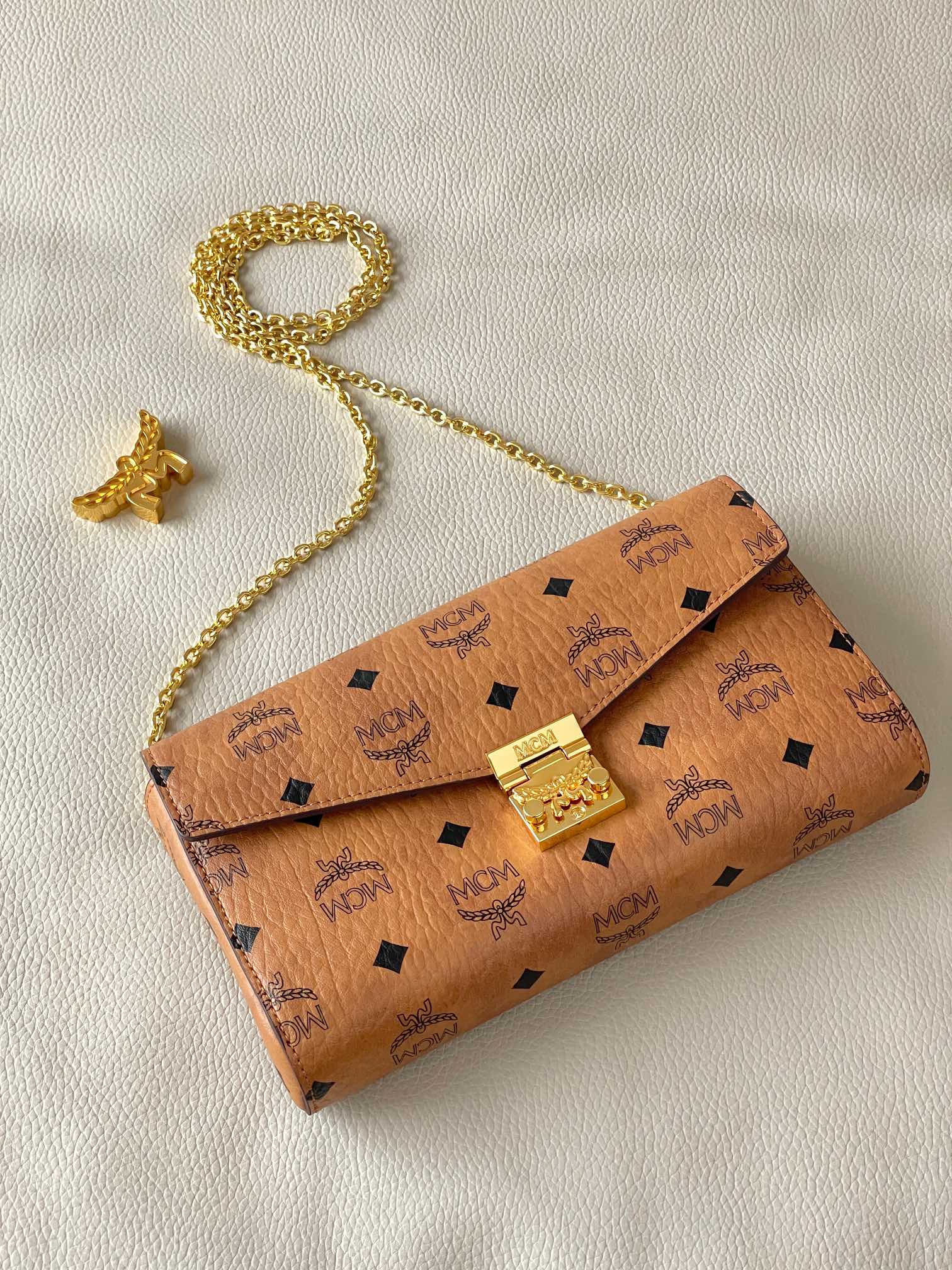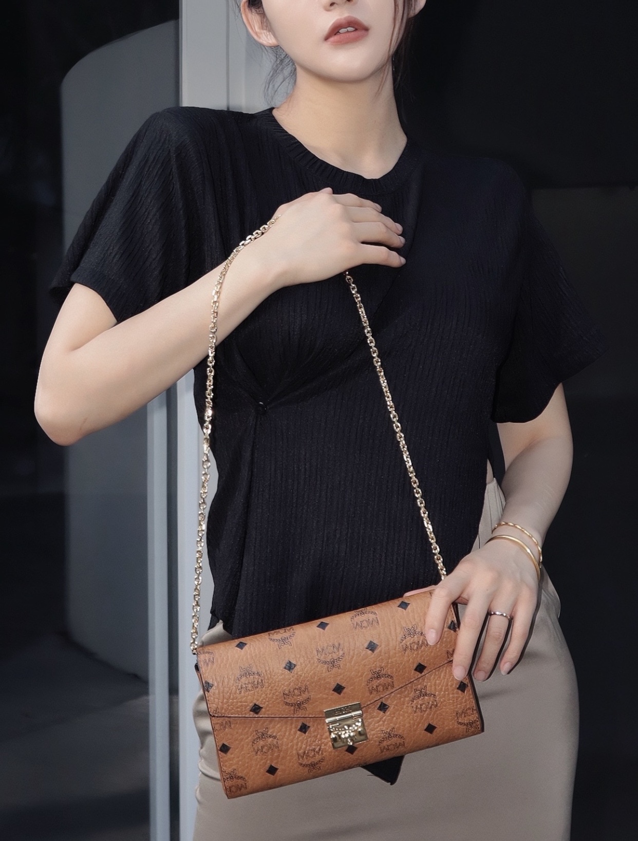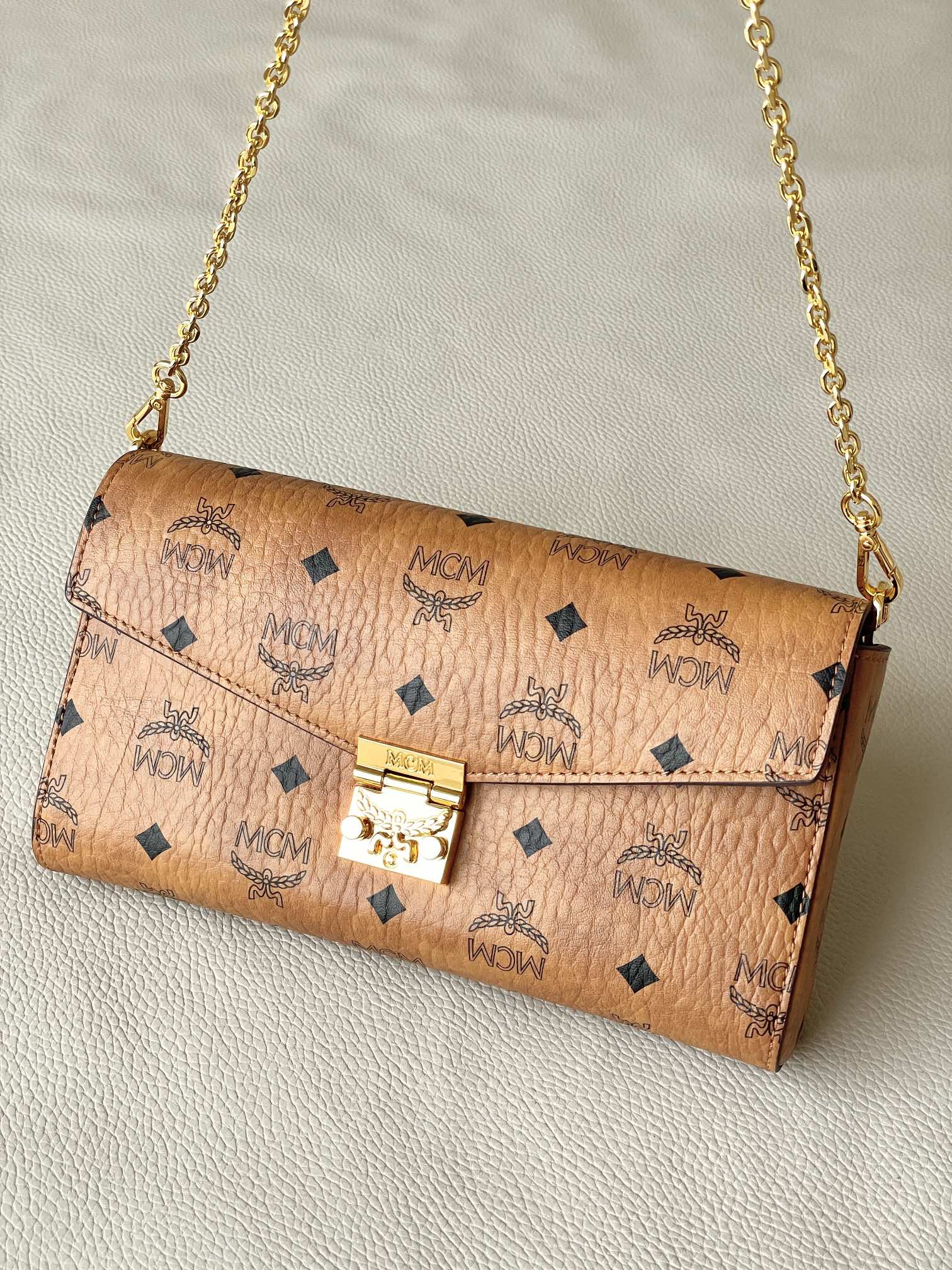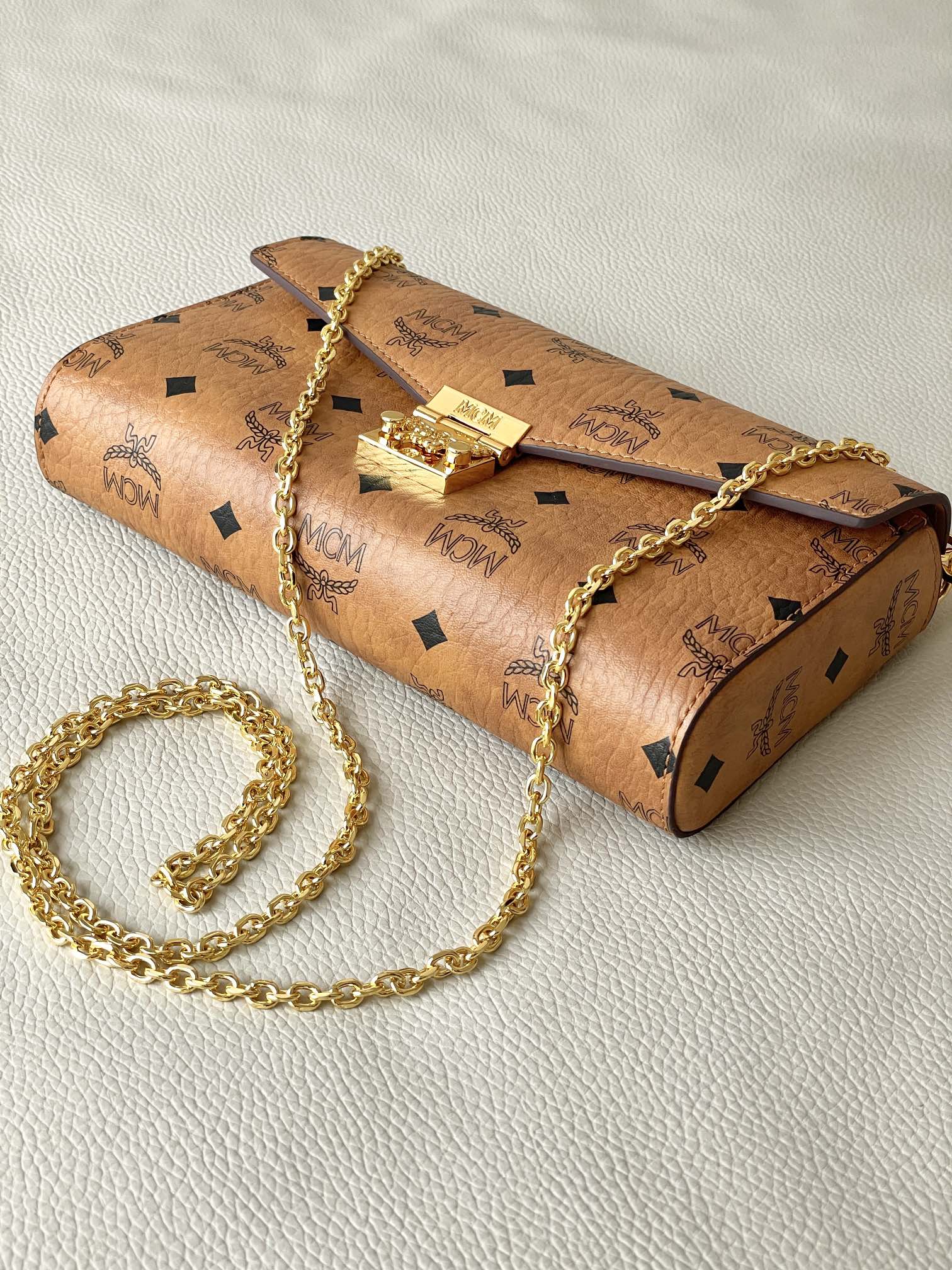 这款超凡脱俗的Tracy斜挎包由意大利Visetos及Nappa皮革制成。这款经典的随身包袋饰有标志性的月桂叶锁扣,并采用轻巧的全链条肩带设计,尽显随性优雅。
